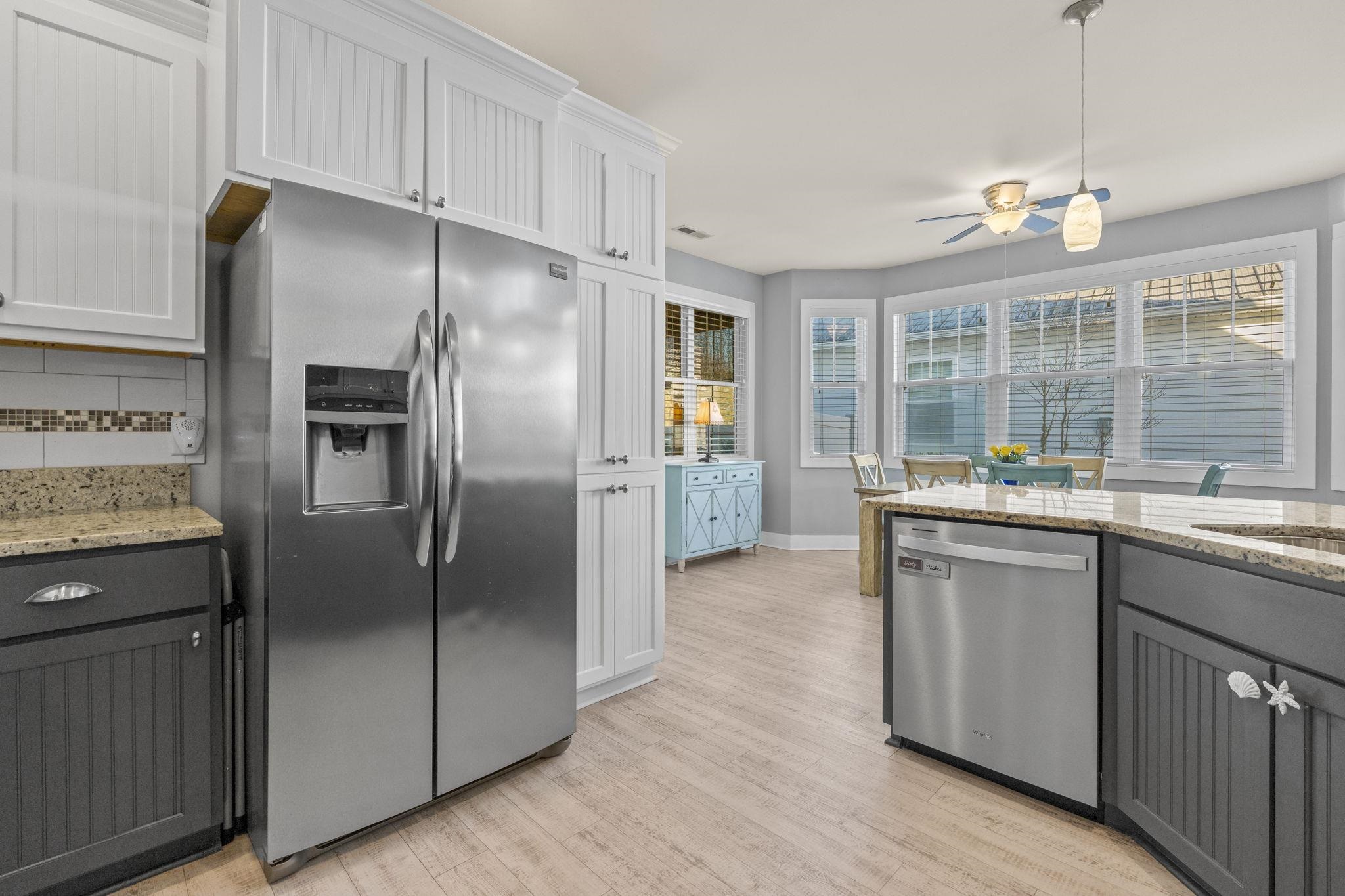 This thoughtfully maintained Lowcountry-style home surprises you with refined finishes, an inviting layout, and a serene pondside setting just minutes from the coast. Offering three bedrooms and two bathrooms, the interior is filled with natural light, elegant moldings, and a warm living room anchored by a natural gas fireplace. The kitchen feels both polished and functional with freshly painted cabinetry in curated designer tones, updated backsplash, and brushed nickel blown-glass pendant lighting, while all kitchen and laundry appliances convey for added convenience. An EZ Breeze room expands the living space, adding a comfortable, light-filled room designed to be enjoyed throughout the seasons while overlooking the pond and fountain. The backyard is a standout feature with lush landscaping, shade trees, flowering perennials, vinyl fencing, and peaceful water views. Outside, the home continues to impress with Hardie board siding, sleek metal roofing, and a paver driveway that adds durability and a sophisticated touch. A solid cedar pergola, extended brick patio, freshly painted rear steps, and ornamental walking bridge enhance both form and function, while the front deck has been refreshed with new paint and a brand-new gate. Additional highlights include a luxury trim package, updated ceiling fans, glass shower door, storm door, Rain Bird irrigation system. Curbscape edging adds a finished look to the landscape, all set within a natural gas community that blends Lowcountry character with modern comfort all while being minutes to the coast.