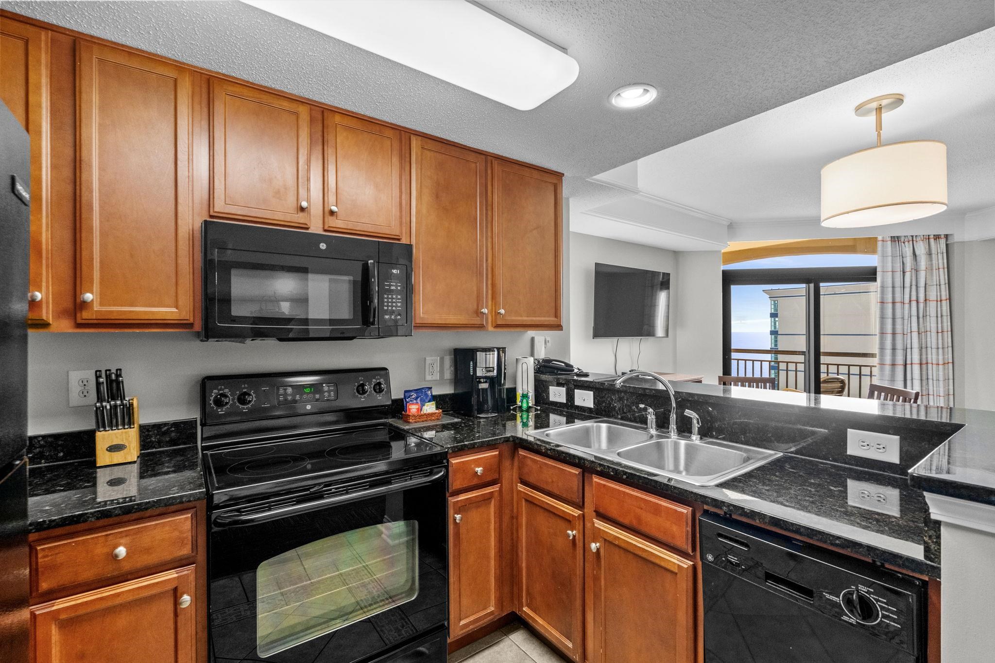 Incredible opportunity to purchase this upscale 1 bedroom 1 bath ocean view condo at the highly sought after Anderson Ocean Club in the heart of Myrtle Beach! Unit 1914 offers spectacular ocean views from the 19th floor and comes beautifully furnished with modern decor. As you enter the unit through the foyer, you are greeted with an open floor plan that seamlessly blends the kitchen, dining, and living areas~ideal for both relaxing and entertaining. The kitchen comes fully equipped with all black appliances, granite counter tops, plenty of cabinet space, and a breakfast bar. The living area brings in plenty of natural light from the expansive sliding glass doors that open to your very own private balcony, where you can enjoy your morning cocktail or favorite evening beverage. The primary suite features a walk-in closet, ceiling fan, and en-suite bath with shower/tub combo! Additionally, there is a stackable washer/dryer set inside the unit for added convenience. The Anderson Ocean Club offers top of the line amenities including a full-service spa, lazy river, tiki bar, outdoor & indoor pools, hot tubs, fitness center, valet parking, Coffee Cafe, and much more! Fantastic location close to all the shopping, dining, entertainment attractions, world-class golf courses, Myrtle Beach boardwalk, Market Common, Broadway at The Beach, and and just minutes from Myrtle Beach International Airport. Whether you're looking for a primary residence, vacation getaway, or a rental investment, this is an opportunity you don't want to miss. Call the listing agent today to schedule a showing!