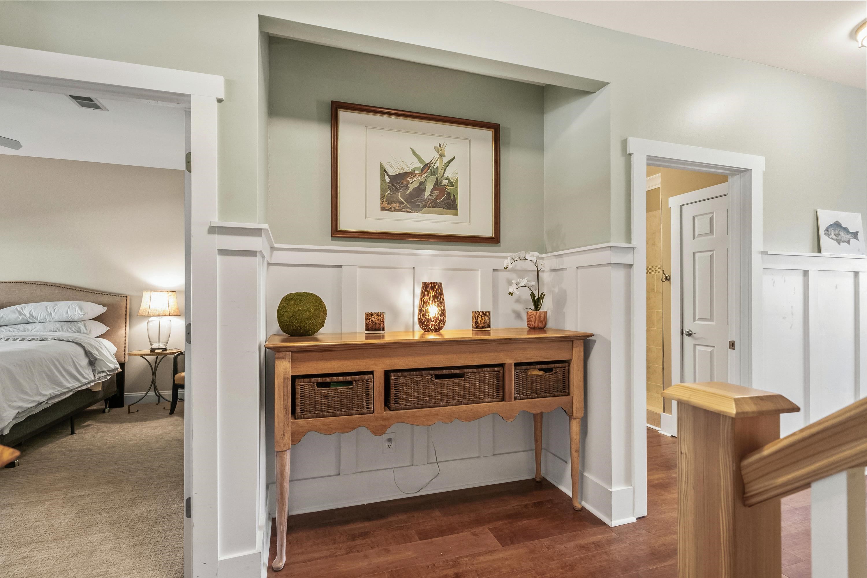Now is your chance to own in Pawleys Plantation! This beautifully updated 3BR/3BA villa offers luxury, flexibility, and lifestyle. The main level features cherry-finish luxury plank flooring and a remodeled kitchen with quartz countertops, custom white cabinetry, GE induction range, counter-depth slate gray refrigerator, and under-cabinet lighting. Dimmer switches throughout allow customized lighting in the kitchen, dining area, hallways, bathrooms, and living spaces.Board-and-batten wainscoting flows into the great room with plantation shutters and a large picture window. The main-floor primary suite includes a walk-in closet and renovated bath with tiled shower, double quartz vanity, and generous storage.Upstairs, the second primary suite offers a sitting area, walk-in closet, bonus storage, full-size stacked laundry, and a 42 Dimplex Revillusion fireplace with stone surround and wood mantel. The oversized en-suite bath features a Jacuzzi hydrotherapy whirlpool tub, walk-in shower, and double quartz vanity. A third bedroom includes its own updated en-suite bath.Additional features include fresh paint and new plush carpeting upstairs, open carport parking, exterior storage, and a screened-in patio with EZE-Breeze liners and custom shades. Short- and long-term rentals allowed, including Airbnb. Minutes to Pawleys Island beaches, Georgetown, Brookgreen Gardens, and Huntington Beach State Park.