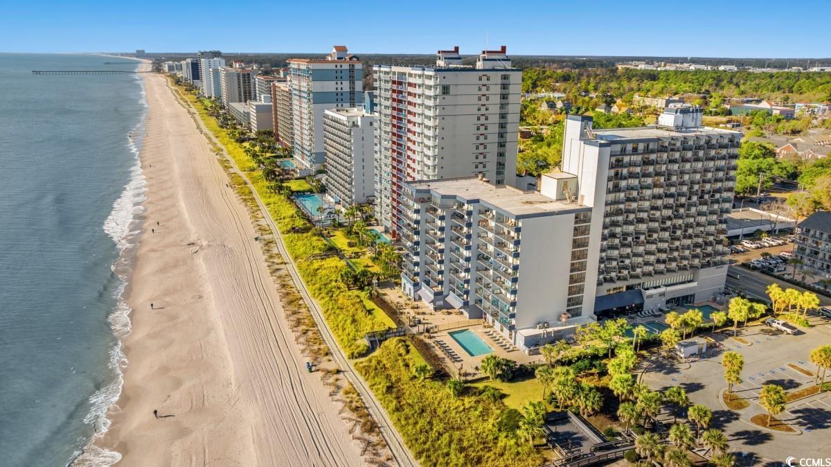 Coastal Perfection & Investors Dream: Bluewater Resort #1003. Fully furnished, meticulously maintained, oceanfront turn-key retreat is a proven rental powerhouse. Features:Enjoy breath taking sunrises, or watch for Dolphins from the 25 foot Oceanfront balcony accessible from the living room and primary bedroom. Stackable washer/dryer, the large 2.5 air handler and a Sensi Smart Thermostat installed in 2025- allows you to monitor moisture levels and adjust temperature from an app on your phone. Kitchen boasts granite counters, stainless steel appliances, and tile flooring the unit. Owners installed Custom Wood Shutters in 2nd bedroom to provide more privacy last year. Location, Location, Location - Ocean Blvd minutes from the Myrtle Beach International Airport, The Market Common, Coastal Grand Mall, Broadway at the Beach and area golf courses. Capacity: 2 Bedrooms / Three Queen beds with pull out sofa bed and 2 full bathrooms. Resort Perks:Pools, Lazy River, Seasonal Tiki bar, Restaurant on the 1st floor, 24/7 on-site Security and 2 garage spaces and additional outdoor parking. Owner-Friendly:Pet-policy for owners. Golf cart/Motorcycle parking allowed for owners and renters. Stop dreaming and start earning. Schedule your showing for this gem today!