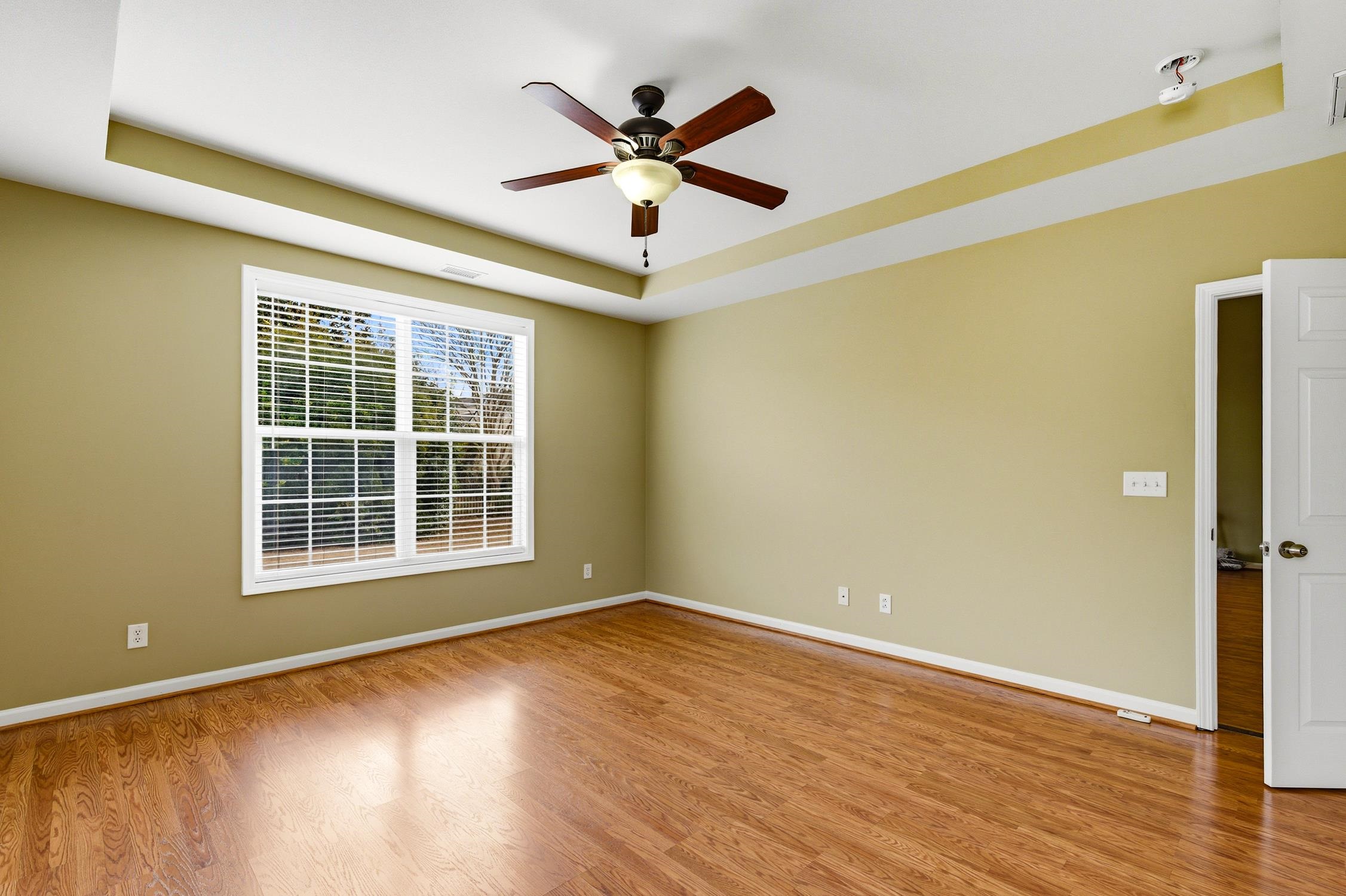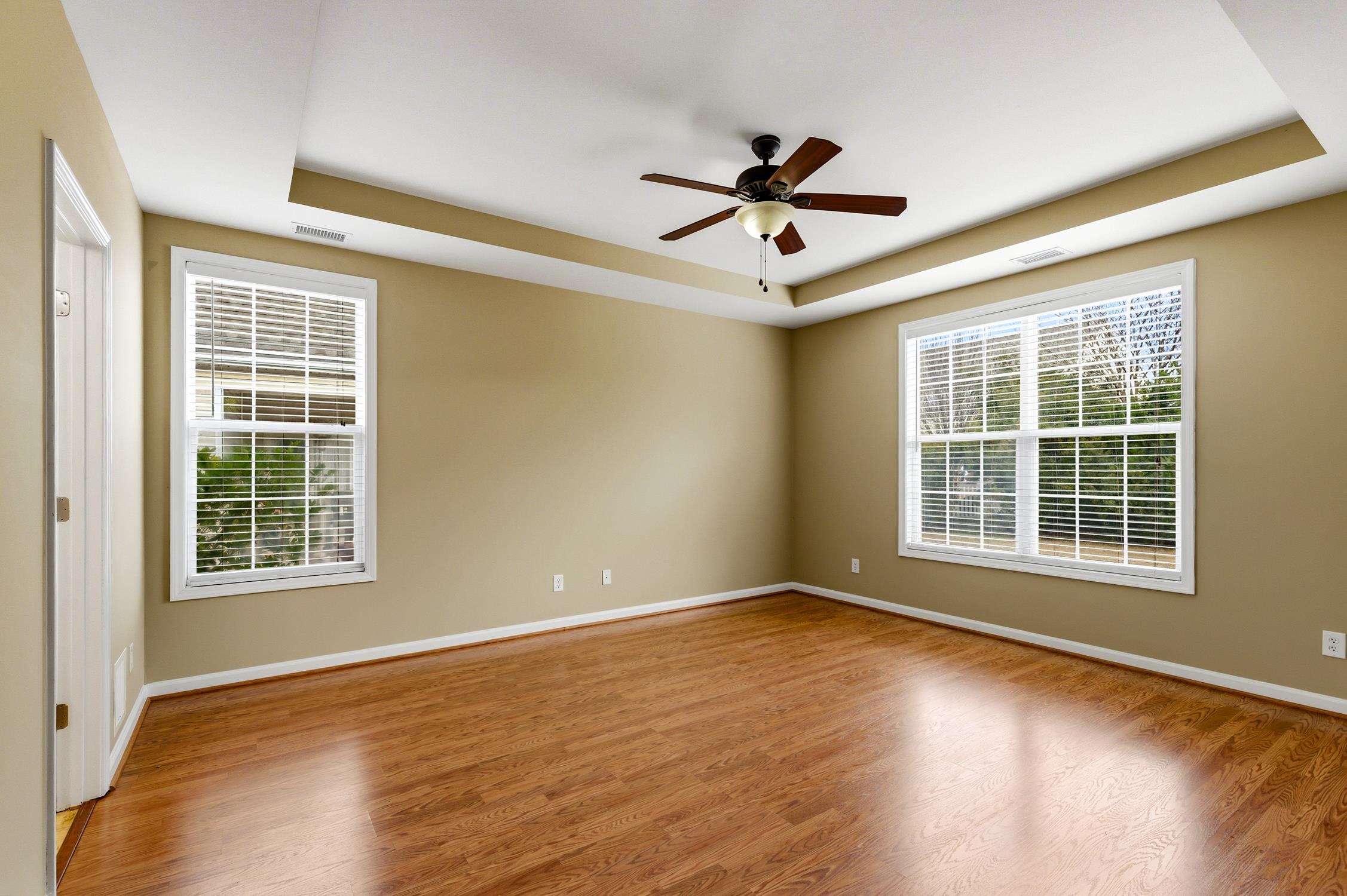 PrimaryBedroom: TrayCeilings, CeilingFans, LinenCloset, MainLevelMaster, WalkInClosets