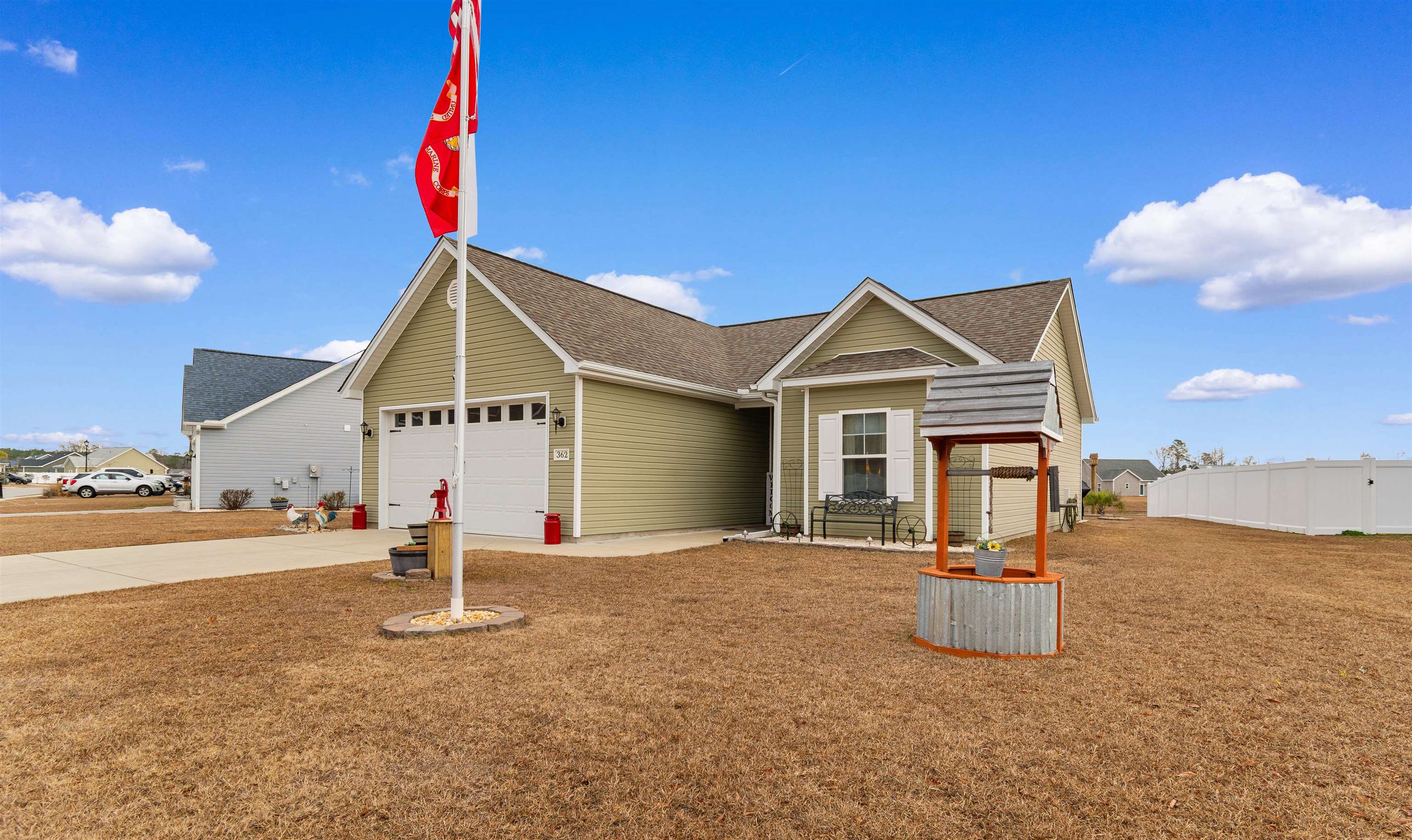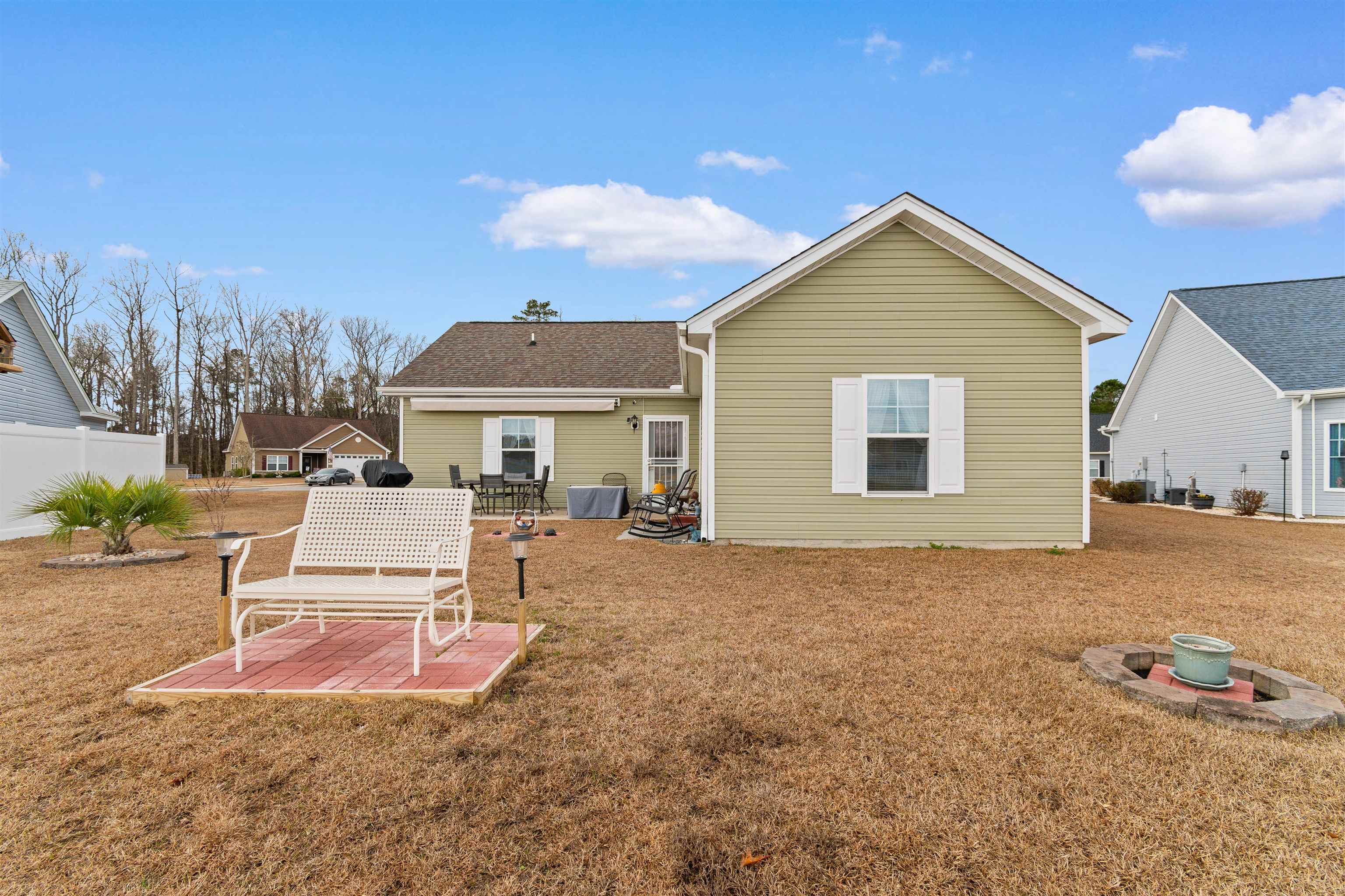 Step into this immaculately maintained home in the highly sought-after Windsor Farms community of Conway, SC. Situated on a .21 acre pond view lot, this property offers peaceful scenery and a welcoming neighborhood atmosphere. Inside, vaulted ceilings and an open floor plan create an airy, inviting feel, complemented by upgraded LVP flooring throughout the living areas and tile in the kitchen and bathrooms. The kitchen features stainless steel appliances, rich dark cabinetry, and plenty of counter space ideal for preparing everything from everyday meals to holiday feasts. The spacious primary suite includes an ensuite bathroom with an upgraded walk-in shower, oversized vanity, and a generous closet. Two additional bedrooms share a well-appointed bathroom and offer flexible space for family, guests, or a home office. The two car garage is currently set up as a workshop and includes a convenient attic lift system, making storage effortless. Step outside to the backyard and enjoy views of the pond fountain from beneath the upgraded Sun Setter awning, complete with built-in lighting for relaxing evenings outdoors. This home has been exceptionally cared for and truly stands out in the neighborhood. Schedule your showing today and reach out with any questions.