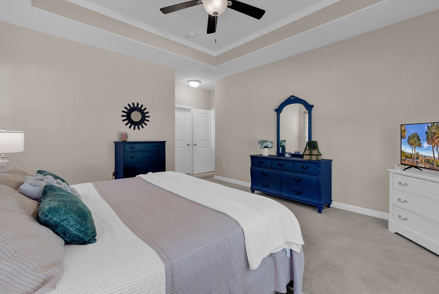 PrimaryBedroom: TrayCeilings, CeilingFans, MainLevelMaster, WalkInClosets
