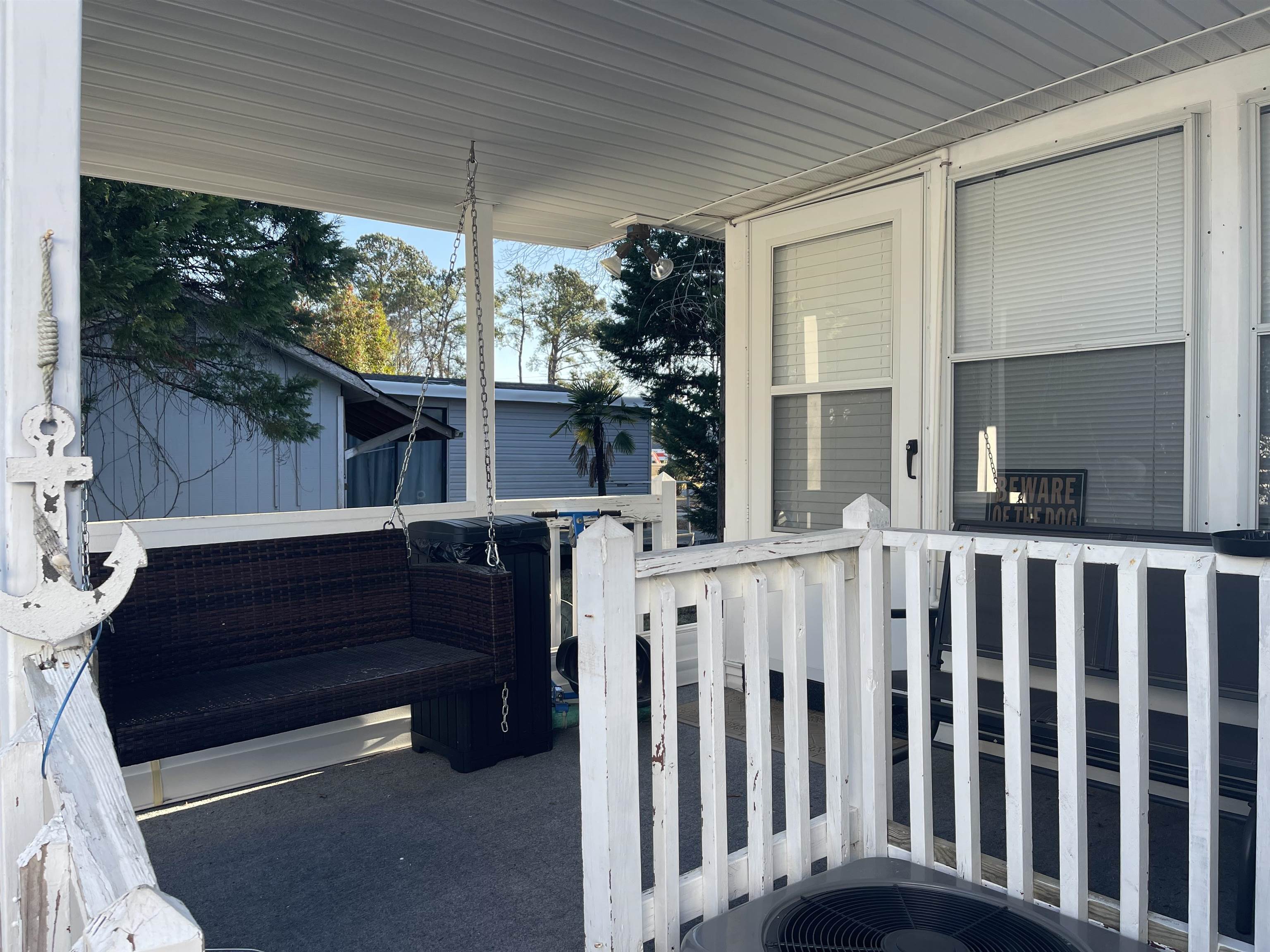 Affordable coastal living! Just minutes from the beach and Inter Coastal Waterway! This is a well maintained doublewide in the 55+ community of Village at Bay Tree. Conveniently located in the heart of Little River. This home offers 3bd/2ba with open floor concept and split floor plan! Nice sunroom to relax in, back deck with porch swing, wired out building, and more! NO HOA! Land lease is 450/month and includes cable TV, Internet, trash pick up, access to the community pool, and use of the club house. All buyers must fill out the land lease application and be approved. Please see attached docs. Home is being sold FURNISHED (with full price offer). Large wall picture in primary bedroom, nice combo washer/dryer, and back deck hanging swing will convey. Two TVs and white stand in the Carolina room will NOT convey. Two deep freezers will NOT convey. Rocking/gliding swing on back deck will NOT convey.