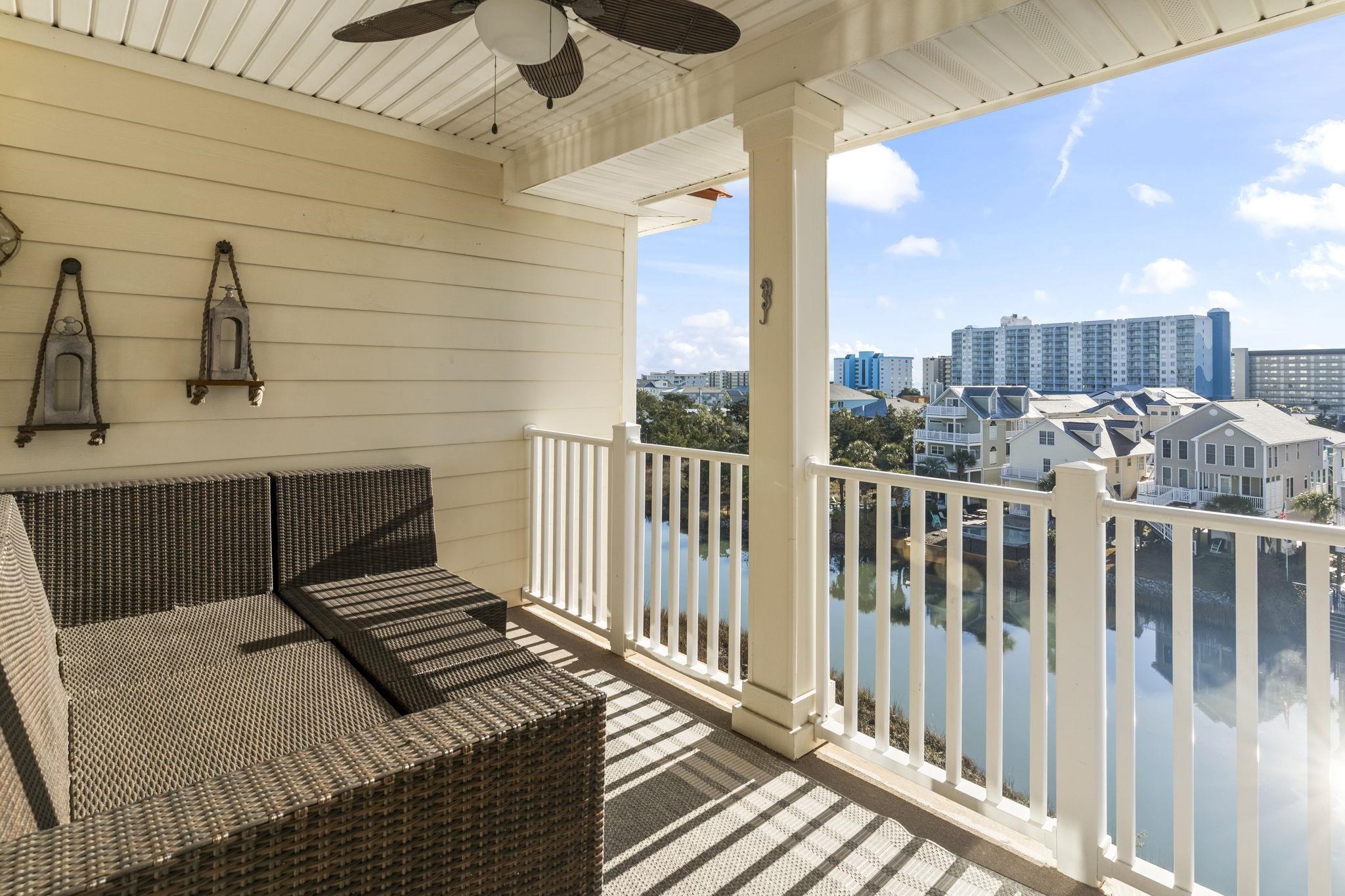 Penthouse with views of the ocean. This 2/2 is an exceptional opportunity to acquire a distinguished property in North Myrtle Beach, in the Barefoot Landing area, with an ocean view and a golf cart parking space. You can easily walk or ride a golf cart to the ocean! This 4th-floor condo offers breathtaking views of marshlands, wetlands, and the ocean from its balcony, perfect for sunrises and sunsets. Its prime location makes it one of the most desirable addresses in North Myrtle Beach, ideal as a primary residence, a second home, or a lucrative vacation rental. Ocean Marsh Villas is a quiet marsh-front property featuring only 36 units and two elevators, nestled amidst beautiful live oaks, and just a short walk from the beach. The meticulously maintained grounds and surprising amenities, including a marsh-front pool, hot tub, kiddie pool, picnic tables, and a grill, enhance the property's appeal. The marsh-front environment also provides opportunities for crabbing, fishing for flounder, and observing local wildlife. The interior of this unit has been professionally decorated by an interior designer. The meticulous details have to be seen to be appreciated. All large furnishings are included. Two bedrooms with shelved closets and two full baths, the open floor plan creates a seamless flow, ideal for both entertaining and quiet enjoyment. The kitchen was recently renovated with additional lighting, coastal white cabinets that provide ample storage, modern granite countertops, sleek stainless steel appliances, and even a convenient wine rack. Golf carts and pets are permitted for owners, a rare find in the current market, and almost everything in this stunning unit conveys, allowing for an immediate enjoyment of the coastal lifestyle. This property in the Windy Hill section offers unparalleled accessibility to the oceanfront on the East and North Myrtle Beach's attractions. You can easily walk to dinner at Joe's Bar and Grill, Cracker Barrel, or 21 Main, and savor some of the finest steaks and seafood the coastline has to offer. Additionally, you'll be close to shows like The South's Grandest Christmas Show at The Alabama Theater and shops and restaurants at Barefoot Landing, such as Tara Grinna and Flying Fish. Please schedule a showing at your earliest convenience to fully appreciate this incredible property, its expansive views, and its unbeatable access to shopping and dining, and of course, the beautiful ocean!
