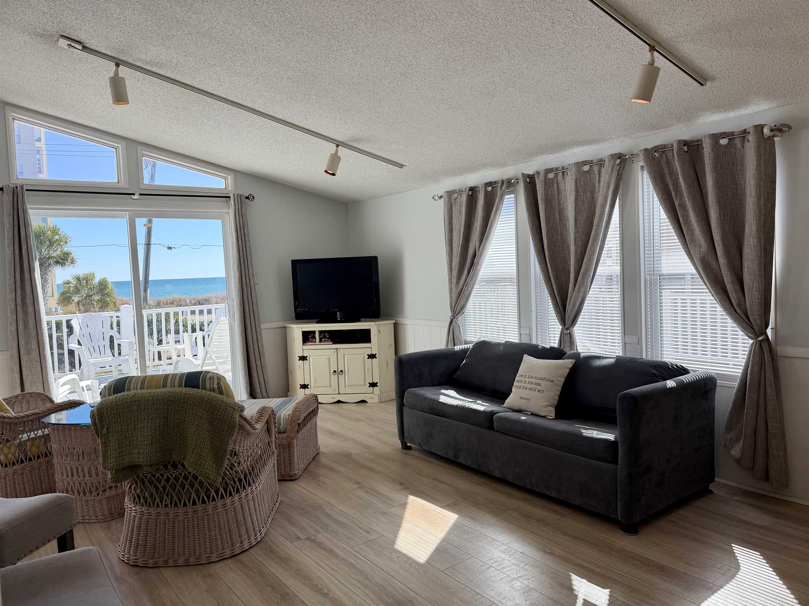 Welcome to your dream home nestled in the gated golf cart community of Oceanside Village. This 3-bedroom, 3-bath house is designed for both relaxation and entertaining, boasting an open floor plan that seamlessly merges indoor and outdoor spaces. Wake up to the soothing sounds of the waves and enjoy mesmerizing sunsets from your sprawling deck. Imagine sipping your morning coffee or hosting evening gatherings while taking in panoramic views of the sparkling ocean. The spacious living area bathes in an abundance of natural light, creating a warm and inviting atmosphere. This thoughtfully designed home features a bedroom and bath on the first level, making it perfect for guests. Experience the joy of a vibrant community lifestyle with resort style amenities including indoor & outdoor pools, kids splash pad, pickle ball, bocce ball, tennis, and much more. Dont miss the opportunity to own a slice of paradise! This ocean-view home is perfect for those seeking a peaceful retreat with active community living.