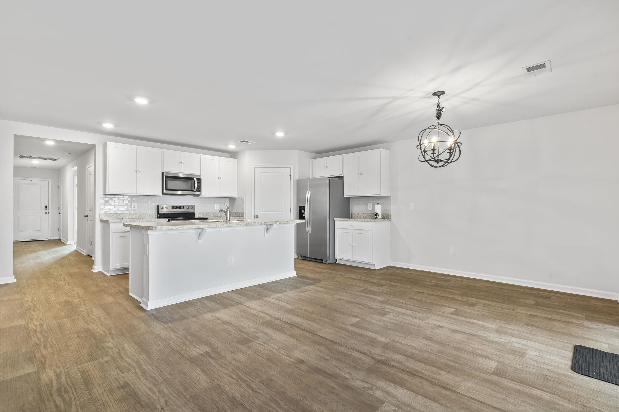 Gorgeous, well maintained four bedroom, two bathroom home located on a scenic lake in the popular Cali floor plan is priced to sell. This like new home offers a desirable split bedroom layout and an open concept design that seamlessly connects the kitchen and living areas, creating an ideal space for both everyday living and entertaining. The kitchen is guaranteed to impress, featuring stainless steel appliances, abundant cabinet and counter space, and an open layout overlooking the living area and backyard. All kitchen appliances convey, including the washer and dryer. The spacious primary suite offers a private retreat with a large walk-in closet plus an additional closet, a custom stand up shower, and a double sink vanity. The remaining bedrooms are generously sized and offer ample closet space. Step outside and enjoy beautiful pond and wildlife views from the oversized rear patio, perfect for entertaining, grilling, relaxing, or even adding a hot tub. A screened in porch provides additional outdoor living space to enjoy the peaceful setting. Upgrades and features include custom landscaping, luxury vinyl plank flooring throughout the living areas and primary suite, gutters around the entire home, a sprinkler system, a security alarm system, led surface mount lighting and a finished garage with painted walls and epoxy flooring. The patio also features a finished surface for a clean, polished look and much more! Located in The Reserve at Long Bay, this home is just a short drive to the beaches of Cherry Grove, as well as shopping, dining, and entertainment. Why wait for new construction? This home shows like new and is move in ready and all at a price that makes it an exceptional value.