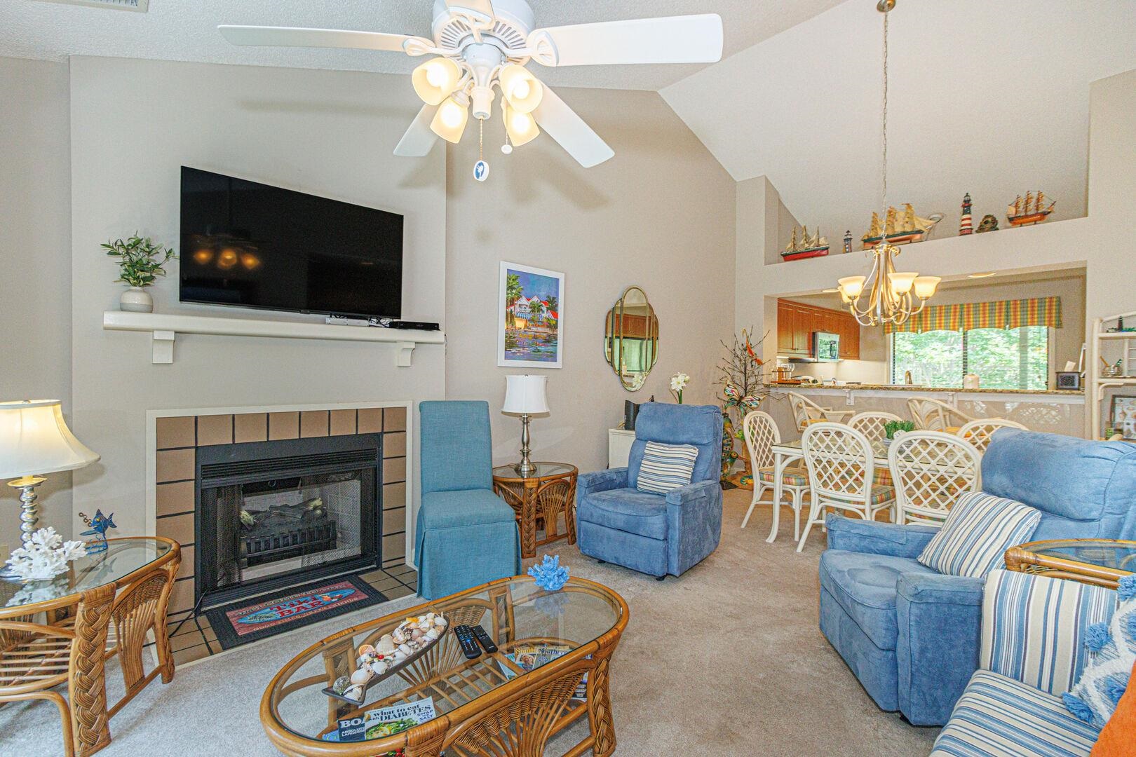 Welcome to this immaculate, fully furnished St. James Park villa featuring vaulted ceilings, beautiful kitchen with granite countertops, wood cabinets and stainless-steel appliances. Updated tile floor, vanities, mirrors and fixtures in both bathrooms. HVAC was replaced in 2019. Nestled among the gorgeous 145-acre, naturally landscaped Kingston Plantation Resort, you can enjoy walking paths, a serene 12-acre lake for fishing, several restaurants, multiple pools, and of course the beautiful Atlantic Ocean. Great rental opportunity, 2nd home, or primary residence. A must see!! All measurements and data are deemed reliable but not guaranteed. Buyer and/or buyer's agent to verify all information. **Certain on-site, Developer-owned amenities are only available to Hilton rental program owners and their guests, or by separate arrangement with the Developer, which may or may not be available to the Buyer. Seller makes no representations or warranties regarding those amenities and the Buyers access to same.**