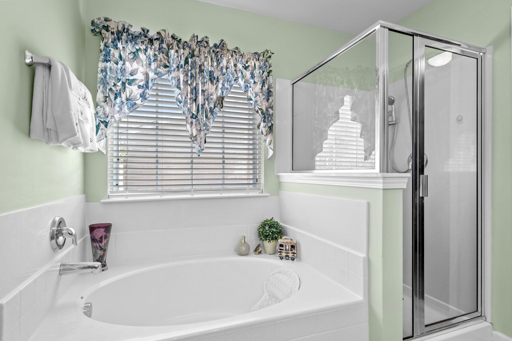 PrimaryBathroom: DualSinks, GardenTubRomanTub, SeparateShower, Vanity