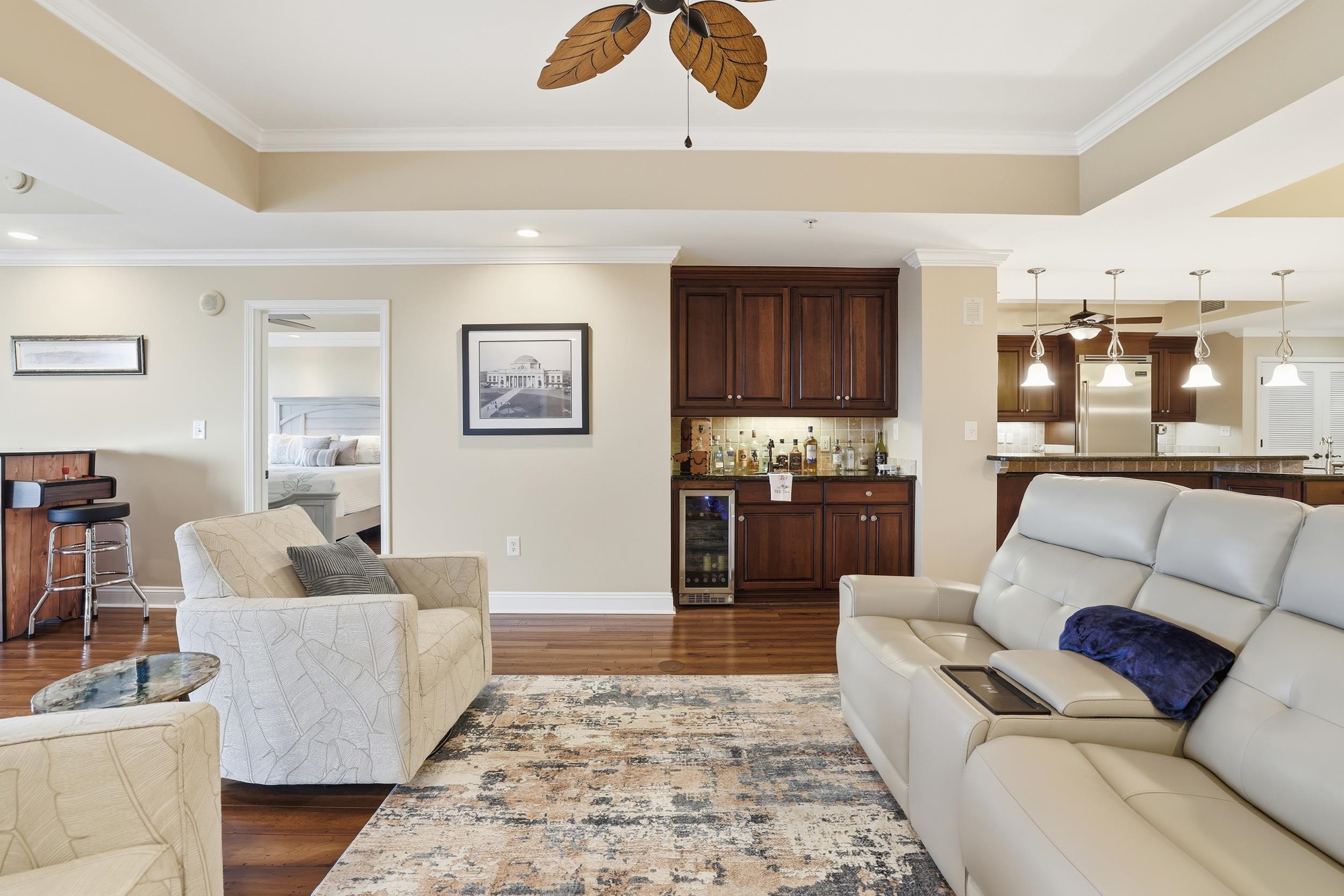 FamilyRoom: WetBar, TrayCeilings, CeilingFans, Fireplace