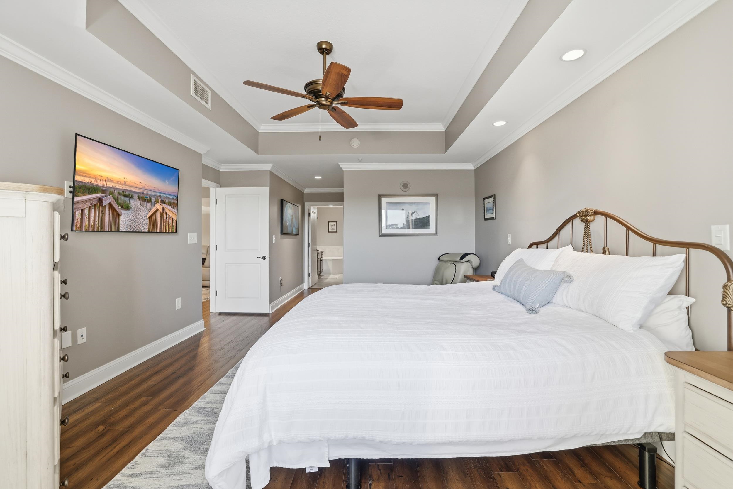 PrimaryBedroom: TrayCeilings, CeilingFans, MainLevelMaster, WalkInClosets