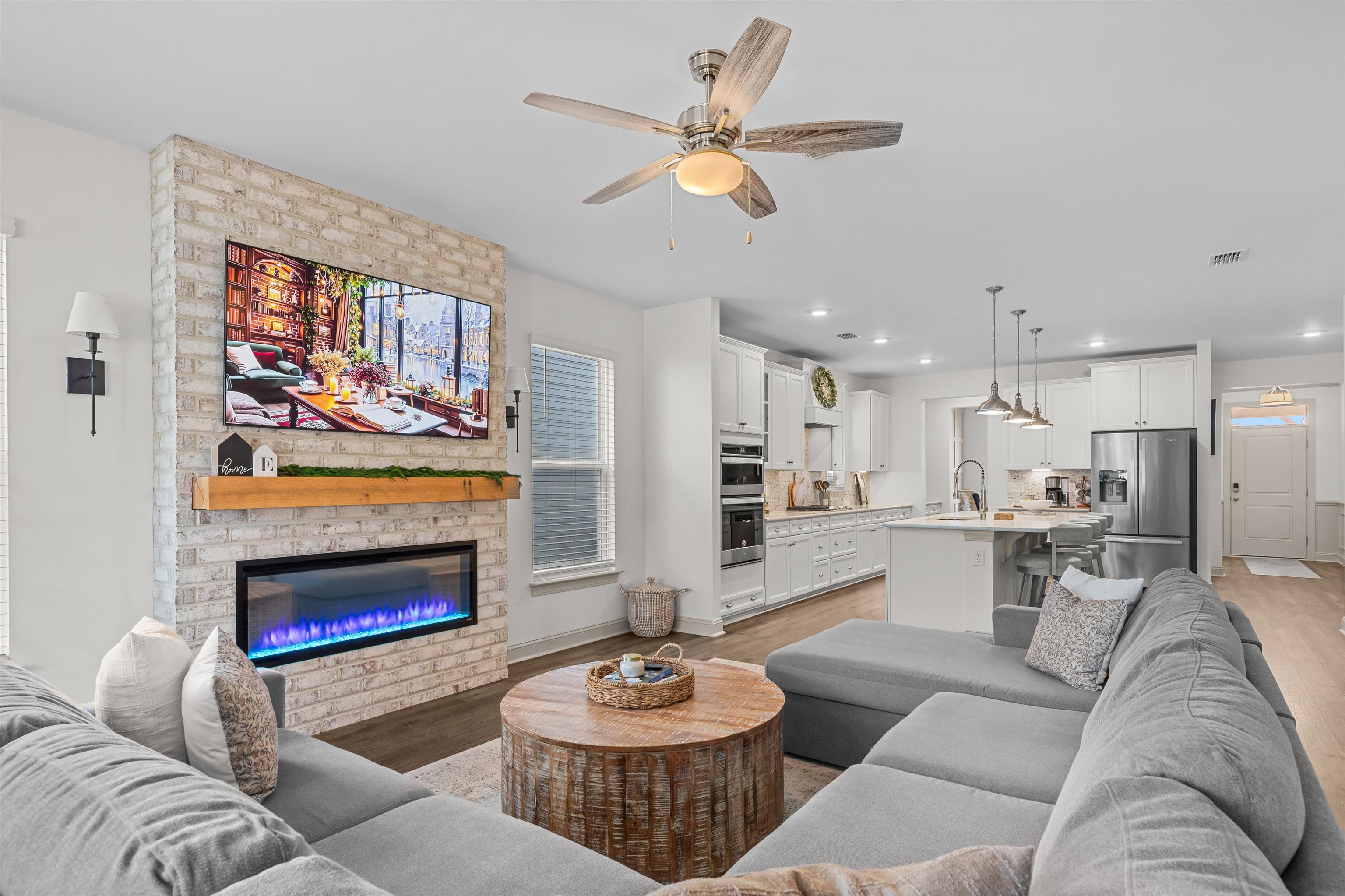 FamilyRoom: CeilingFans, Fireplace