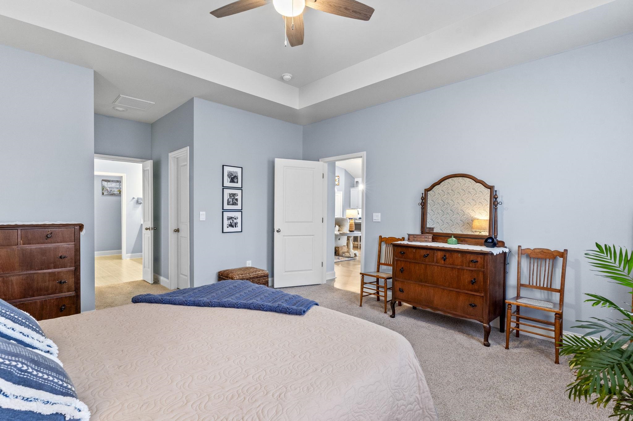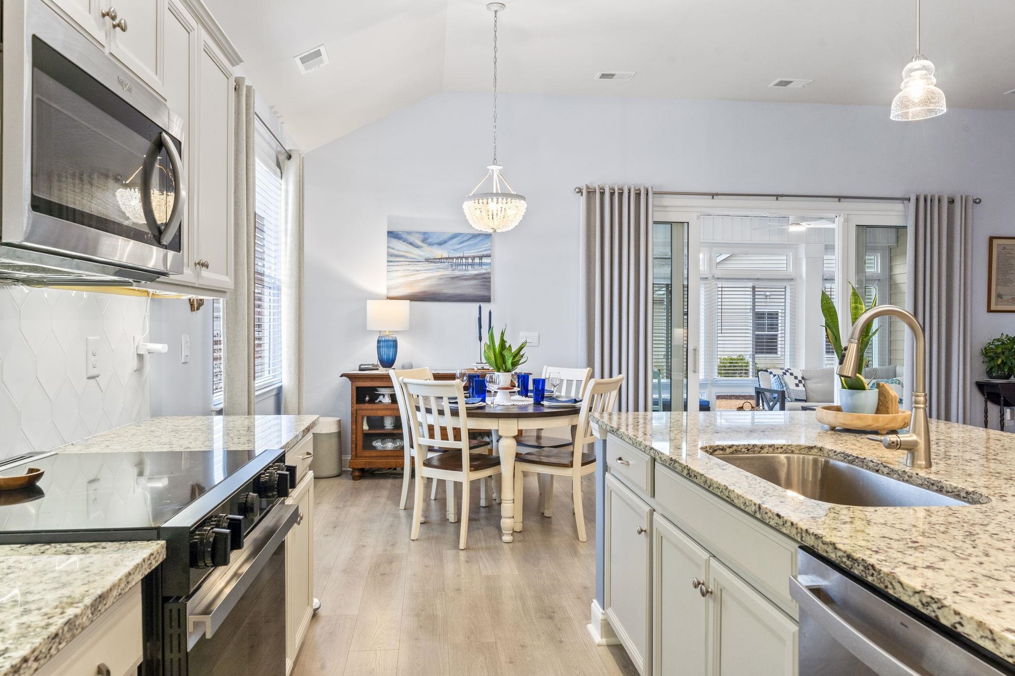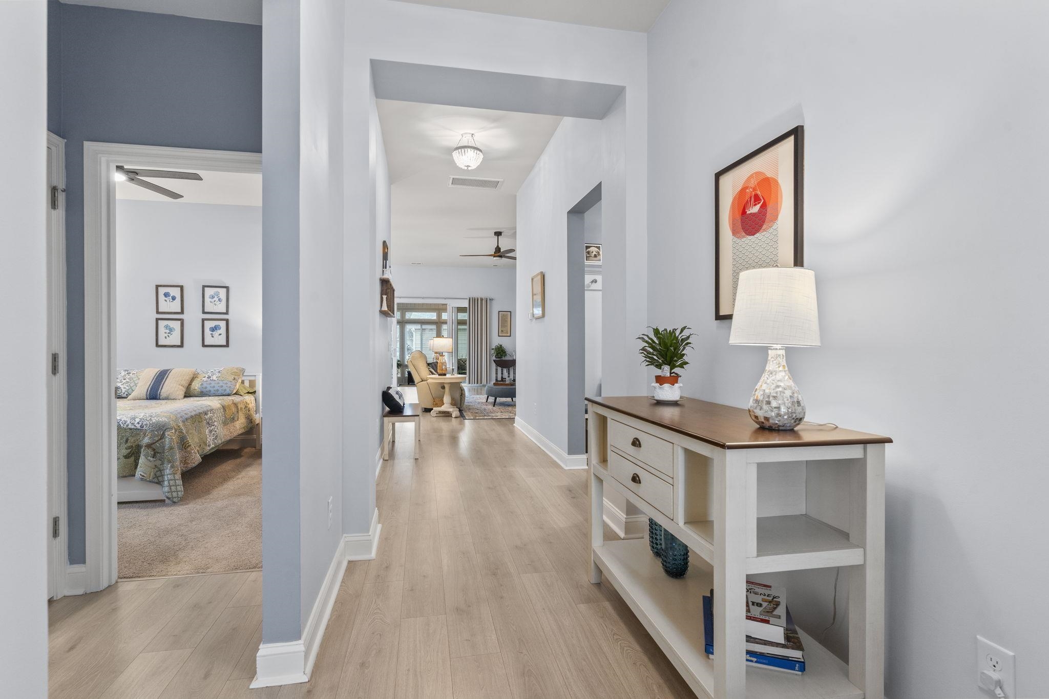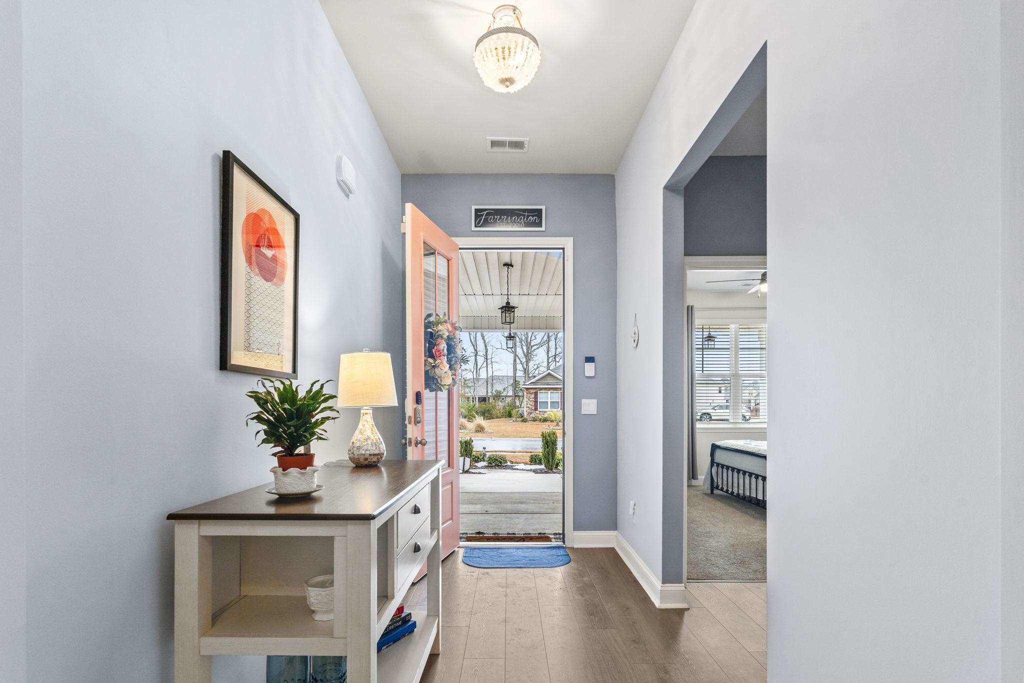 Welcome to the highly desirable Litchfield plan in Heather Glen, where resort-style amenities and thoughtful design come together. Residents enjoy a spacious clubhouse with sweeping verandas, an impressive swimming pool, conditioned fitness center, fenced dog park, playground, and even a charming blueberry garden. This beautiful four-bedroom home offers single-level living, making it both functional and comfortable. The open-concept layout is filled with natural light from abundant windows, while 11-foot ceilings in the main living areas create an airy, welcoming space perfect for entertaining. The home features granite countertops, stainless steel appliances, and durable wide-plank laminate wood flooring throughout the main living areas. The washer and dryer convey, along with an additional two-year-old refrigerator located in the garage. The living room showcases a custom built-in wall unit, and the walk-in pantry includes custom shelving for added storage and organization. The owners suite is privately tucked away at the rear of the home and features a spacious bathroom with a large tiled shower. Enjoy seamless indoor-outdoor living with an extended front porch and a fully enclosed rear porch with glass windows, which is heated and air conditioned for year-round enjoyment. The backyard also features an extended paver patio, perfect for outdoor entertaining, along with an in-ground irrigation system. Situated on a corner lot larger than most in the neighborhood, this home offers upgraded landscaping and added outdoor space. As an added bonus, the property is part of Americas Smart Home program, allowing control of the thermostat, front door light and lock, and video doorbell via smartphone or Alexa. Conveniently located close to shopping, dining, and entertainment, this home truly offers the best of coastal living.