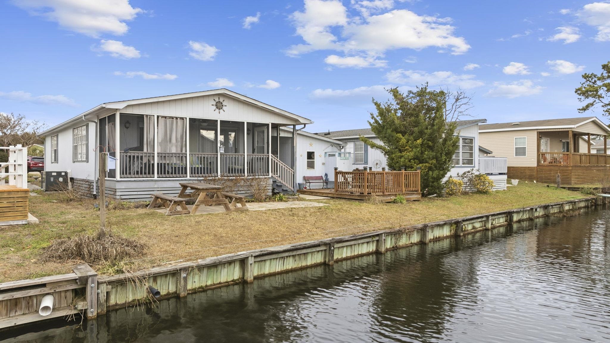 Welcome to this charming waterfront home located on the canal in the gated community of Oceanside Village. Featuring 2 bedrooms and 2 full bathrooms, this home offers a comfortable coastal lifestyle just a short distance to the ocean! Featuring a layout that blends indoor amenities with with outdoor living. Outside the screened porch provides a beautiful view overlooking the canal. The carport parking attaches to the storage and there is an outdoor showerideal after a day at the beach. Sold furnished, this move-in-ready home would make for a great primary residence, vacation getaway, or vacation rental. Community amenities include a clubhouse, pools, library and private beach parking. Put this one at the top of your list!