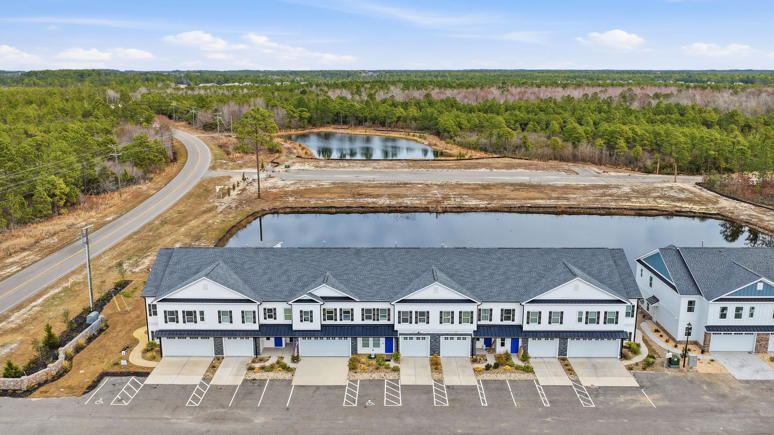 Coastal living, short term rental potential, and modern design come together at Watertower Estates, one of North Myrtle Beachs most desirable new construction communities. This beautifully designed 3 bedroom 2.5 bath townhome offers a rare opportunity for buyers seeking a primary residence, second home, or income producing property with true townhome ownership, ownership of the land, short term rentals permitted, natural gas service, and low HOA fees. Inside, 9 foot ceilings, luxury vinyl plank flooring, crown molding, 3 window trim, and 5 baseboards create a refined and welcoming atmosphere throughout. The open concept living and dining area flows seamlessly into a stunning kitchen featuring granite countertops, tile backsplash, stainless steel appliances including refrigerator, large breakfast island, and a spacious walk in pantry, making it ideal for entertaining and everyday coastal living. The main level also includes a half bath, generous laundry room, and access to a finished 1 car garage with painted walls and hung drywall for a polished low maintenance experience. Upstairs, the owners suite serves as a private retreat with double vanity, private water closet, tiled walk in shower, and a private balcony overlooking the tranquil pond, perfect for starting and ending each day in comfort. Two additional bedrooms share a Jack and Jill bathroom, offering excellent flexibility for guests, family, or rental use. Life at Watertower Estates feels effortless, with an amenity rich setting that includes a pool, pickleball courts, clubhouse, and peaceful lake views woven throughout the community. Whether your day includes a morning swim, pickleball with friends, time at the clubhouse, or sunset walks by the water, the lifestyle here is designed to feel like a getaway. Just minutes from North Myrtle Beach beaches, shopping, dining, championship golf, and Barefoot Landing, this location consistently performs for both lifestyle buyers and investors. Opportunities that combine modern construction, strong rental appeal, and this level of access to everything the area offers do not come around often, and this is a property that continues to make sense long after closing. HUGE BUYER INCENTIVES OFFERED BY BUILDER ON FINANCING (including buying rate down and closing costs) IF BUYER USES PREFERRED LENDER!!!