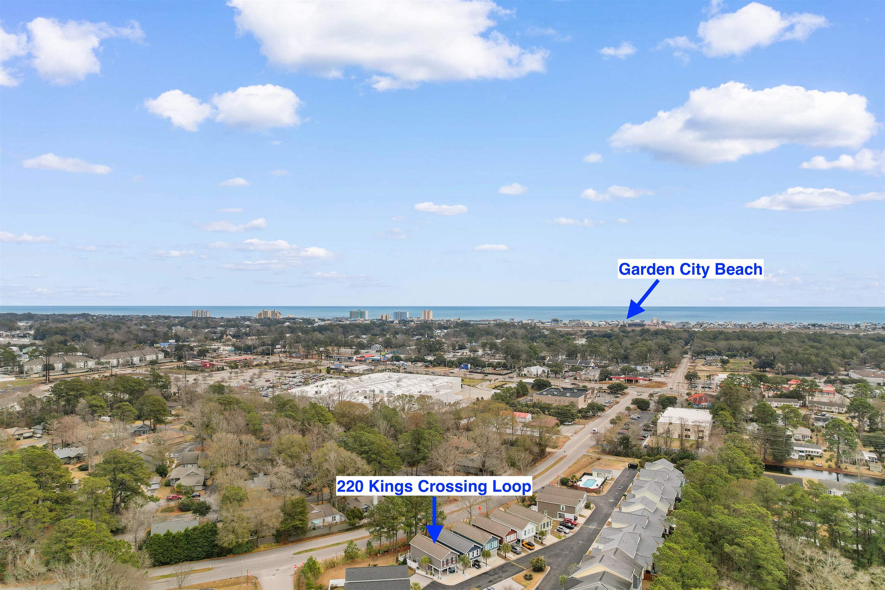 From the Myrtle Beach International Airport, turn right onto Harrelson Blvd, then at the light turn right onto US 17 business headed south. in 8.2 miles, Turn right onto Jamestown Dr. In 0.2 miles turn Left onto Turn left onto Jamestowne Landing Rd. Turn right at stop sign to stay on Jamestowne Landing Rd. Slight right onto Kings Crossing Loop. Destination will be on right, 220 Kings Crossing Loop.Courtesy of River Oaks Real Estate