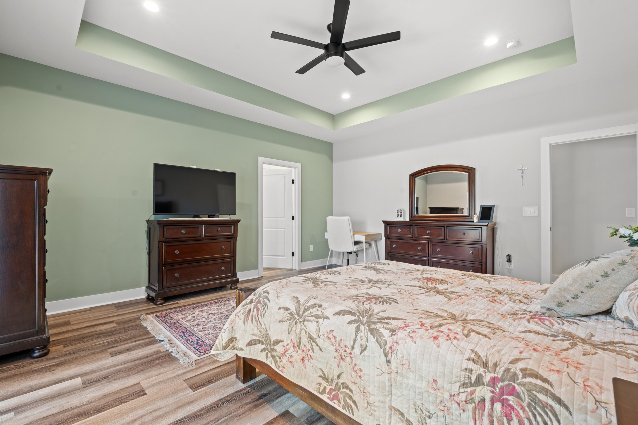 PrimaryBedroom: TrayCeilings, CeilingFans, MainLevelMaster, WalkInClosets