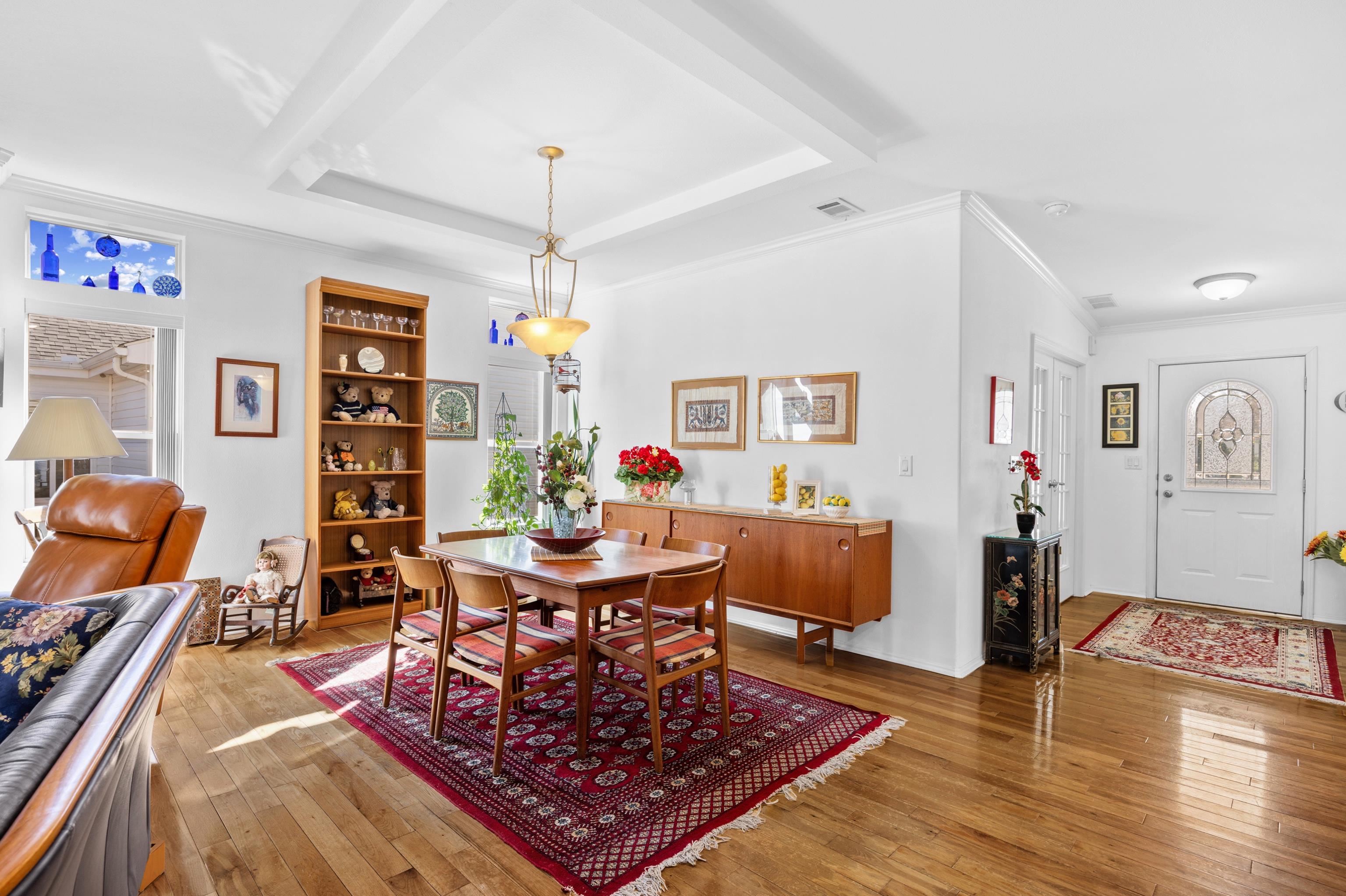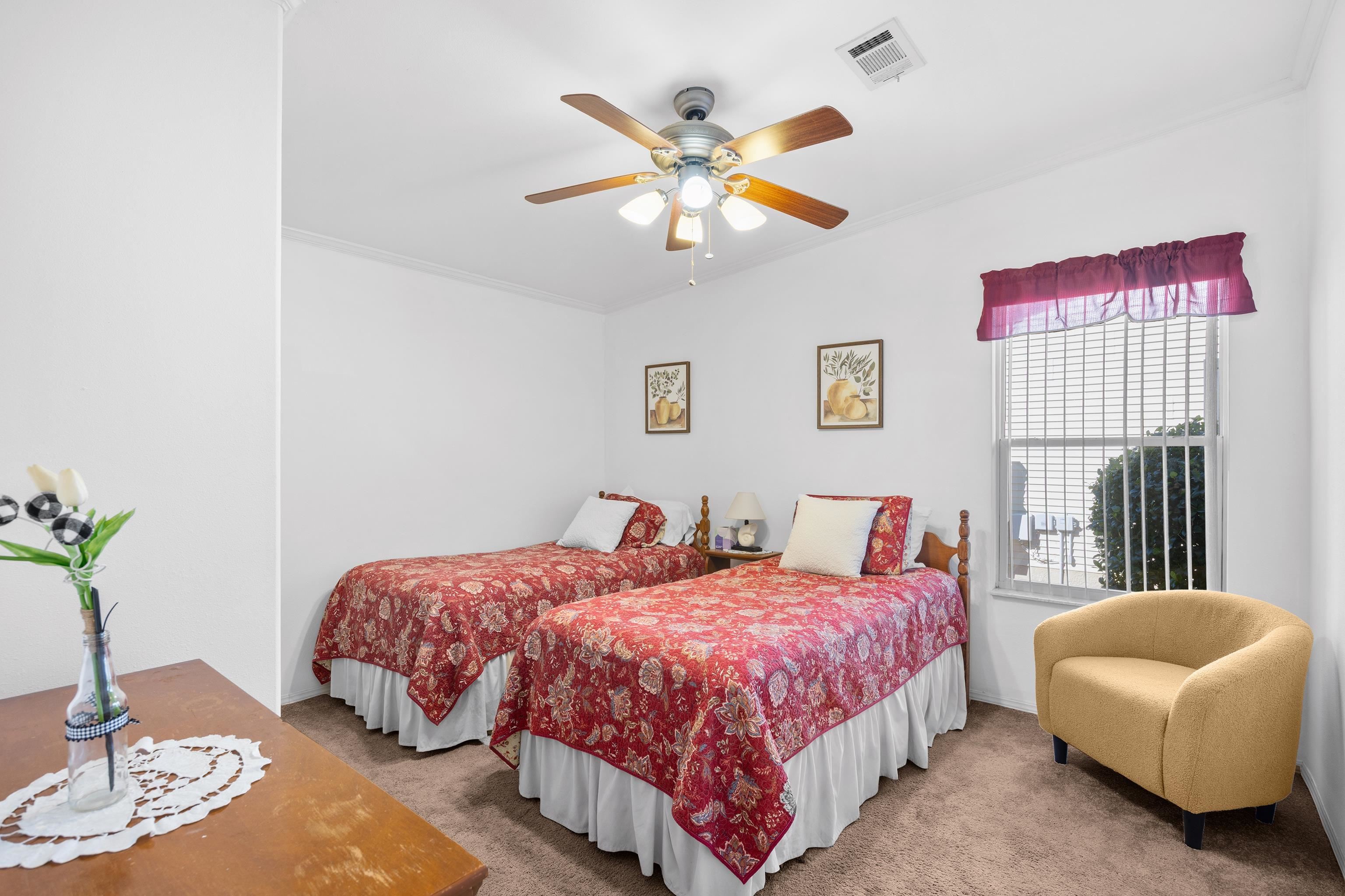 Exceptional 3-bedroom, 2-bath home with a 2-car garage, ideally located directly across from the community center that features an abundance of resort-style amenities. The home boasts tons of natural light and benefits from thoughtfully placed windows that capture serene lake views from the backyard. Interior finishes are bright and inviting. The layout includes a versatile sunroom that functions equally well as a home office or sitting area, plus a private back patio that provides an ideal setting for dining, peaceful relaxation, or entertaining guests. Practical features and thoughtful details enhance everyday comfort, and the propertys prime location affords easy access to community recreation and social spaces. Move-in ready and well-suited for buyers seeking a combination of convenience, lifestyle amenities, and scenic outdoor views.