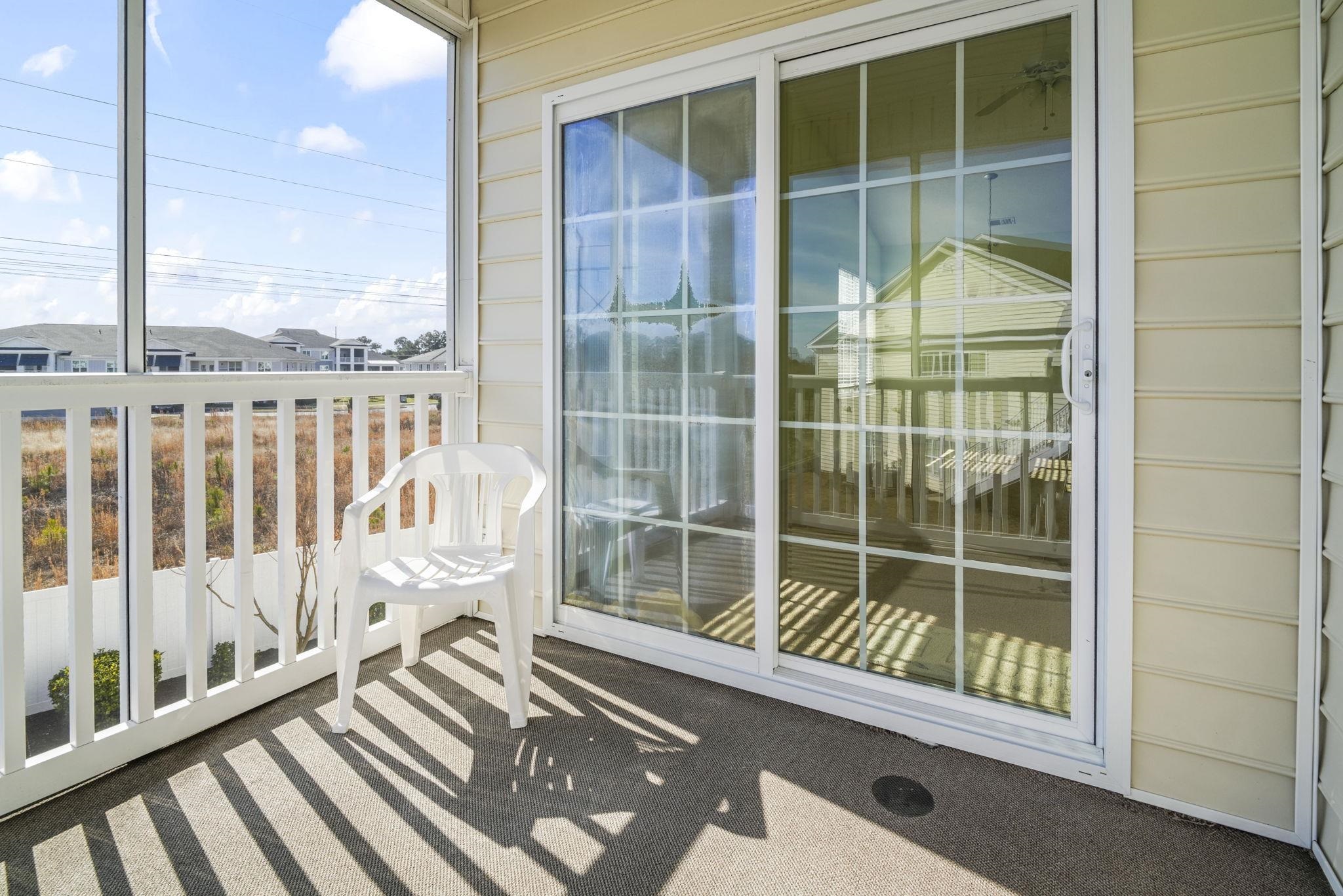 Top-Floor 3 Bedroom, 2 Bath End Unit Condo in Carolina Forest! This move-in-ready condo offers an open floor plan with vaulted ceilings and abundant natural light from windows throughout. All appliances convey, and the HVAC was replaced in 2025 for added peace of mind. The foyer opens to two spacious guest bedrooms, each with large closets providing ample storage. The primary suite features large windows, a ceiling fan, an attached private bath, and a generous walk-in closet. Enjoy your morning coffee or unwind in the evening on the screened-in porch overlooking the community. Perfect as a primary residence, investment property, or secondary home, this condo is located in a pet-friendly neighborhood with a community pool. Conveniently situated near Tanger Outlets, hospitals, grocery stores, banks, the post office, restaurants, and just 20 minutes from the beach.