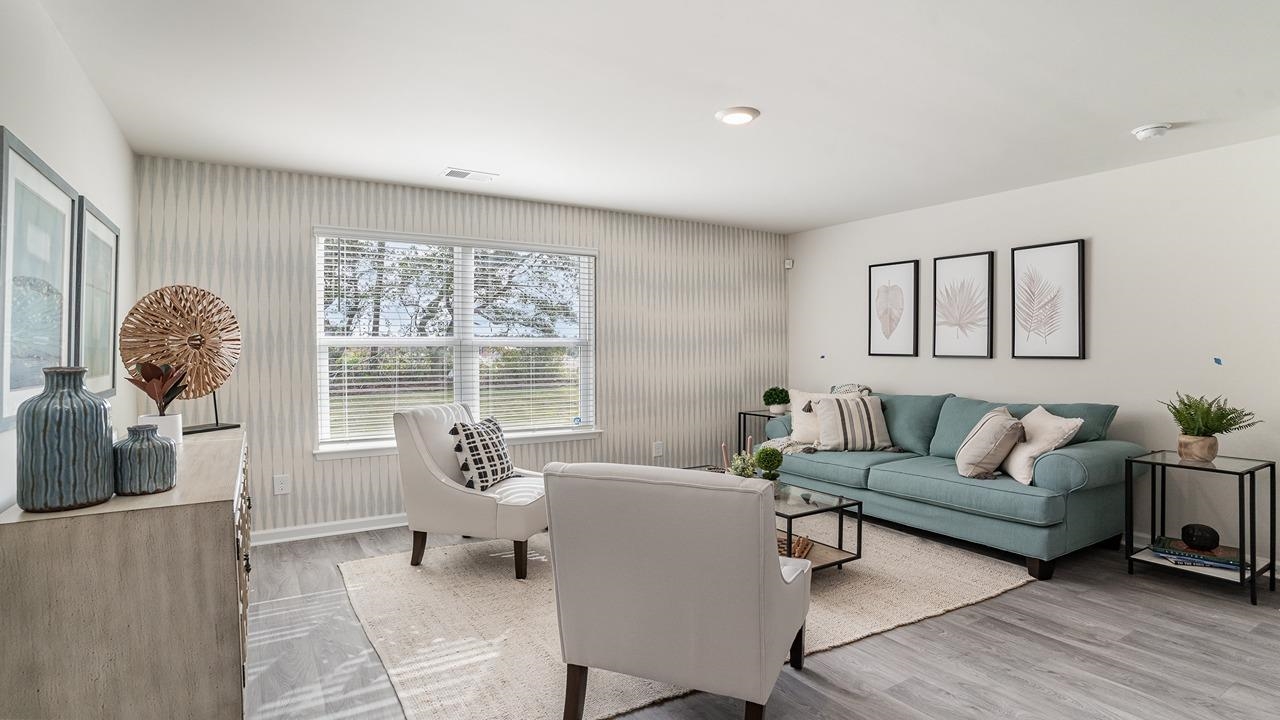 This thoughtfully designed one level home is one of our most popular floor plans! With an open concept living room, dining room and kitchen, this home is bright, spacious, and designed for entertaining guest or comfortably interacting with family. The kitchen features granite countertops, 36"" cabinets, a walk in corner pantry, stainless steel appliances, and island with breakfast bar! Your primary suite awaits off the back of the home with a spacious walk-in closet and master bath with double sinks, a linen closet and 5' shower. Three secondary bedrooms are at the front of the home providing separation from the primary suite. Enjoy the coastal air from the back porch as you wind down in the evening! Blinds will be included throughout the house on all standard sized windows. 2 car garage with garage door opener. This is America's Smart Home! Each of our homes comes with an industry leading smart home technology package that will allow you to control the thermostat, front door light and lock, and video doorbell from your smartphone. *Photos are of a similar Cali home. Pictures, photographs, colors, features, and sizes are for illustration purposes only and will vary from the homes as built. Home and community information, including pricing, included features, terms, availability and amenities, are subject to change and prior sale at any time without notice or obligation. Square footage dimensions are approximate. Equal housing opportunity builder.