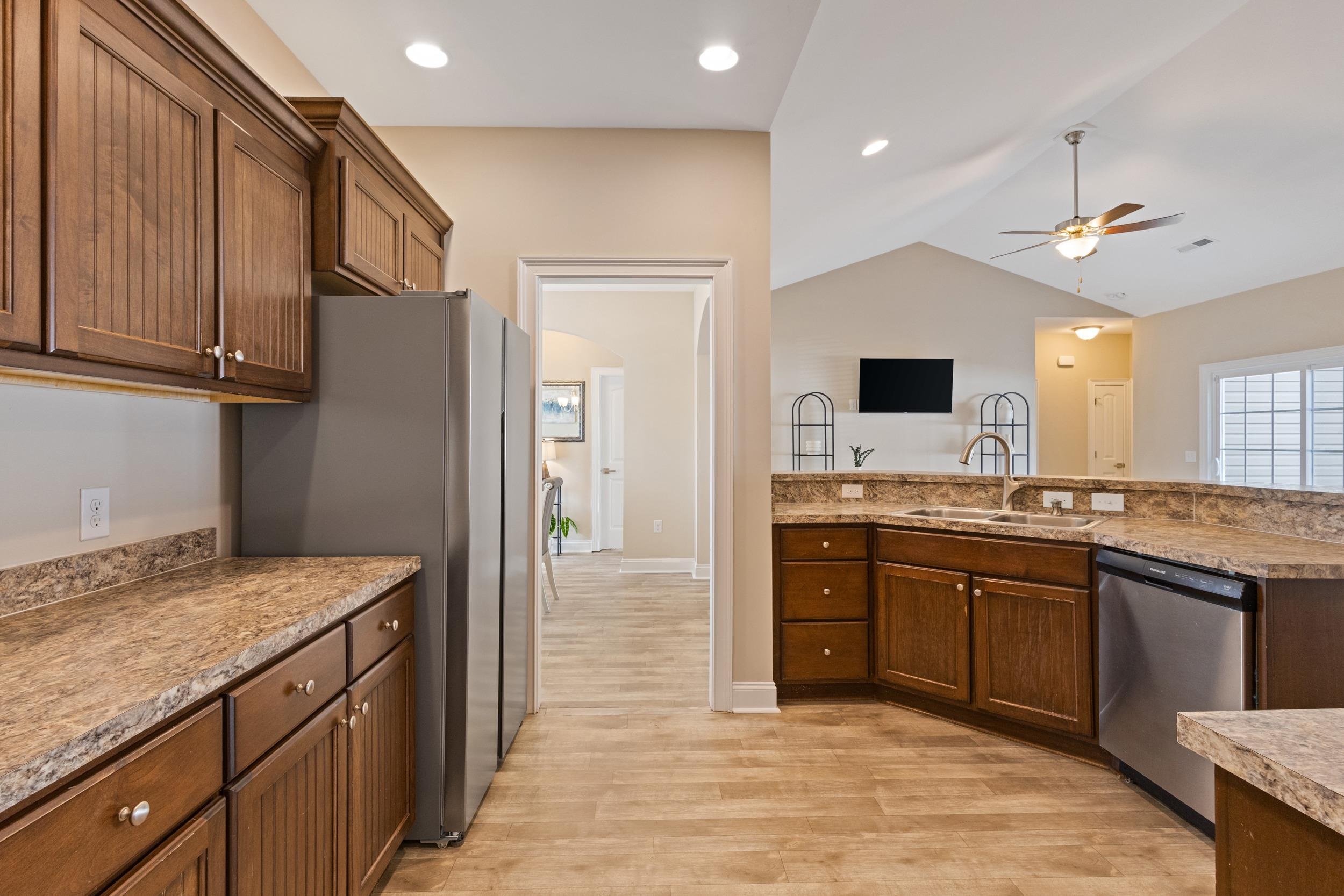 Experience quality craftsmanship and thoughtful design in this Hickory floorplan by Creekside Homes, a well-appointed 4-bedroom, 2-bath home offering comfort, space, and exceptional value. This beautifully laid-out home features a spacious open concept with solid wood kitchen cabinets topped with crown molding, stainless steel appliances, a pantry closet, and both a formal dining room with tray ceiling and a separate breakfast nookperfect for everyday living and entertaining. The large living room offers a vaulted ceiling and ceiling fan, creating an open and inviting atmosphere. An upgraded extra sliding glass door provides easy access to the extended 12' x 12' outdoor patio overlooking your private and fully fenced in yard, ideal for relaxing or hosting guests. The primary suite is a true retreat with a vaulted ceiling, ceiling fan, walk-in closet, and a well-appointed ensuite bath featuring a double vanity, garden tub, and separate shower. Three additional generously bedrooms and a full bath are positioned on the opposite side of the home, offering privacy and flexibility. Enjoy outdoor living with a spacious front porch, rear screened porch, and patio. Additional highlights include smooth ceilings, gutters, a fully sodded yard with irrigation, and a finished and painted garage with automatic door opener and pull-down attic storage. Durable and stylish vinyl flooring runs throughout the main living areas, bathrooms, laundry, pantry, and primary bedroom. Located in the highly desired Aynor school district, this home offers the charm of quaint country living just minutes from Conway, approximately 29 miles from Myrtle Beach, and about an hour from Florence. A perfect blend of peaceful living and everyday convenience, this home truly has it all. Schedule your showing today before this one is gone!