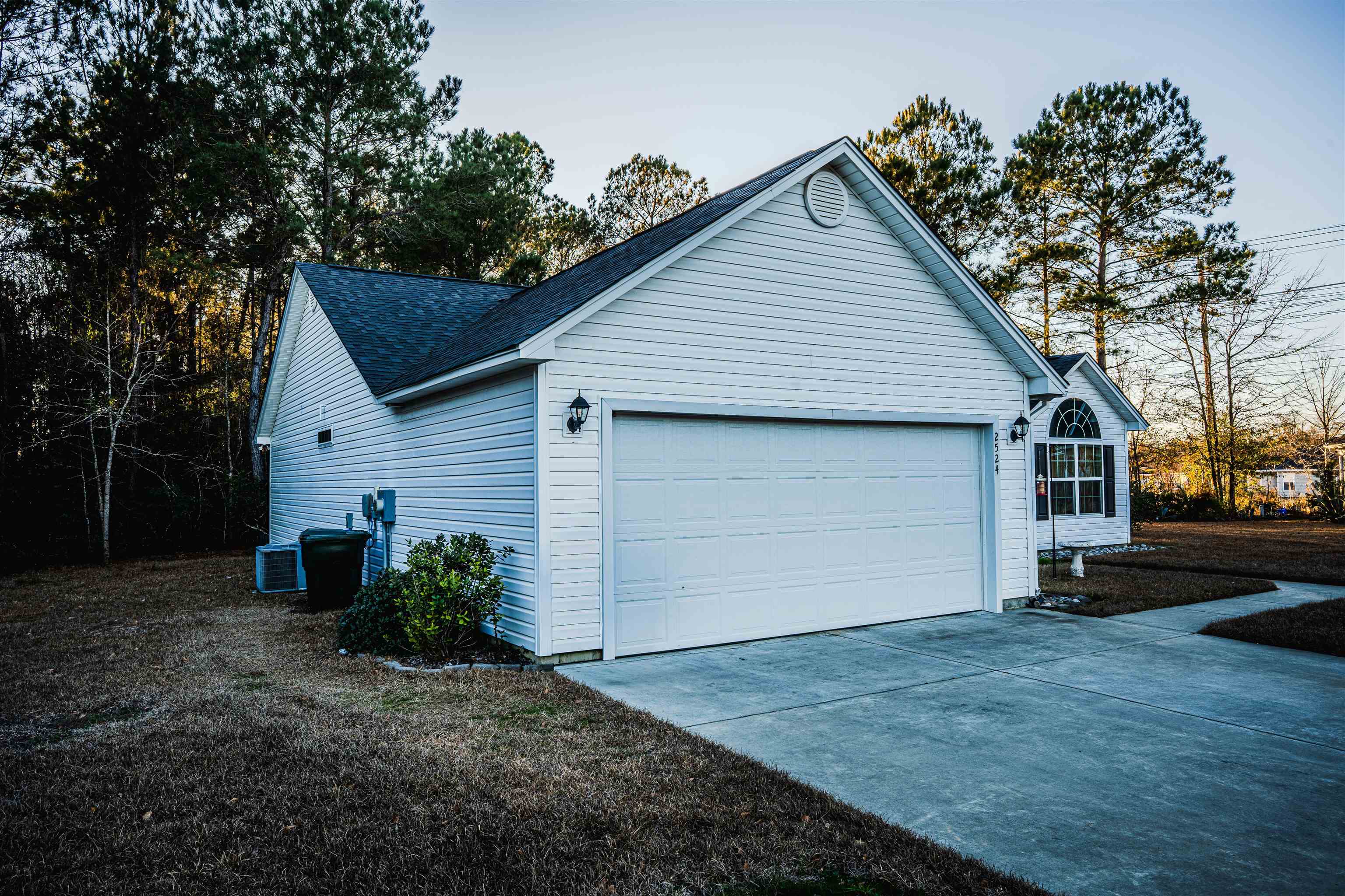 Must See this well maintained 3 Bed, 2 Bath home with an attached 2 car garage located on a cul-de-sac in the highly sought after, Rosehaven Community in Conway, only a short drive to the Beach! This huge mostly wooded lot (.89 acres) located at the end of a cul-de-sac, not only offers lots of privacy, but keeps your children safe from passerby traffic. Own a unique property with wooded lot that provides a natural enhanced privacy to your home, as well as shade and natural beauty. This beautiful home features an open floor plan with a high cathedral ceilings, that gives you that spacious feel from the moment you enter. You will love how impressive the kitchen looks with the granite counter tops, kitchen island, stainless steel appliances, recessed lighting, and from all the natural light coming in. ***This home comes furnished, but seller will remove, if furnishings are not needed. Ask your agent for the list of items that convey with a successful closing.*** All stainless steel appliances & washer/dryer convey with a successful closing of the purchased property. Professionally installed full house water filtration system. The split bedroom plan offers that needed privacy from the kids or visiting guests. The spacious primary bedroom features a tray ceiling with fan for keeping you cool at night. Primary bath features a granite counter top with double sinks, vanity, garden tub, walk-in shower and a big walk-in closet. Second bedroom has a vaulted ceiling with fan and a beautiful half-moon window. No carpet in this home allows for easy cleanup. If you or the kids get dirty playing or working in the yard, there is a utility sink in the large laundry room to help cleanup. Rosehaven is a very nice community with sidewalks throughout for all your daily walks around the neighborhood. This property is Not in a flood zone and has a very low monthly HOA fee. Rosehaven is located just minutes from the Historic Rivertown of the City of Conway with lots of amenities. Only a short drive to the beach with all the fine dining restaurants & entertainment the beach has to offer! View today, this one will not last! Listing information is deemed reliable, but not guaranteed. All measurements are approximate and listing information is the responsibility of the buyers and their agent to verify accuracy.