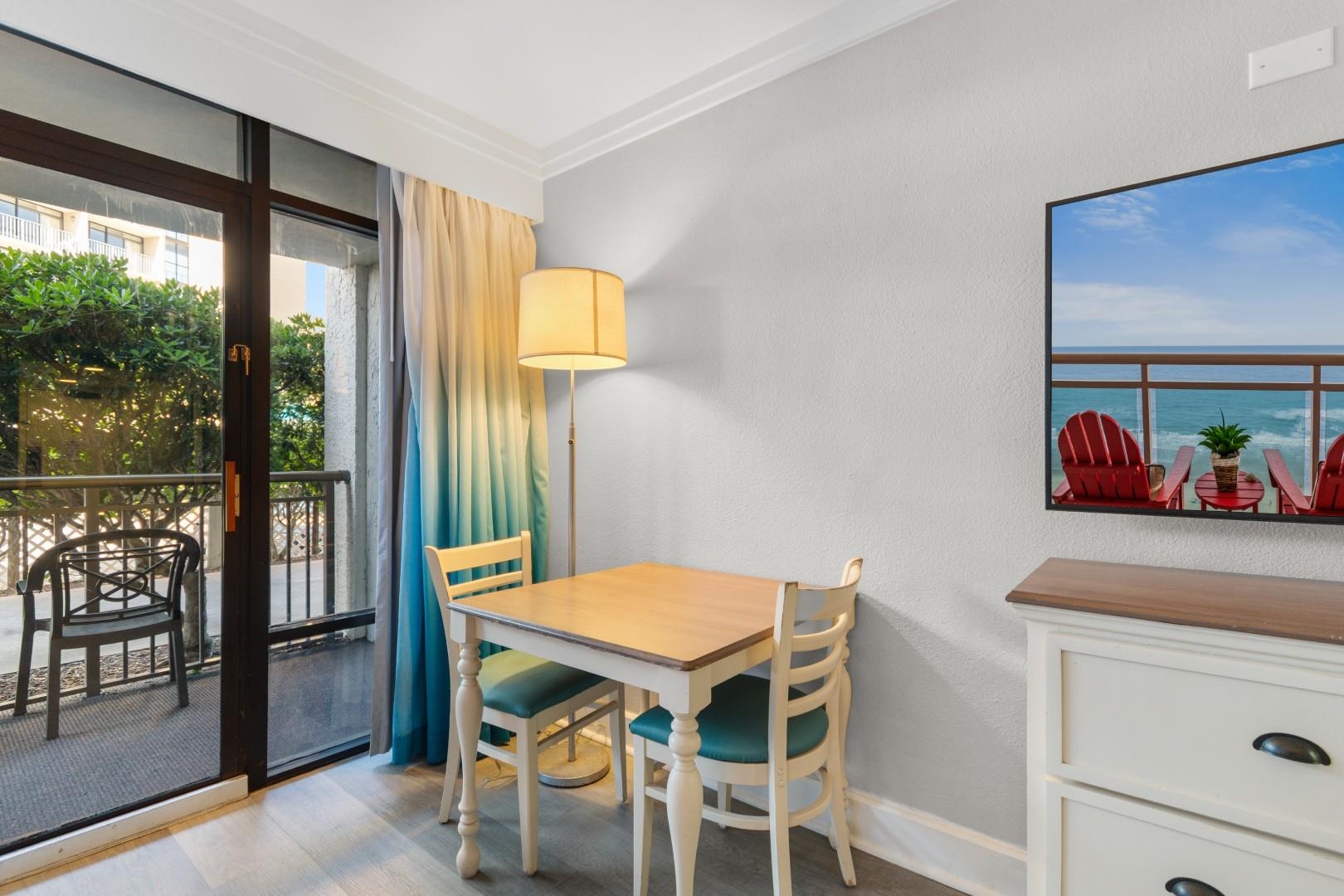Discover the perfect beachfront retreat at the highly sought-after Grande Cayman Resort in Myrtle Beach. This charming efficiency condo offers an inviting and functional space ideal for a weekend escape, vacation rental, or savvy investment opportunity. Fully furnished and move-in ready, the unit features a bright interior, a convenient kitchenette, and a private balcony where you can relax and take in the fresh ocean breeze while enjoying your morning coffee or evening cocktail. Located directly on the beach along the prestigious Golden Mile, Grande Cayman Resort offers an impressive array of amenities to enhance your coastal lifestyle. Enjoy multiple indoor and outdoor pools, a 250-foot lazy river, hot tubs, kiddie pools, and a fitness center. The resort also features on-site dining options, a Starbucks caf, mini-golf, a game room, and 24-hour front desk service. With covered parking and direct beach access, every day here feels like a vacation. Just minutes from Myrtle Beach's top attractions, golf courses, shopping, and entertainment, this condo places you in the heart of it all. Whether you're looking for your own seaside escape or a profitable rental property, this Grande Cayman gem offers the best of resort living by the shore.