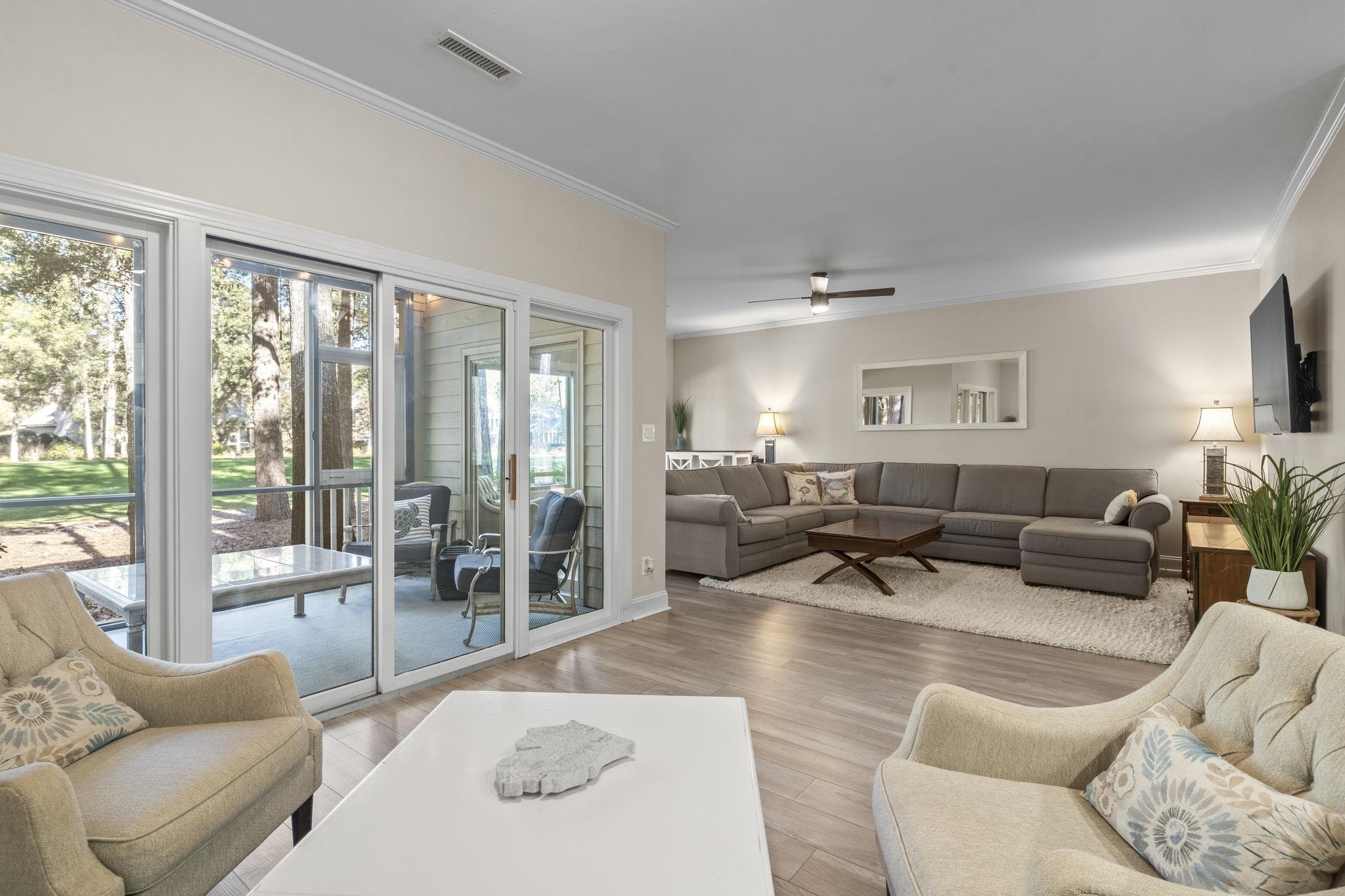 Wake up beneath a canopy of live oaks with golf course views and the soft sounds of the low country in the background. On quiet mornings, you can hear the ocean from the screened porch and on breezy days, even catch that familiar salt air that makes Pawleys feel like Pawleys. This three bedroom, two bath Masters Place villa offers an easy, relaxed Lowcountry layout with an owners suite on each level, ideal for hosting guests while keeping your own space private. The main living areas flow naturally together and open toward the fairway, creating a comfortable setting for slow mornings, casual dinners, and laid back entertaining. Upstairs, a spacious suite with sitting area provides a perfect retreat, while an additional guest room with a cozy nook offers flexibility for visitors, work, or downtime. Covered parking and exterior storage make beach days and golf rounds effortless. Located inside the gated Pawleys Plantation community, youre surrounded by mature trees, winding fairways, and a calm, residential feel, yet just minutes from beaches, dining, and everything that makes the South End so special. Optional club amenities give you the freedom to enjoy the lifestyle on your terms. Whether youre looking for a full time home or a lock and leave coastal escape, this villa captures the slower pace and quiet charm that keep people coming back to Pawleys.