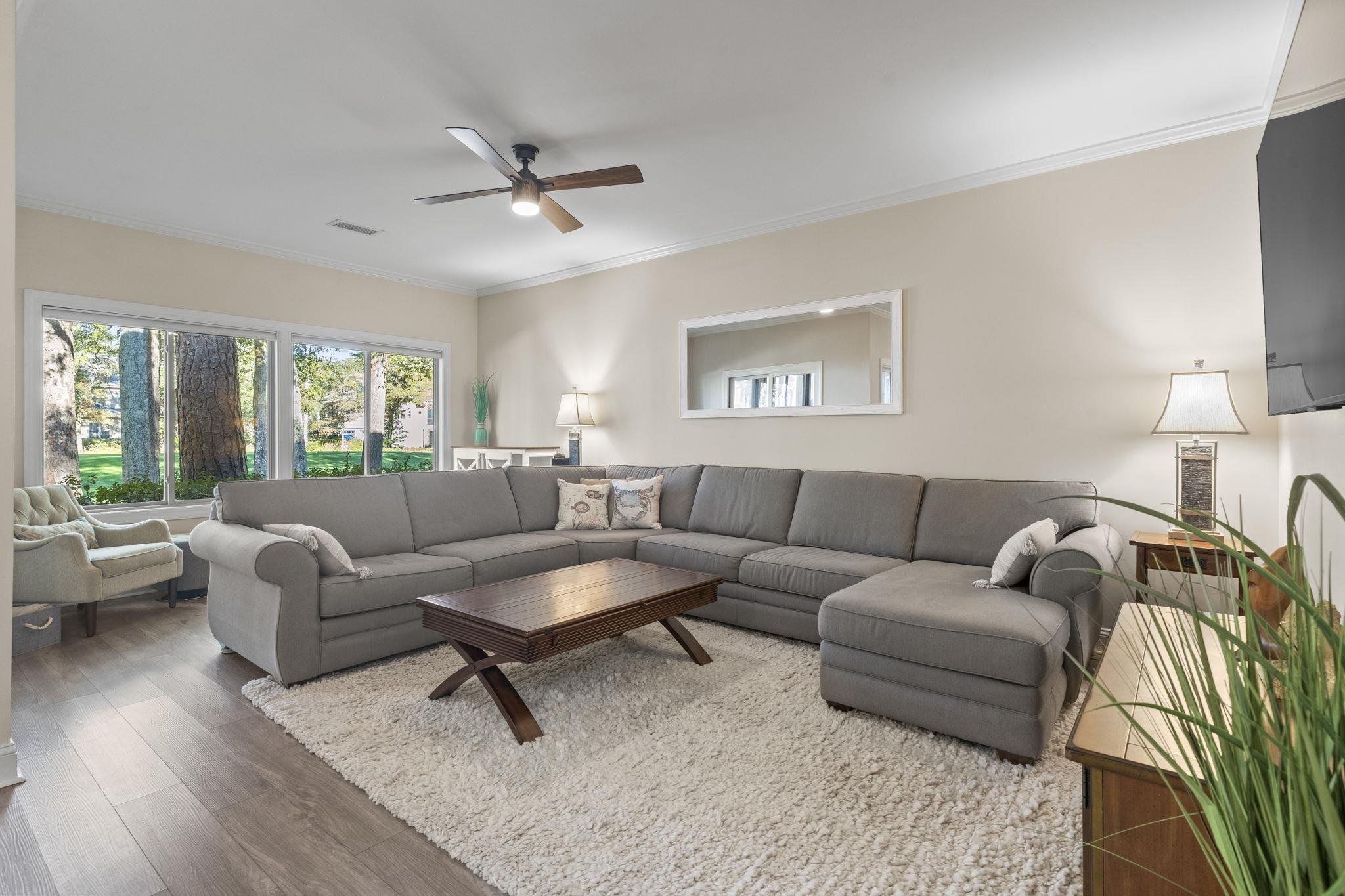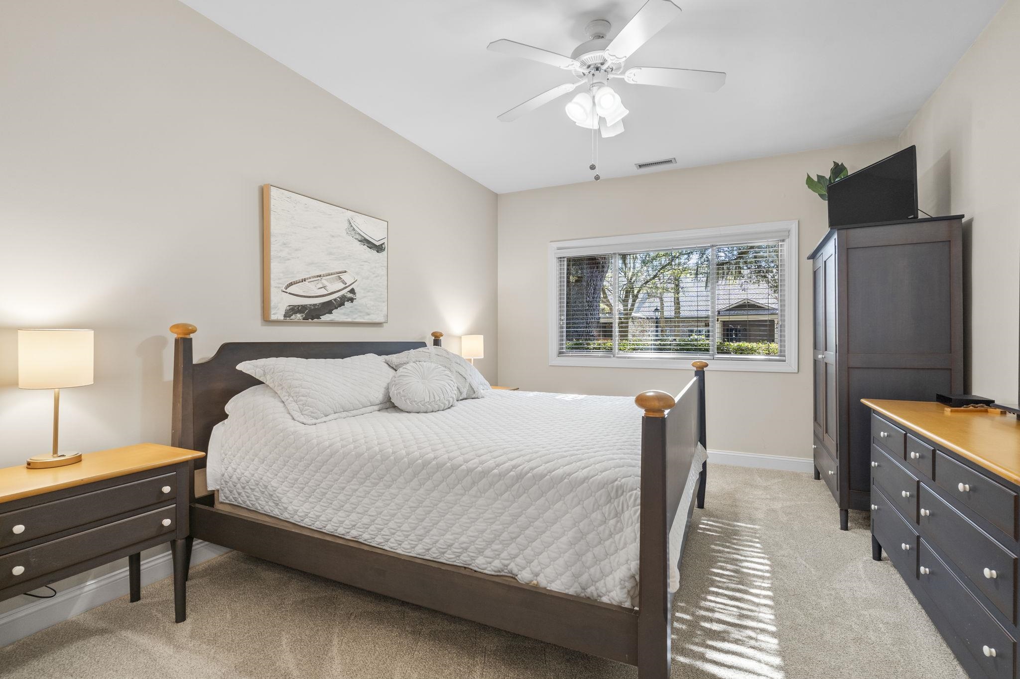 Wake up beneath a canopy of live oaks with golf course views and the soft sounds of the low country in the background. On quiet mornings, you can hear the ocean from the screened porch and on breezy days, even catch that familiar salt air that makes Pawleys feel like Pawleys. This three bedroom, two bath Masters Place villa offers an easy, relaxed Lowcountry layout with an owners suite on each level, ideal for hosting guests while keeping your own space private. The main living areas flow naturally together and open toward the fairway, creating a comfortable setting for slow mornings, casual dinners, and laid back entertaining. Upstairs, a spacious suite with sitting area provides a perfect retreat, while an additional guest room with a cozy nook offers flexibility for visitors, work, or downtime. Inside, new carpet adds a fresh, comfortable feel throughout. Covered parking and storage make beach days and golf rounds effortless. Located inside the gated Pawleys Plantation community, youre surrounded by mature trees, winding fairways, and a calm, residential feel, yet just minutes from beaches, dining, and everything that makes the South End so special. Optional club amenities give you the freedom to enjoy the lifestyle on your terms. This villa captures the slower pace and quiet charm that keep people coming back to Pawleys.