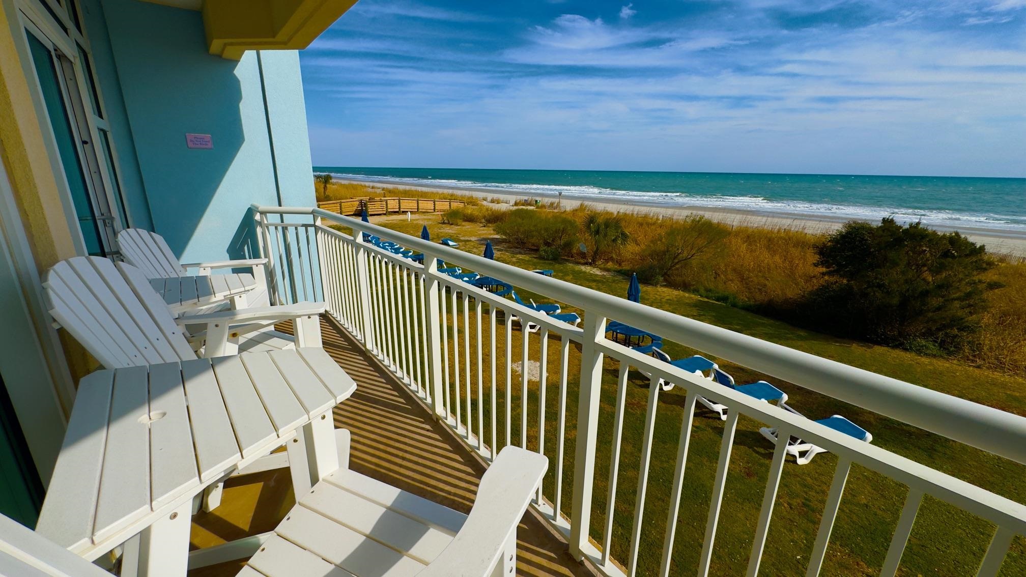 This unit is a beautiful first-floor, two-bedroom, and two-bathroom configuration characterized by its ""spacious"" interior. The front entrance opens directly into a wide, open-concept kitchen and living room area. This design choice avoids the common ""entry-into-bedroom"" layout, immediately emphasizing the living space. The unit is oriented toward the Atlantic Ocean, with direct views available from three primary areas: The Living Room , Kitchen and Master Bedroom The property has recently undergone a comprehensive series of upgrades. These improvements cover aesthetic finishes, essential mechanical systems, and structural maintenance, likely reducing the immediate need for capital expenditure by a prospective owner. Including New Luxury Plank Flooring; New Quartz Countertops; Resurfaced outside deck. New Kitchen Fixtures; New Toilets; New Doors and Seals on the front sliding door. New Dishwasher; New Garbage Disposal; New Furnace. New interior paint throughout the unit. The Holiday Sands Resort also provides a suite of amenities that support both long-term residency and short-term vacation rentals. These facilities are designed to appeal to various demographics, particularly families.The resort features a large outdoor pool and a ""lazy river"" water feature. Fitness and Health: On-site facilities include a dedicated exercise room. Seasonal Programming: The resort offers planned summer activities specifically for children, enhancing its appeal as a family-centric destination. The property's value is bolstered by its proximity to local dining, entertainment, and retail centers, which serves as a primary driver for rental demand and lifestyle convenience. The resort is located close to several popular beach restaurants and nearby Market Common a hub that provides high-density lifestyle options, including: Fine Dining establishments. A Movie Theatre. Extensive Shopping opportunities.