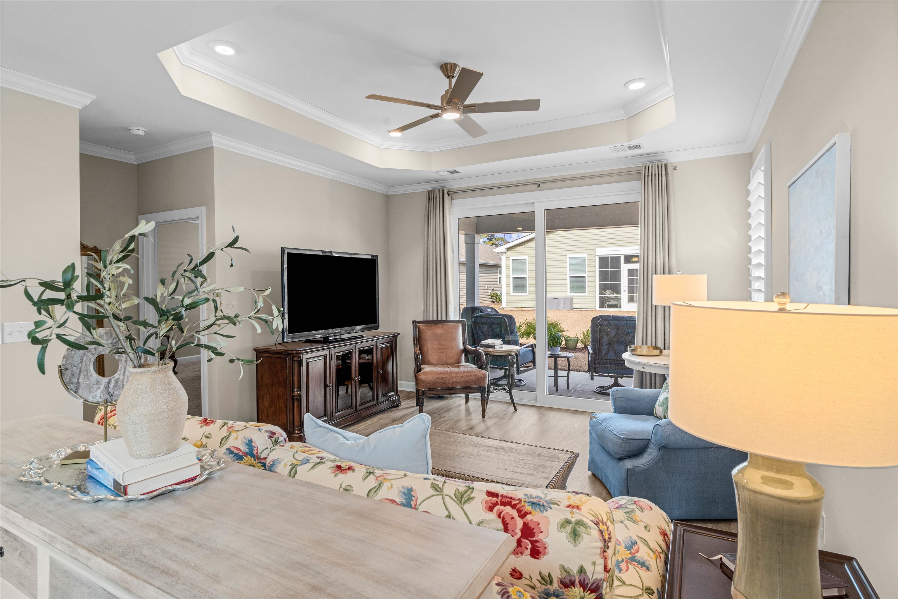 Welcome to BRIDGEWATER... A beautiful upscale Natural GAS community with resort style amenities nestled in south end of Little River, SC just about 3 miles to the beaches. This beautifully all one level upgraded 3-bedroom, 2-bath home at 1011 Cascade Loop is only 3 years old and shows like new. Built with numerous builder upgrades, this home offers an open, functional layout designed for modern living. Enjoy the convenience and efficiency of all-natural gas, including gas cooking and heating. The thoughtfully designed interior is complemented by quality finishes and attention to detail throughout. Some of these features include.. spacious walk-in kitchen pantry, gorgeous quartz countertops, custom soft close cabinets, double wide sliding glass door to patio, tray ceilings in master and living area. Seller has installed high-end plantation shutters throughout, custom drapes, queen size Murphy bed in guest bedroom and brand-new Maytag W/D, All WILL CONVEY with home! Bridgewater Community features resort-style amenities, creating a relaxed, upscale lifestyle just minutes from shopping, dining, golf, and the beach. This move-in-ready home is the perfect blend of comfort, style, and location. Come take a look... COASTAL South Carolina living awaits you!