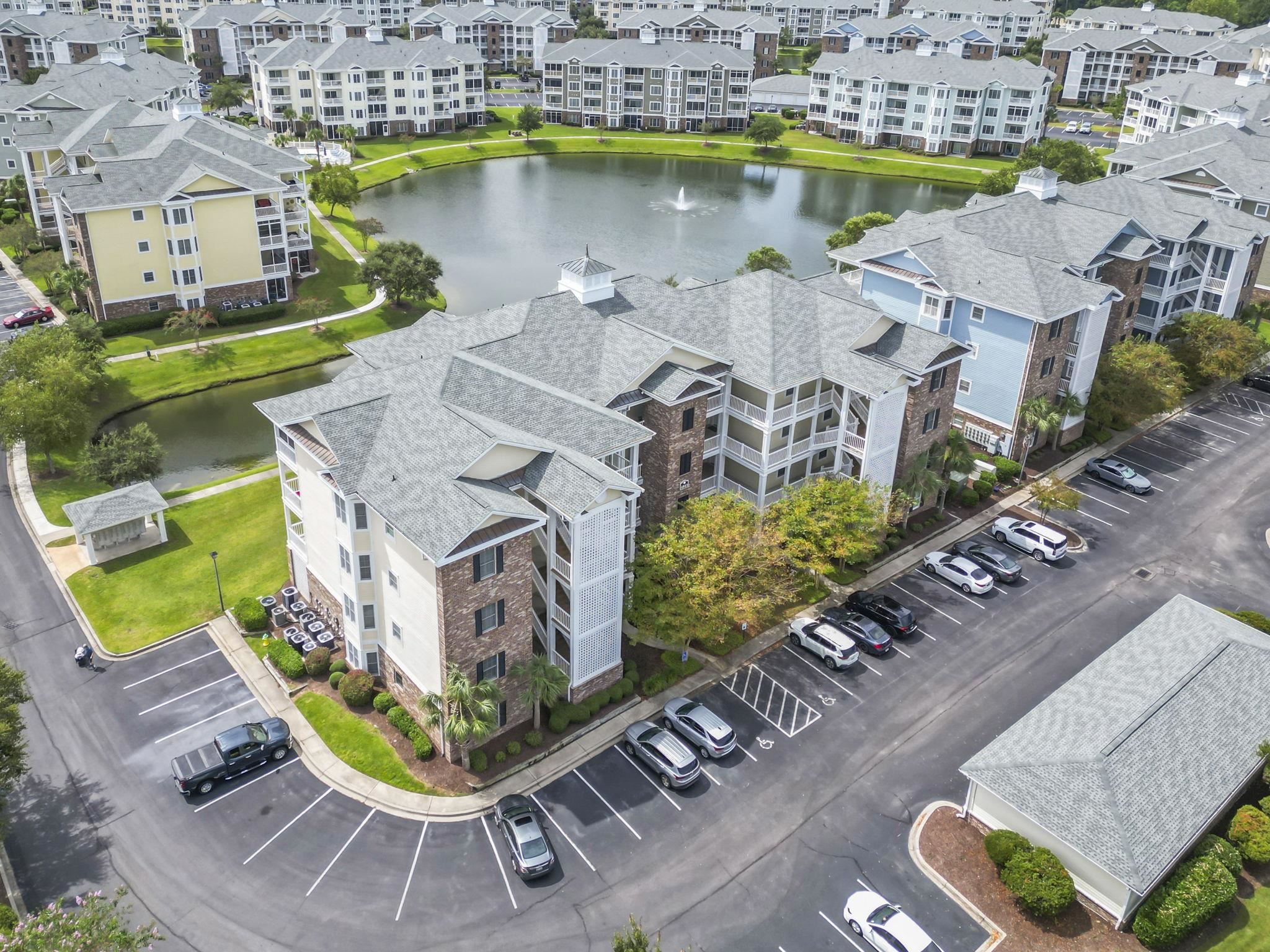 Situated within the Magnolia Pointe community at Myrtlewood Golf Course, this top-floor end-unit condo offers a comfortable and well-designed living space in a prime Myrtle Beach location. With three bedrooms and two bathrooms, the layout provides both privacy and flexibility for everyday living, guests, or working from home. Vaulted ceilings and additional windows bring in plenty of natural light, giving the living area an open, easygoing feel. The kitchen connects directly to the main living space, making it practical for both daily use and casual entertaining. From the living room, sliding doors lead to a screened balcony overlooking the lake, a quiet spot to enjoy some fresh air. The primary bedroom is nicely sized with vaulted ceilings and an attached bathroom featuring dual sinks, a tub and shower combination, and good storage. Two additional bedrooms offer comfortable space and natural light, benefiting from the end-unit location. Magnolia Pointe offers a low maintenance lifestyle with an HOA that covers water, trash, landscaping, pest control, cable, and internet. Residents also enjoy access to multiple pools, walking paths, and well kept common areas. The location puts you close to shopping, dining, golf, and entertainment, with the beach just a short drive away. This is a rare opportunity to own a top-floor end unit in one of Myrtle Beach's more established condo communities.