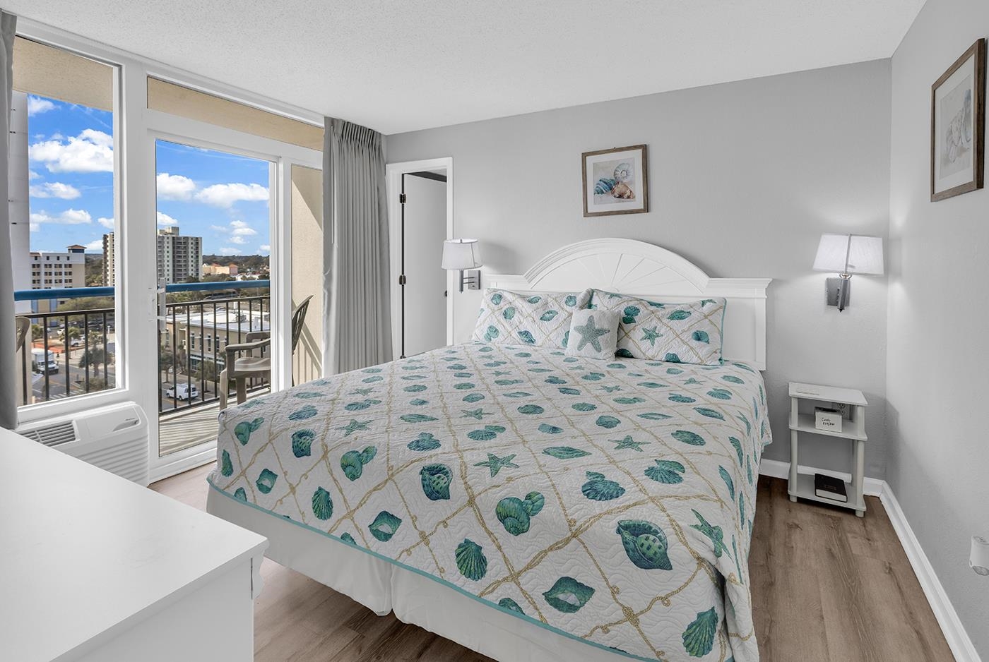 Rare direct oceanfront two-bedroom, three-bathroom lockout condo offering exceptional flexibility and rental potential. The lockout design allows the unit to be rented as one two-bedroom condo or two separate condos, maximizing rental opportunities. Inside, youll find upgraded flooring, a bright kitchen with white cabinetry, stainless steel appliances, and solid surface countertops. Recent updates include a renovated bathroom, fresh paint, recently replaced drapes in all rooms, shiplap accents, and popcorn ceiling removal in the living room. Enjoy three private balconiesone direct oceanfront and two with ocean viewsperfect for soaking in the coastal lifestyle. Ideally located in one of Myrtle Beachs most desirable areas, near Broadway at the Beach, Topgolf, local dining, shopping, and entertainment. The lot directly south has been cleared for an upcoming Hilton Grand Vacations, with plans for a beautifully enhanced public park nearby. Turnkey, updated, and positioned in a high-demand oceanfront location. Come by and see this condo today!