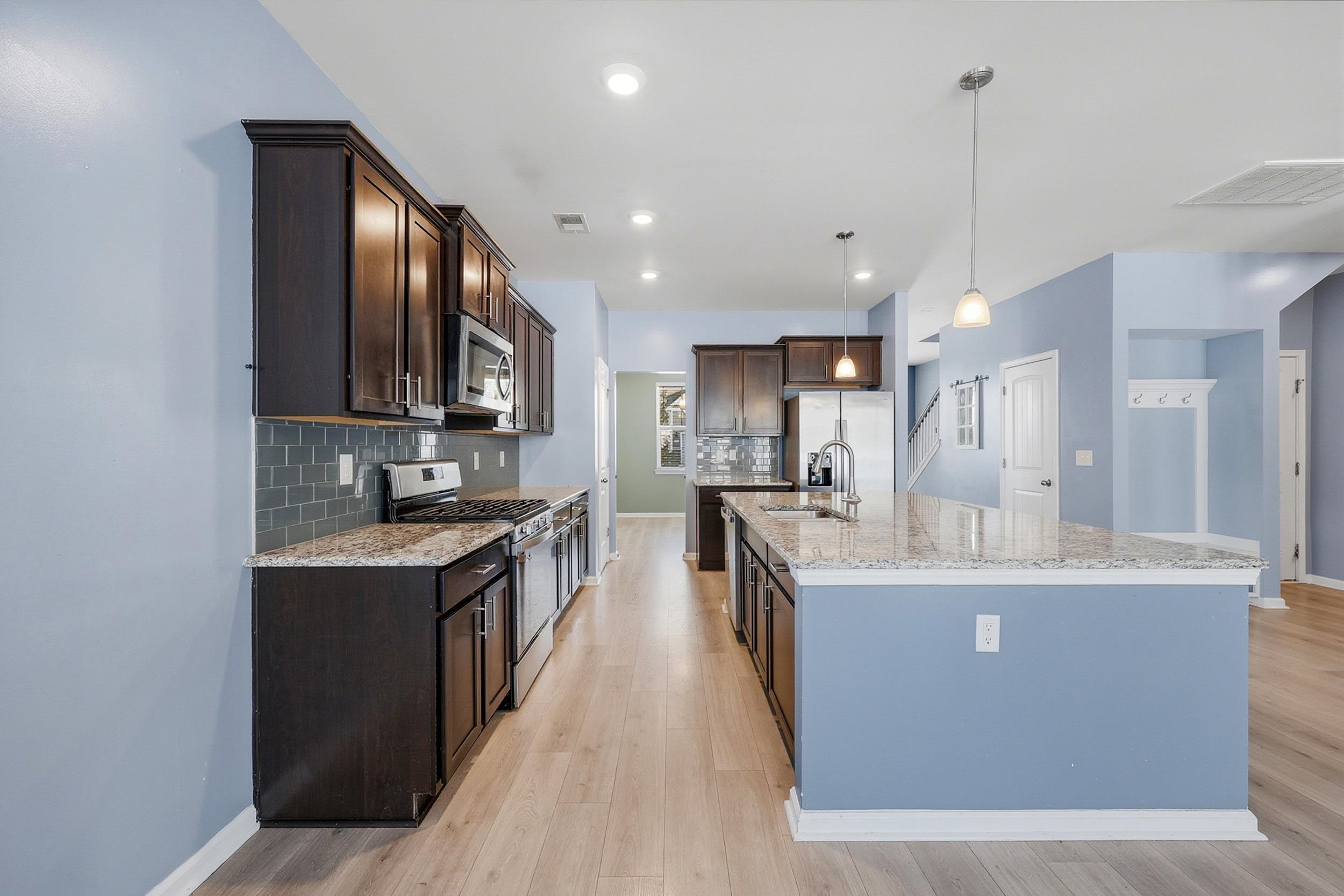 Welcome to 115 Juniata Loop in the Hidden Brooke community. This traditional style former model home offers 5 bedrooms and 3.5 baths with a flexible layout and plenty of space. The main level features wide-plank laminate flooring and a spacious kitchen with 42"" cabinets, granite countertops, subway tile backsplash, stainless appliances with gas range, island, pantry, and breakfast bar. First-floor primary suite includes a walk-in closet and ensuite with double vanity and tiled shower. Upstairs youll find four additional bedrooms, two full baths, a laundry room, and a large loft. Enjoy both front porch and screened back porch, plus a fenced backyard. Additional highlights include gas HVAC and water heater, updated carpet, and tile in wet areas. Hidden Brooke offers a community pool, clubhouse, fitness room, and trash service through the HOA. Conveniently located about 10 minutes from Cherry Grove Beach. Schedule your showing today!