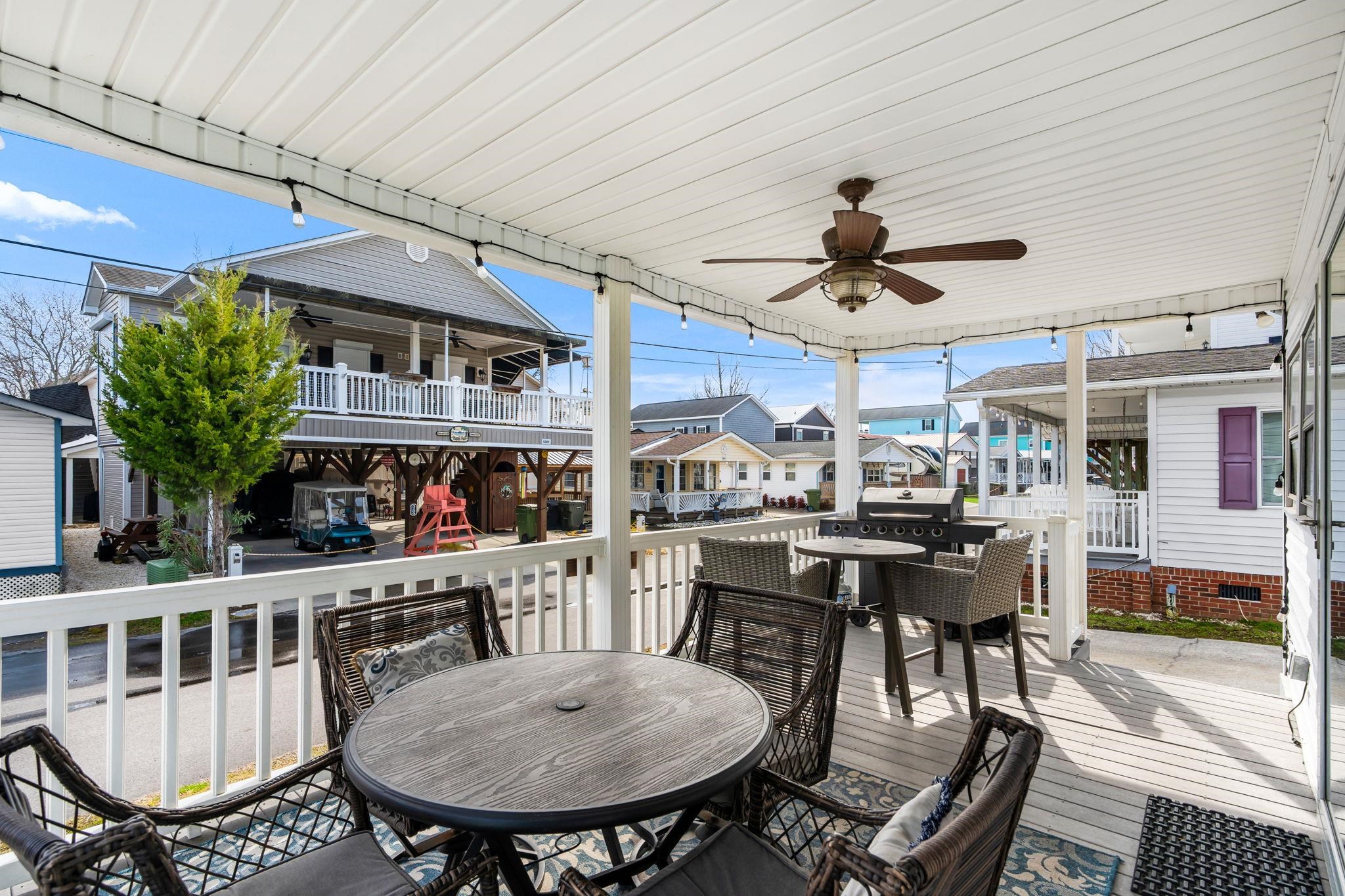 Welcome to 5310, this 2-bedroom 2 bath home facing East for great morning sun and afternoon shade. LARGE COVERED front porch with COMPOSITE DECKING, LED lighting, and ceiling fan. Concrete driveway with enough parking for 2 vehicles, golf cart garage, and a front yard! Entering inside you have a large living room with ceiling fan, off the living room is bedroom #1 with ceiling fan, queen bed (room is large enough for a king bed), hallway to bath #1 with walk-in shower. Rear entry door leading to driveway is just past the bathroom. To the right of the living room is the dining area with plenty of natural light, breakfast bar and kitchen with plenty of cabinets. Past the kitchen is full bath #2 with tub/shower combo, and finally bedroom #2 at the rear of the home. Entire home has laminate flooring (installed in 2007) with the exception of Bedroom #1 and rear hall having carpeting.
