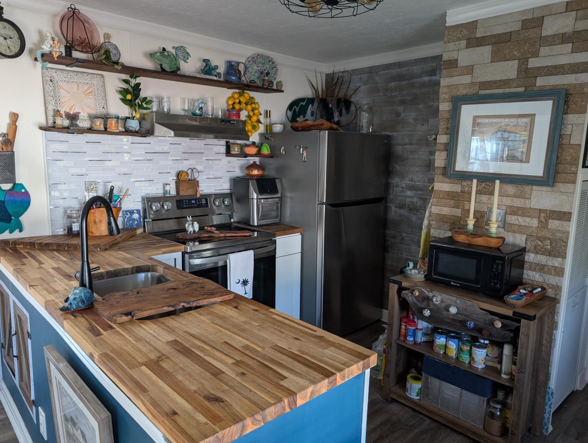 This place is totally revamped and modernized from its original build. The current owner has very good taste! Two bedrooms, one in front and one in back...decent sized. Living room and kitchen are GREAT. Laundry area offers some additional space. The OUTDOOR space is one of the big pluses of this place. The lot is very substantial; there is a shed and additional detached storage and the walkway to the deck is exceptional! Out back there is a sweet spot to sit in a spot of shade thanks to the nice tree...great to have trees...OR put a gas fireplace out there for that cold night. Oceanside Landing features LOTS of amenities such as a heated and cooled swimming pool, first class Clubhouse w/ fitness room, Pickle Ball court, Dog Park and an Outdoor grilling area. This community is very active, and they have lots of social events like Holiday celebrations, Monthly Birthday parties and Wednesday morning coffee and donuts. DO put this spot on your list to see!