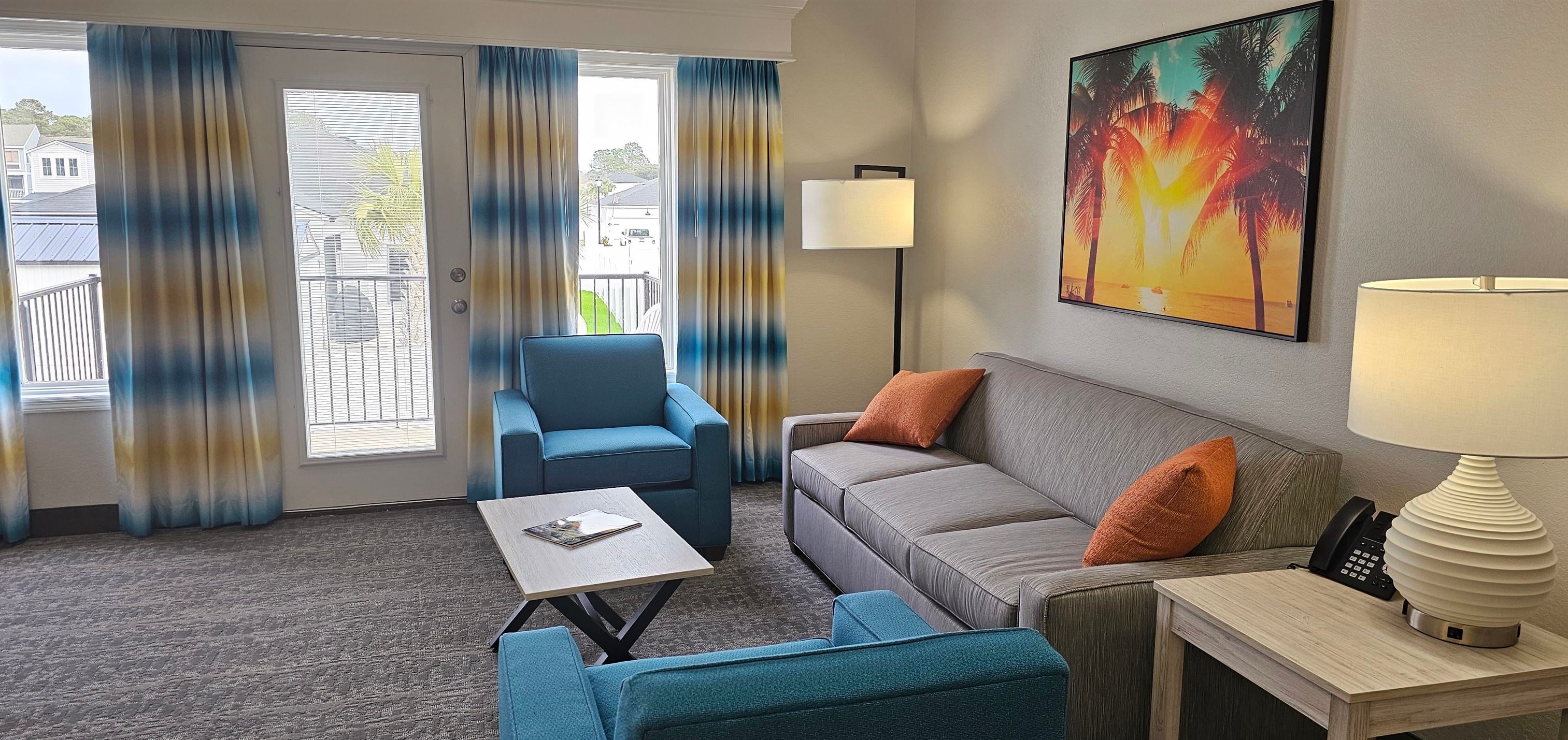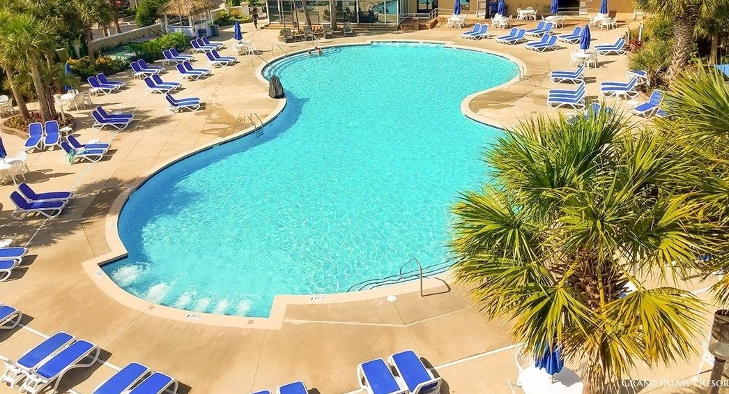 Dreaming of owning a TIMESHARE at The Grand Palms Resort in Surfside Beach? This one is for you! For sale is Week 22 (plus a banked week), based in Unit F-2 of 218 Double Eagle Drive, Surfside Beach. The week can be traded through the RCI program for a vacation anywhere that participates in the program. Unit F-2 is a second floor unit, filled with tons of natural light and high vaulted ceilings in the living room, which has a sleeper sofa. The galley kitchen has granite countertops and a full refrigerator/freezer. All kitchenware you need to make a full meal is onsite. There is a half bath on the main floor, and a full bathroom upstairs, with a loft bedroom with two beds. A washer and dryer are upstairs and there is a large closet. Just off the kitchen is the lockout unit, which has its own kitchenette with an electric cooktop, microwave, mini fridge and dishwasher. The lockout bedroom has two large closets, an AC unit and a full bathroom, with shower and tub combo. Both units could accommodate up to 12 adults comfortably and were just refreshed in the summer of 2025. Guest have access to all amenities -- indoor and outdoor pools, hot tubs, a lazy river, kiddie pools, a putting green, a day spa, a playground, an arcade and a shuttle that stops at every building and can take you to the beach and other attractions. If you are ready for a vacation, here it is!