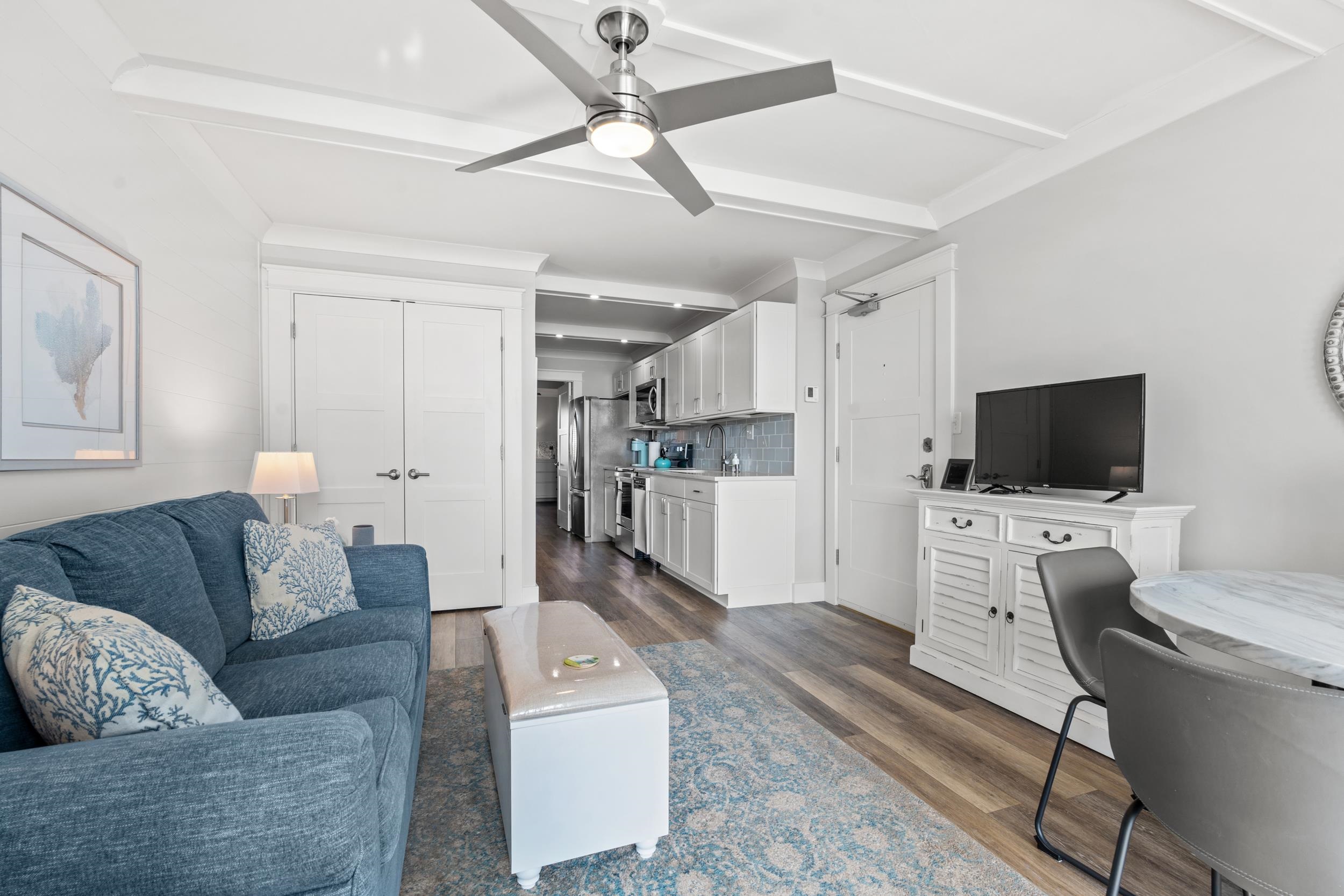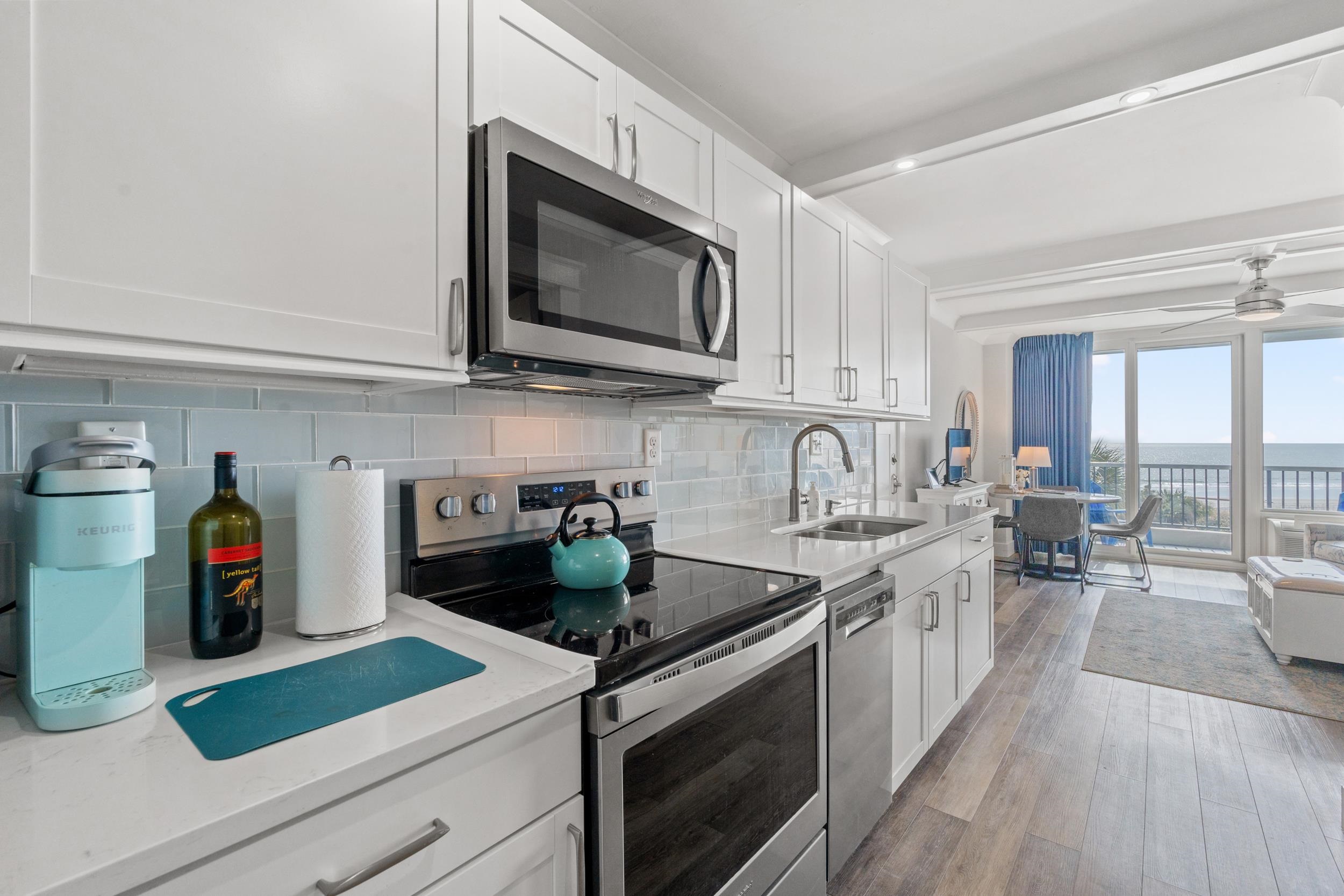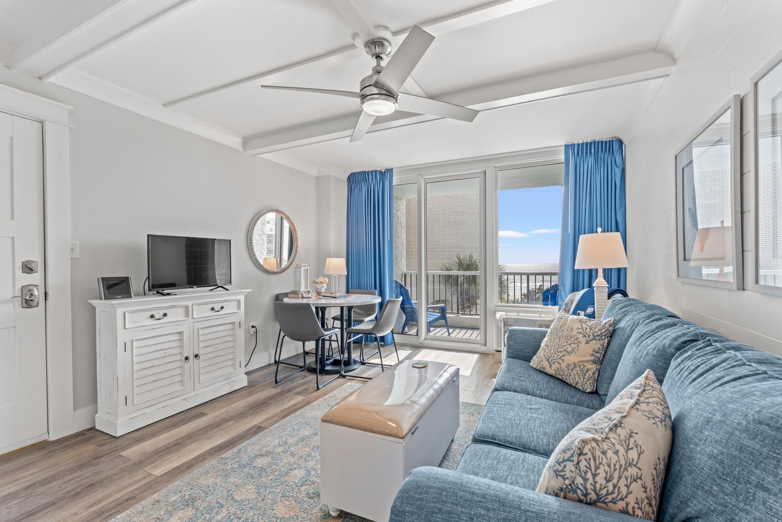 Step into a true one bedroom coastal retreat at Carolina Winds where the layout feels like a real condo, not a studio and not a hotel style open room. Unit 304 pairs an angled ocean view with a tastefully remodeled interior that is bright, polished, and ready for beach days from the moment you arrive. Smooth ceilings and walls create a clean finish, while shiplap accents in the bedroom and main living room add the coastal character buyers love. The kitchen is designed for easy ownership with white shaker cabinetry, granite countertops, Whirlpool stainless steel appliances, and a dishwasher. It is stocked with kitchenware so you can settle in right away and make a home cooked meal after a day on the sand. The bathroom continues the upgraded look with a large tiled walk in shower and a river stone floor. Luxury vinyl plank flooring, crown molding, LED recessed lighting, new sliding glass balcony doors, and two newer HVAC units complete a turnkey package. Carolina Winds Resort is oceanfront and built for enjoyment with indoor and outdoor pools, hot tubs, and a lazy river. HOA fees include cable TV, internet, water, sewer, trash, insurance, pest control, pool access, common area maintenance, and association management. This residence has never been rented, yet it offers strong income potential for buyers who want the option to generate revenue.