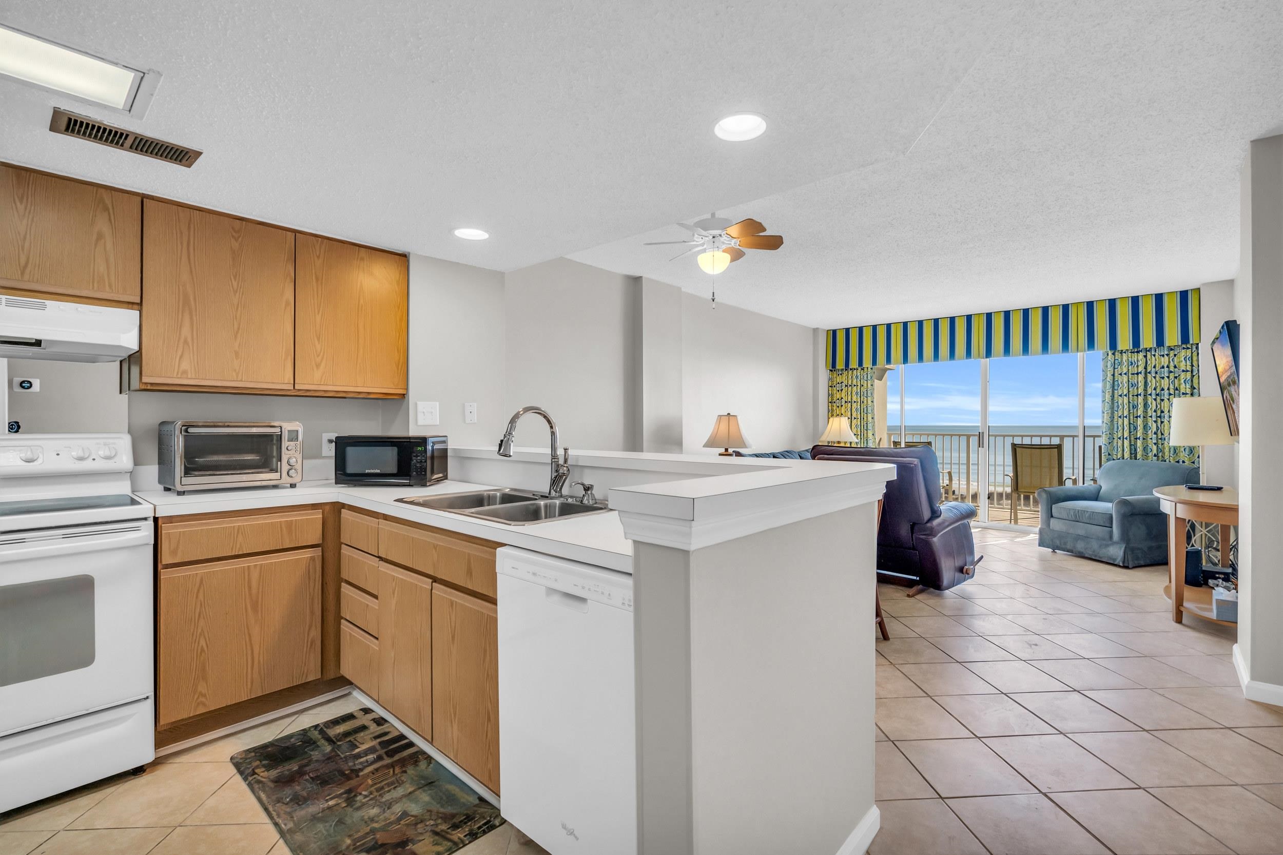 Welcome to your freshly painted oceanfront retreat in the sought-after Cherry Grove section of North Myrtle Beach! This beautifully updated 2-bedroom, 2-bathroom condo offers breathtaking views of the Atlantic the moment you walk through the door. Just off the entryway, you'll find a welcoming guest bedroom and a full guest bath - ideal for visiting family or friends. The well-equipped kitchen provides ample cabinet and counter space, with an adjacent laundry area adding extra convenience to your beachside lifestyle. The spacious, open-concept living and dining area is the heart of the home, perfectly designed for relaxing or entertaining while taking in the panoramic ocean views through a brand new sliding glass door installed in 2025. The primary suite is a true sanctuary, featuring a large picture window that frames the coastline and provides uninterrupted views of the beach. From the bedroom, step directly onto your private balcony - an ideal spot to enjoy your morning coffee while watching the sunrise or to wind down in the evening with the rhythmic sounds of the waves. The ensuite bathroom includes a vanity area and a tub/shower combination for added comfort. A new water heater has been installed in 2025. Carolina Dunes offers desirable amenities, including a sparkling community pool and direct beach access, ensuring endless enjoyment of the coastal lifestyle. Whether you're looking for a personal beach escape or a high-potential investment property with short-term rental opportunities, this condo checks every box. Don't miss the chance to own a piece of paradise and experience the best of oceanfront living in North Myrtle Beach. All measurements are approximate. Buyer is responsible for verification. Please ask your agent about lender closing costs incentives for this property.