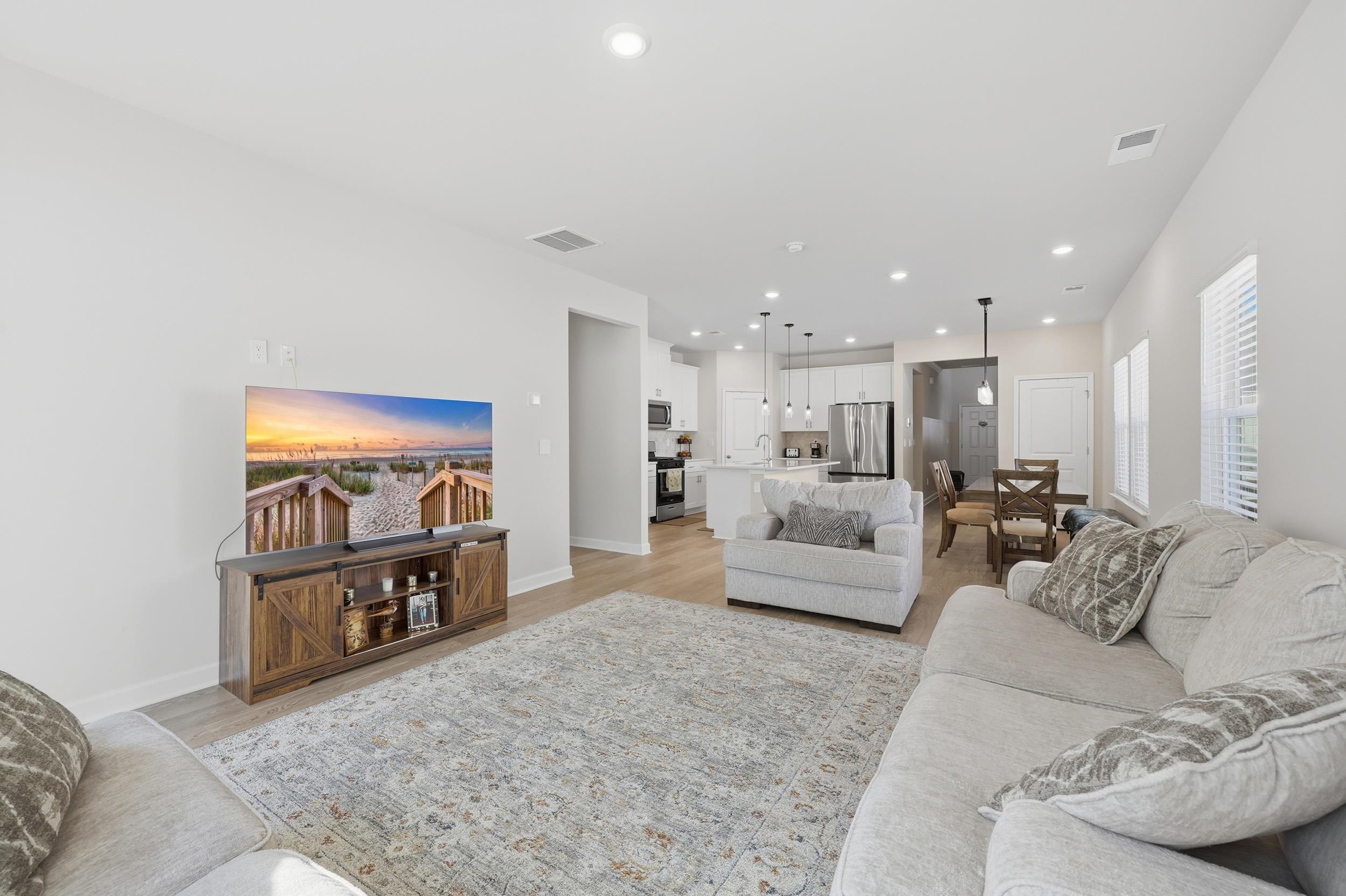 Perfectly positioned in the sought-after Clear Pond community, this 4-bedroom, 2.5-bath, move-in-ready home blends modern sustainability with relaxed coastal style. From the moment you enter, youll appreciate the elegant crown molding and bright, open-concept floor plan designed for both everyday living and entertaining. The first-floor primary suite is a private retreat, featuring dual vanities and a spacious walk-in closet. At the heart of the home, the chef-inspired kitchen offers a gas range, large center island, and generous workspaceideal for gatherings or daily family life. Upstairs, youll find three additional spacious bedrooms and a versatile loft, perfect for a media room, home office, or play space. Ideally situated near the end of the block before the cul-de-sac, this home enjoys a peaceful, low-traffic location. Step outside to a fully fenced backyard with no rear neighborsan ideal setting for morning coffee or evening BBQs. Built by Meritage Homes, the residence includes energy-efficient features such as spray foam insulation and ENERGY STAR appliances, providing year-round comfort and lower utility costs. Clear Pond residents enjoy resort-style amenities including two swimming pools, a clubhouse, fitness center, sports courts, playground, and scenic walking trails around the community ponds. Conveniently located near award-winning Carolina Forest schools, shopping, dining, golf courses, and just minutes from Myrtle Beachs coastline, this home offers the perfect balance of comfort, convenience, and coastal living. Don't forget..... no houses behind you.