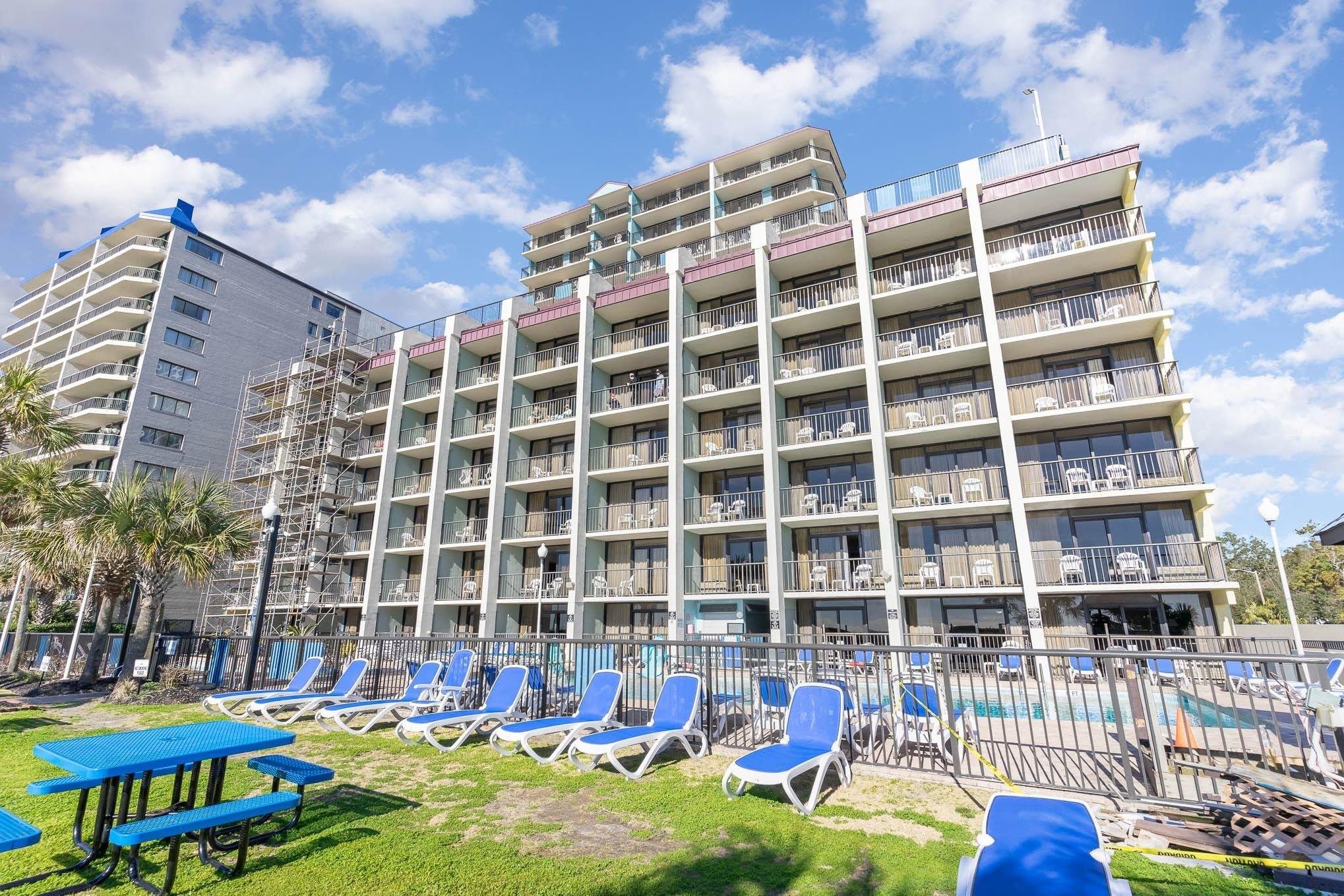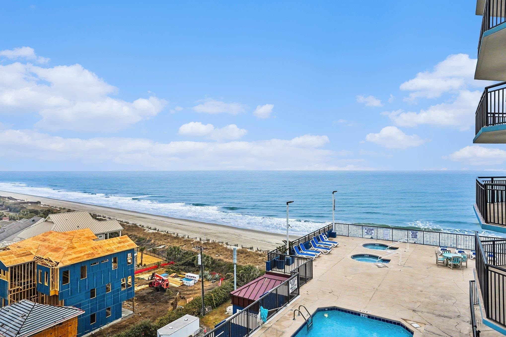Gorgeous 3-bedroom 2 bath turnkey condo located on the 9th floor of Grande Shores. This spacious and fully furnished unit offers breathtaking views of the Atlantic Ocean, providing the ultimate beach experience. Tastefully upgraded, this luxurious condo also features an split floor plan, ceramic tile flooring, granite countertops, breakfast bar, beautiful crown molding throughout, tiled walk in shower in the primary en suite, in unit washer/dryer and a large private balcony accessible from the primary bedroom and the living area. The unit features a rare living room alcove floor plan with balcony access, one of only seven in the building. Grande Shores Resort amenities include 11 pool attractions including 4 outdoor hot tubs, 2 outdoor pools, indoor pool, 2 outdoor lazy rivers, indoor kiddie pool, indoor hot tub, fitness center, seasonal pool bar and grill, Shoreline Cafe, sun lounge area and direct beach access. Enjoy the 7th floor rooftop pool, hot tubs, or lazy river with magnificent views of the Atlantic Ocean and the Myrtle Beach skyline. The monthly HOA fee includes all utilities and all insurance. Owners not participating in the rental program still enjoy full access to the resort's facilities and amenities. Located within a short distance to famous restaurants, shops, championship golf courses, Broadway at the Beach, The Boardwalk, and North Myrtle Beach.