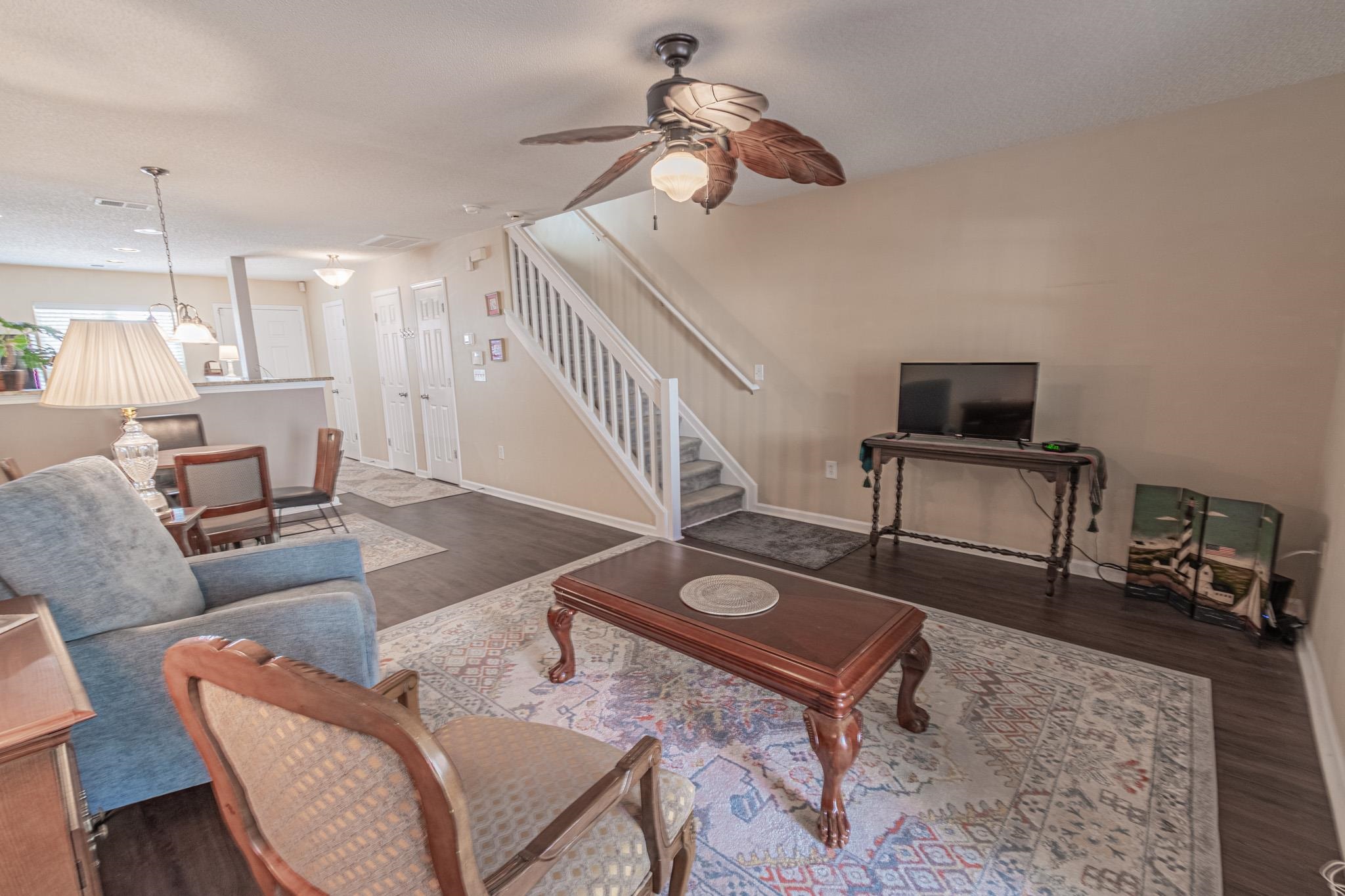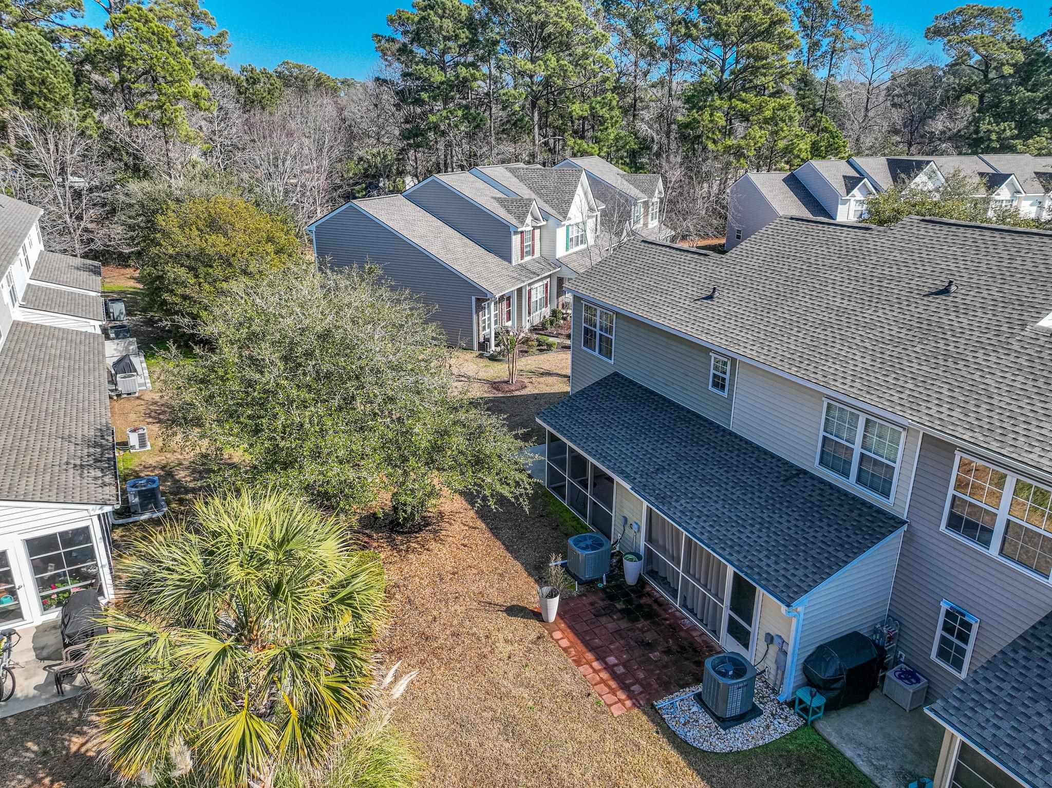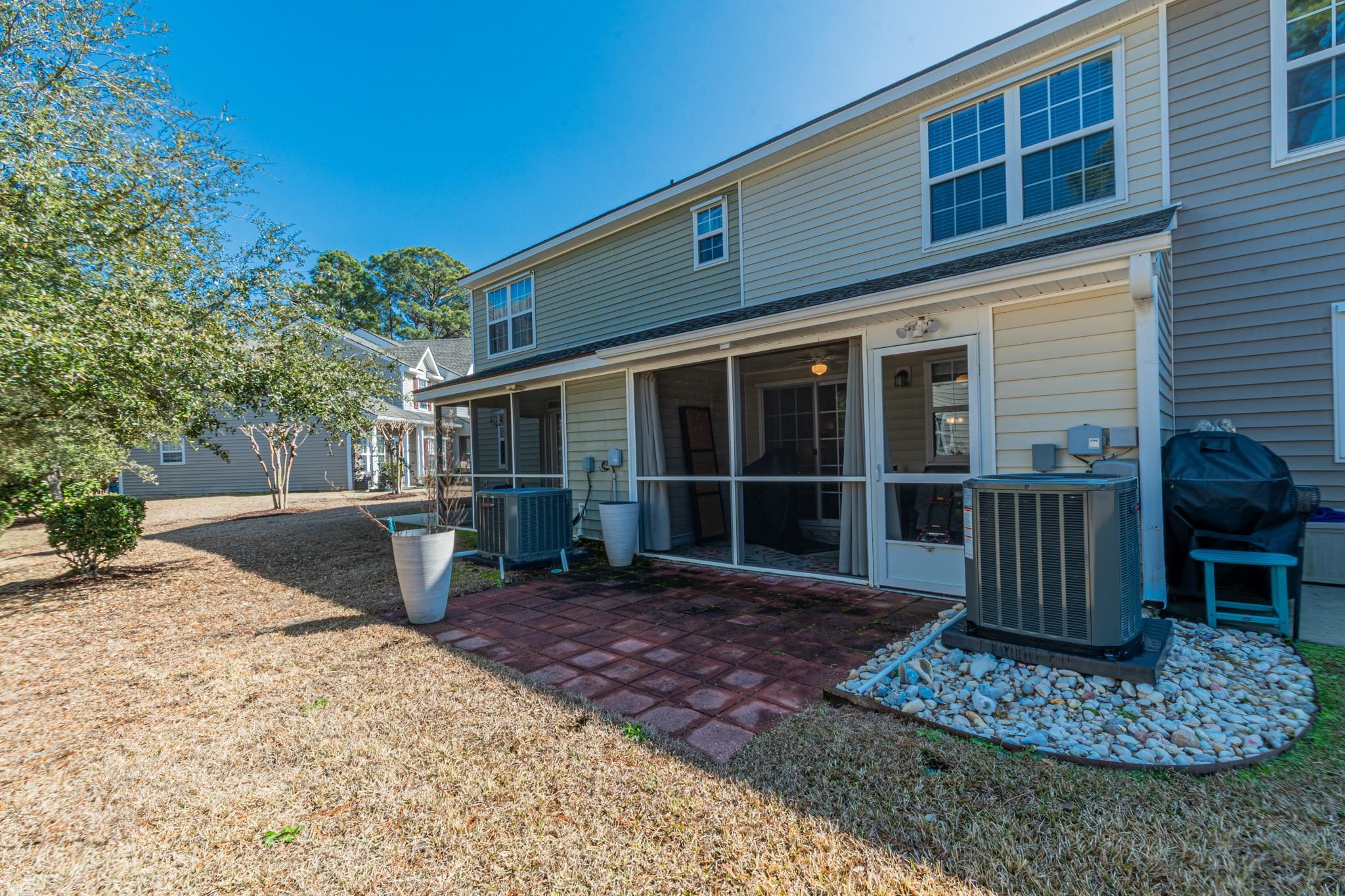Magnificent two-bedroom, two-and-a-half-bath townhouse located in the gated Parkview community. This well-maintained home features Laminate flooring downstairs, tile in wet areas, and carpet in bedrooms, a covered front porch, a screened-in back porch and paved patio, perfect for relaxing or entertaining. Step inside through the foyer into an open-concept living area. The kitchen offers black appliances (stove and refrigerator new in 2023), granite countertops, a pantry, an eat-at breakfast bar, and a cozy breakfast nook. The spacious living room includes a ceiling fan, a convenient half bath, and direct access to the screened porch. Upstairs, both bedrooms feature vaulted ceilings with ceiling fans, plantation shutters, ample closet space, and private en-suite bathrooms, one with tub and stand-up shower and the other with a walk-in shower. Additional highlights include HVAC system replaced in 2025, new roof in 2024, new water heater in 2022, dedicated laundry room with washer and dryer and exterior storage space. Parkview Subdivision offers fantastic amenities including a community pool, outdoor grilling area, and scenic ponds, all conveniently located near the airport, dining, shopping, entertainment, medical facilities, and just a short drive to the beach. All measurements and square footage are approximate and not guaranteed. Buyer is responsible for verification.