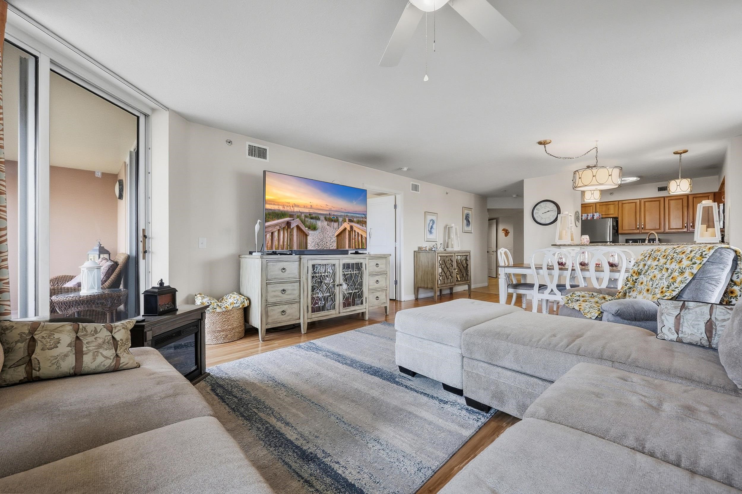 VERY RARE END-UNIT CONDO!! Coastal living meets resort-style luxury at Tilghman Beach & Golf Resort! Located just across the street from the ocean, this beautifully maintained 3-bedroom, 3-bath end-unit condo offers the perfect blend of comfort, space, and effortless beachside living. With two private balconies and abundant storageincluding a kitchen pantry and extra closetsthis condo is one of the largest in the building and feels thoughtfully designed. The split floor plan features an open-concept living, dining, and kitchen area, ideal for entertaining or relaxing after a day at the beach. The kitchen is equipped with custom cabinetry, granite countertops, stainless steel appliances, and generous cabinet space. Two of the bedrooms offer private ensuite baths, providing excellent privacy for guests or rental flexibility. Ceiling fans in the living room and all bedrooms add to the comfort throughout. Sold fully furnished, this condo is truly turn-keyperfect as a second home or an investors dream. Recent updates include new washer and dryer, regularly serviced HVAC (every six months), and a building that has been recently fully seal-coated, including balconiesgiving peace of mind for years to come. Tilghman Beach & Golf Resort delivers unmatched amenities, including indoor and outdoor pools, a lazy river, splash pad, fitness center, indoor and outdoor hot tubs, on-site restaurant, and a stunning 5th-floor atrium with lounge and reading areas. A full-time social director keeps the calendar full of fun community activities. This condo is very well maintained and ideally located, offering the lifestyle buyers crave. Just steps from the ocean with all the perks of resort living! This one will not last long! All measurements are approximate. Buyer and buyers agent responsible for verification of all information.