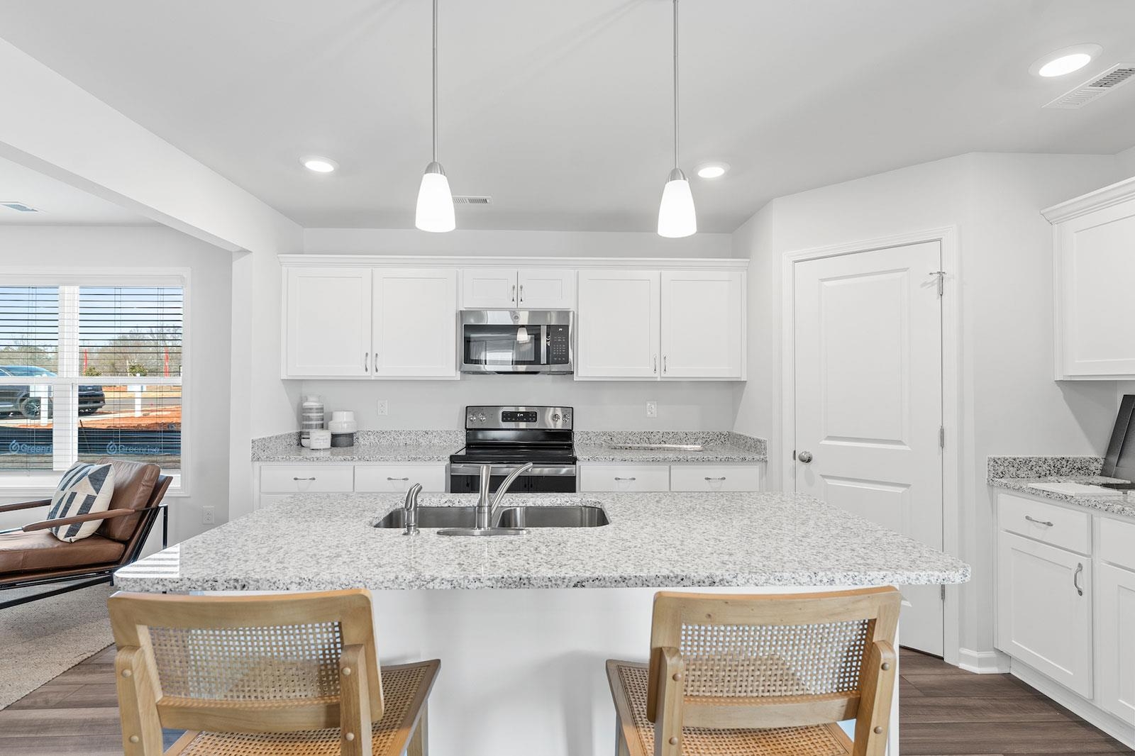 The Telfair, our most sought-after two-story floor plan, offers space, style, and flexibility for modern living. This beautifully designed home features five bedrooms, three full bathrooms, and an expansive loft. A guest bedroom and full bath are conveniently located on the first floor, while the remainder of the main level is dedicated to open, inviting living spaces ideal for both everyday comfort and entertaining. The contemporary kitchen showcases white cabinetry, quartz countertops, and stainless steel appliances, and opens seamlessly to a bright, oversized family room filled with natural light. A separate formal dining area sits just off the main living spaceperfect for gatherings and family meals. Upstairs, the spacious primary suite offers a relaxing retreat with a luxurious bath, accompanied by three additional generously sized bedrooms, a shared full bathroom, and a large loft that completes the second level. Photos are of a similar model and are for illustration purposes only. Located in a highly desirable community just eight minutes from historic downtown Conway. Similar completed models are available for viewing.
