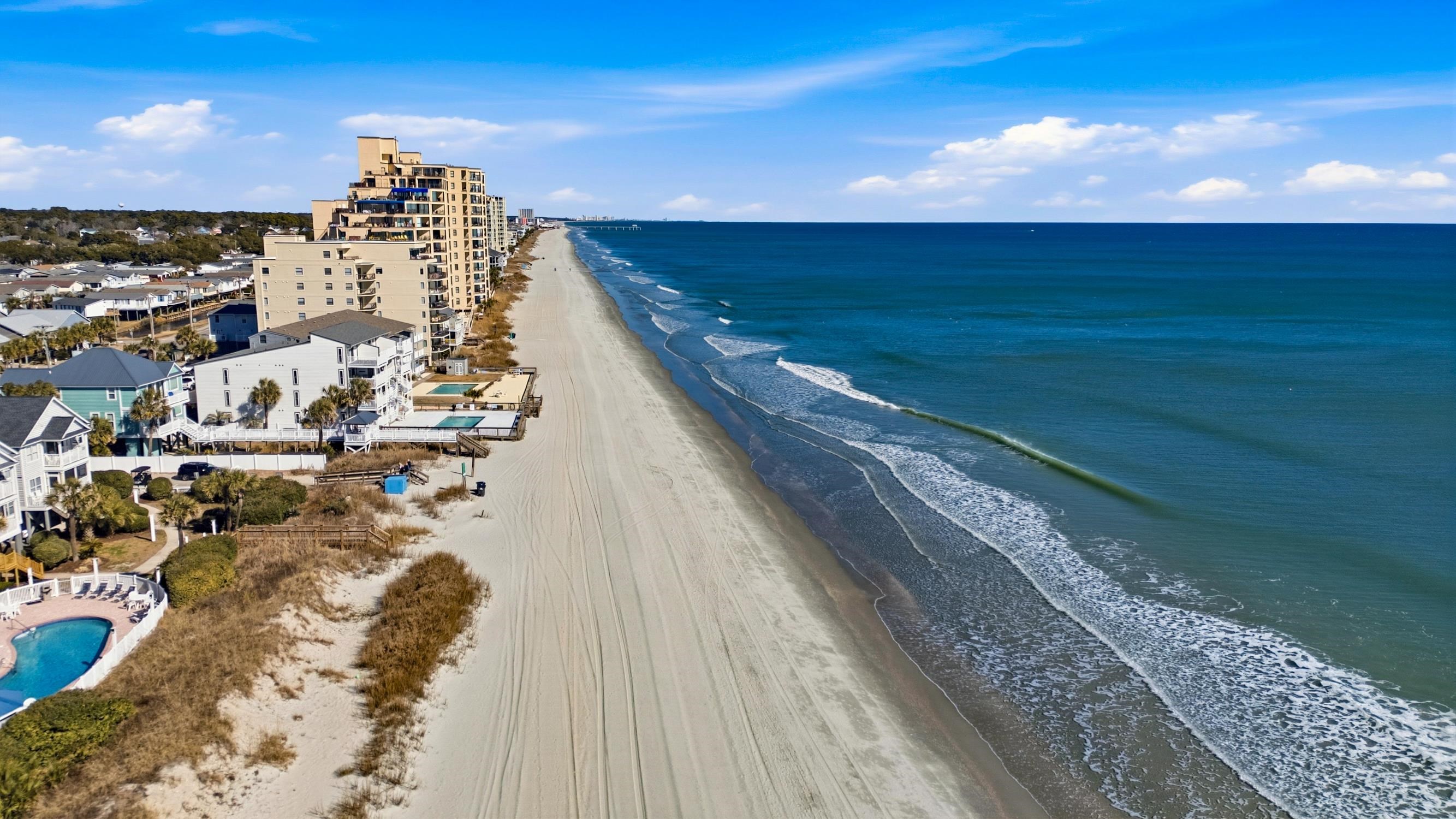 3 Reunion Villas (1411 N Waccamaw Dr) is a fully furnished four-bedroom, three-bath raised beach home offering ocean views, direct beach access across the street, and a documented short-term rental history in Garden City Beach. Built in 2012, this second-row residence combines modern construction, strong rental appeal, and low-maintenance coastal ownership. Located approximately one mile north of the Garden City Pier, the home enjoys sweeping Atlantic views while avoiding the direct exposure and maintenance demands of true oceanfront properties. Its location places you steps from the beach and within close proximity to dining, fishing, golf, Murrells Inlet MarshWalk, and the broader Myrtle Beach area, while maintaining the relaxed residential character for which Garden City Beach is known. The home offers approximately 2,142 heated square feet across two thoughtfully designed levels. The main living level features an open-concept layout ideal for entertaining, with luxury vinyl plank and tile flooring, abundant natural light, and a bright coastal color palette. The kitchen includes granite countertops, stainless steel appliances, ample cabinetry, a breakfast bar, and a central island that flows seamlessly into the dining and living areas. A glass door opens to a covered oceanside porch with stairs to the ground level, providing convenient access to the pool and beach. A spacious primary suite with a private covered ocean-view balcony, walk-in closet, and ensuite bath with dual vanities and a tiled walk-in shower anchors the upper level. Two additional bedrooms and a full bath complete the upper level, while the main level includes a fourth bedroom and full bathroom. Exterior features include composite decking, a metal roof, and durable fiber-cement siding. Covered parking beneath the home accommodates up to four vehicles and includes an outdoor showerfeatures that are highly desirable for both beach living and short-term rental use. Reunion Villas is a small, professionally managed homeowners association that offers a community pool with a sundeck, common area maintenance, landscaping, and irrigation. Both short-term and long-term rentals are permitted, making the property suitable as a primary residence, second home, or income-producing investment. Currently enrolled in a short-term rental program, the home is offered fully furnished and turnkey for continued rental use, with rental performance documentation available. Take a virtual tour at www.bit.ly/3ReunionVillas and explore the lifestyle and rental potential of 3 Reunion Villas.