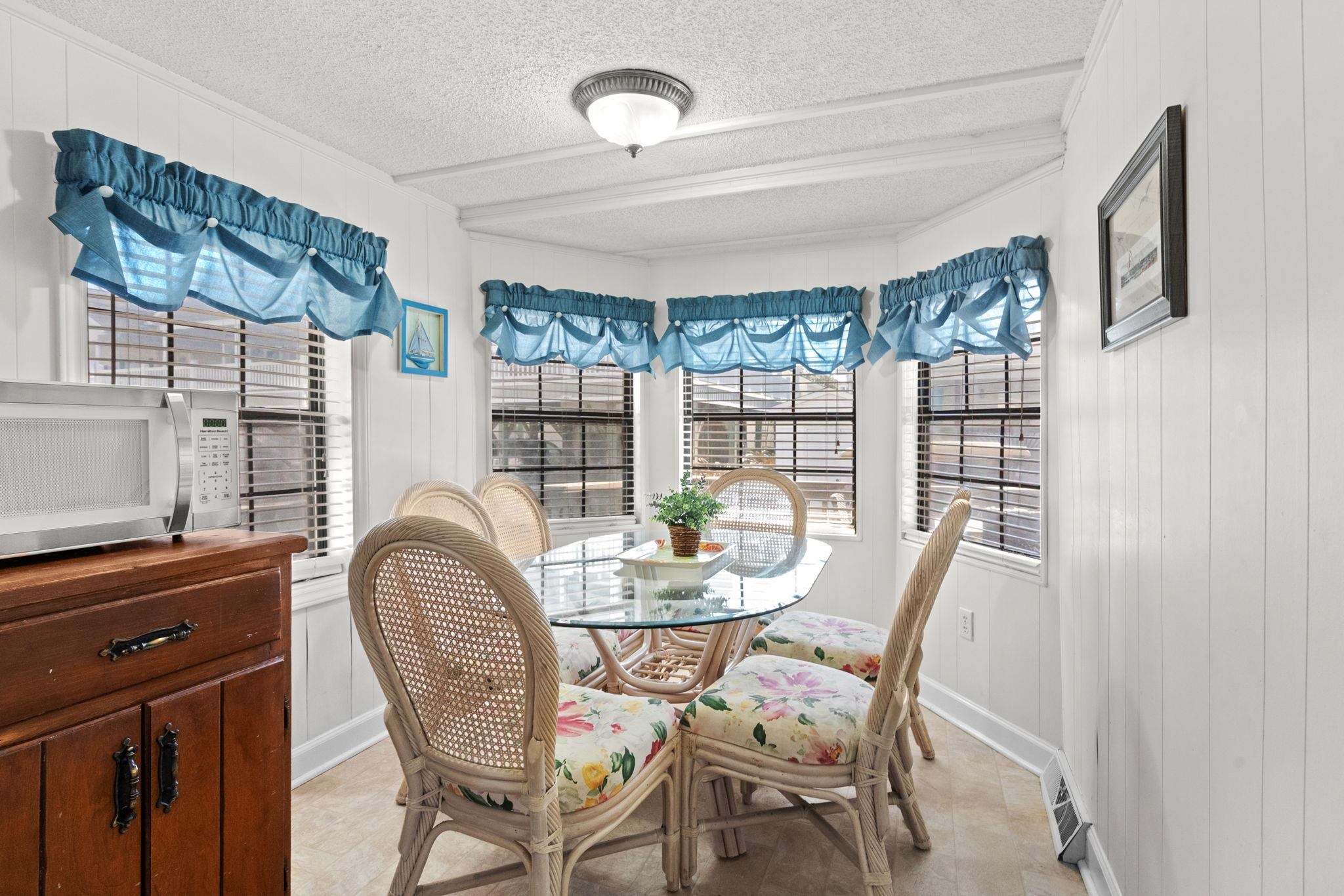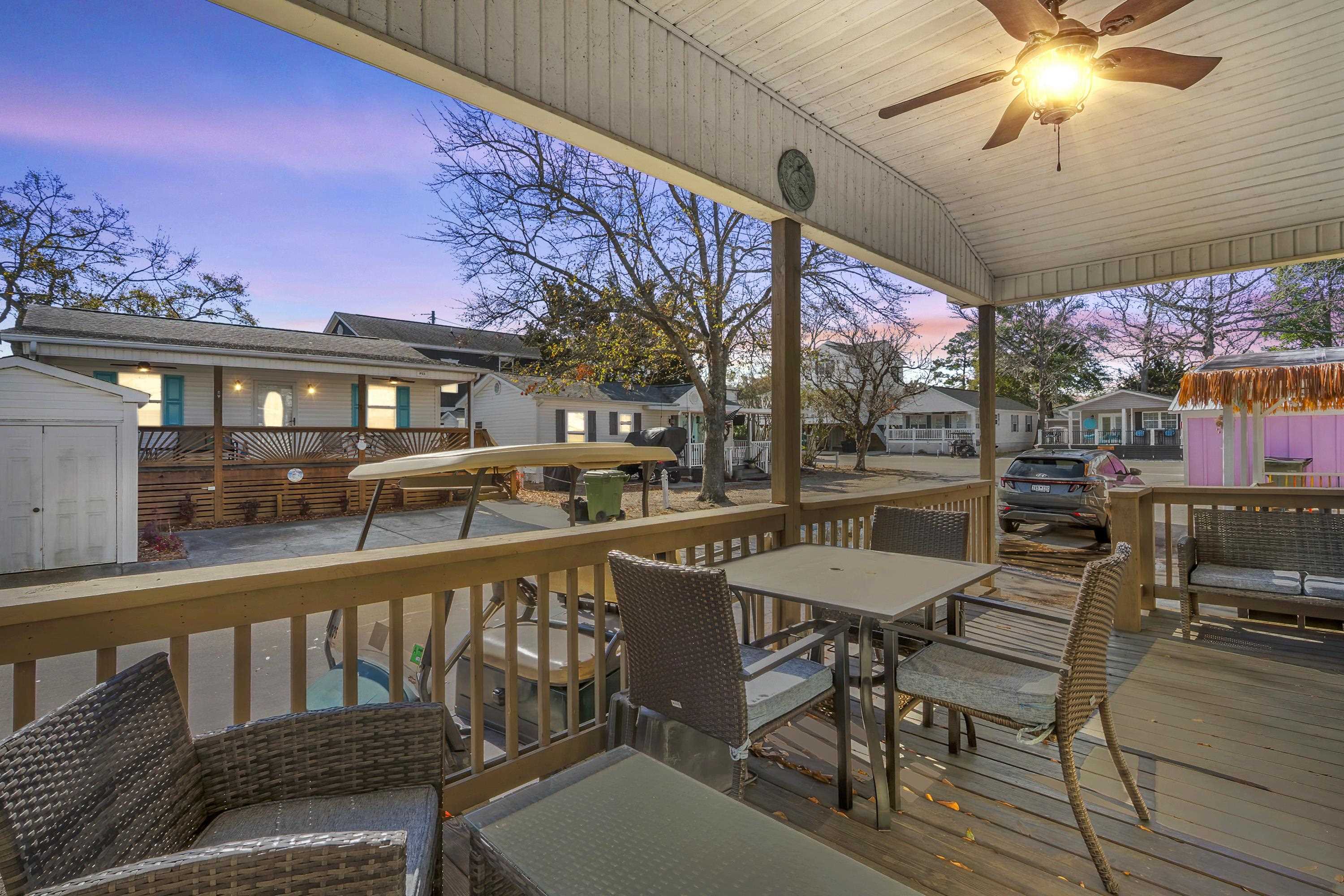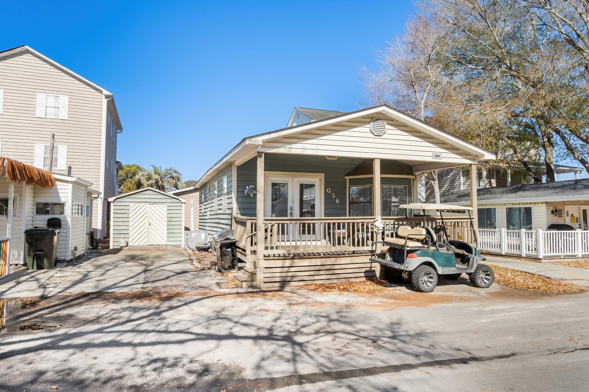 Welcome home to Q-36, centrally positioned in the heart of Ocean Lakes, close to all amazing amenities! This home faces East for morning sun on the covered front porch and afternoon shade after a long day on the beach. Plenty of parking in the driveway and in front of the home. Inside you have a large living room with vaulted ceilings with exposed beams, laminate flooring and ceiling fan. To the right is the dining area with 4 windows for plenty of natural light, breakfast bar, kitchen with tile backsplash, full bath #1 (tub/shower combo) and bedroom #1 located in the right rear of the home. Through the living room is non-conforming bedroom #2 (bunk room), and bedroom #3 with attached full bath #2. Bathroom #2 has been updated with new vanity and tiled shower. Bedroom #1 and #3 have ceiling fans. Outside shed has plenty of room for a golf cart and storage.