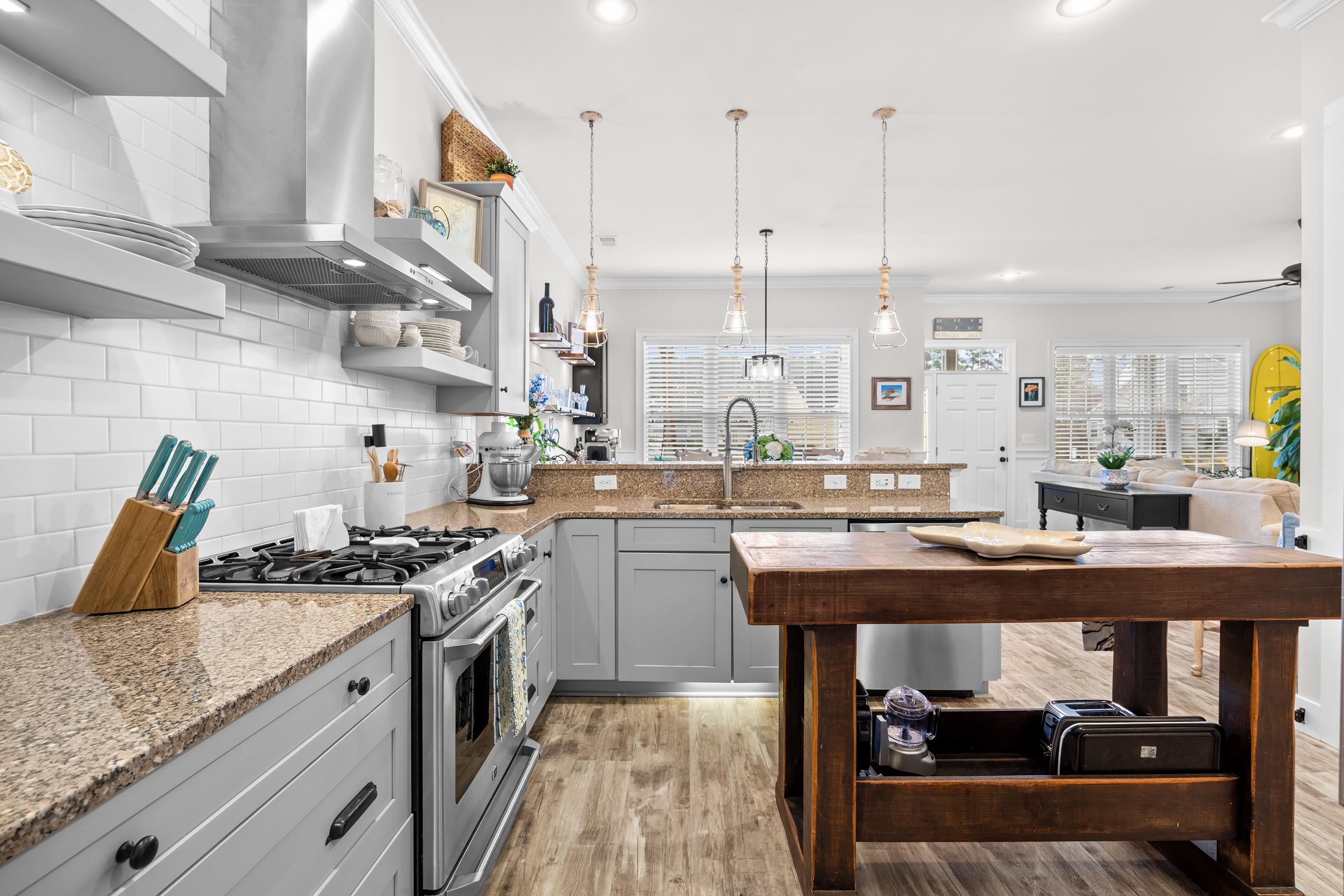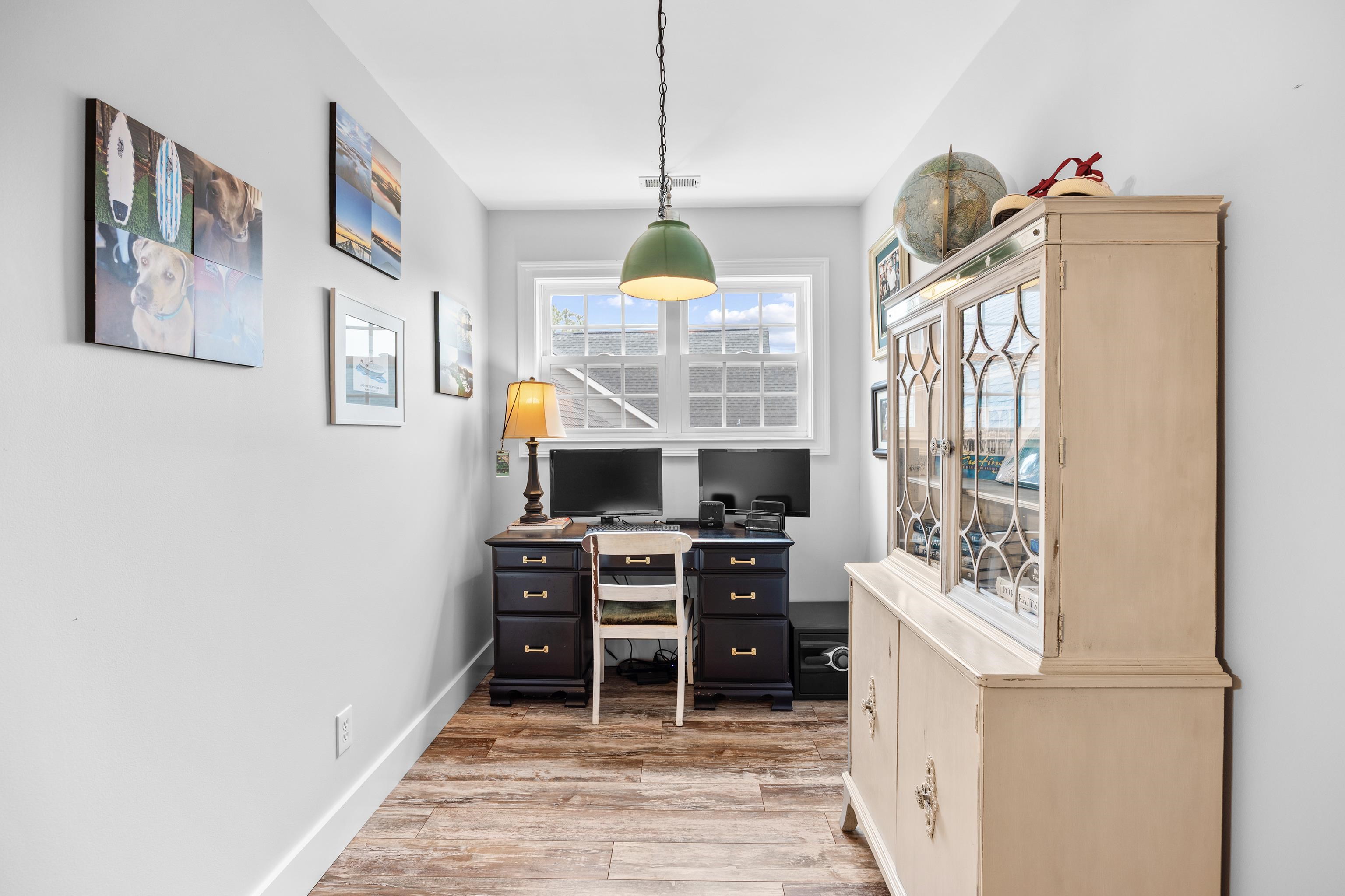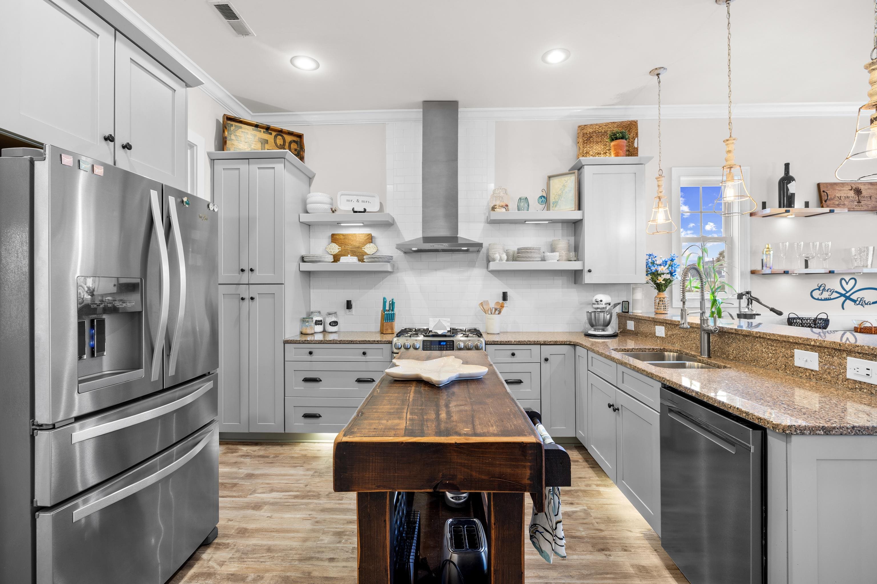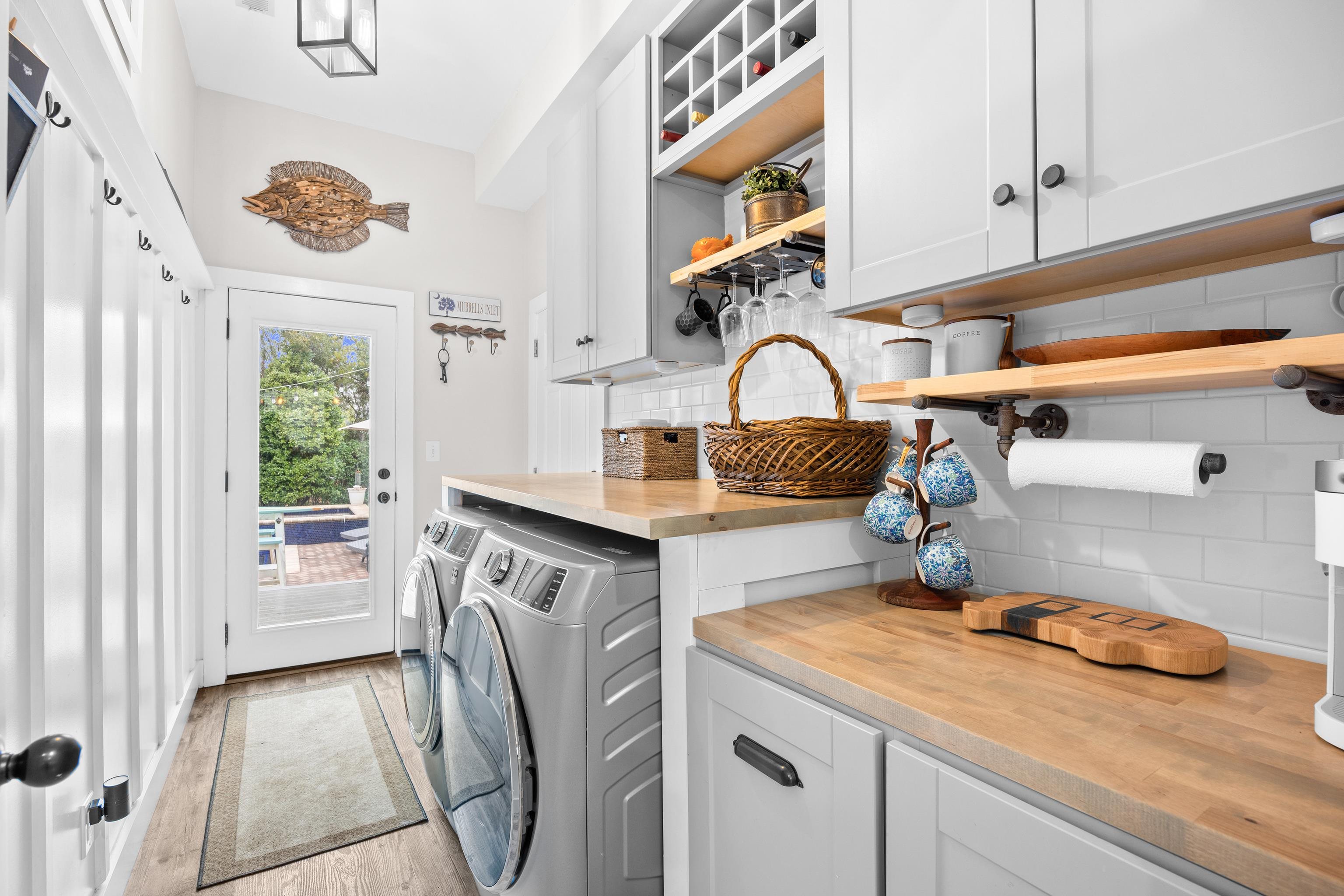 Welcome to 237 Outboard Drive, a beautifully upgraded 3 bedroom, 2 full bath and 2 half bath plus bonus room home located in the sought-after gated, natural gas community of Hunters Grove in Murrells Inlet. Situated within 1 mile of dining, grocery stores, and shopping, and less than 2 miles from the Murrells Inlet Marsh Walk and Intracoastal Waterway, this home offers the perfect blend of privacy, luxury, and convenience Thoughtfully renovated from top to bottom, this home blends timeless craftsmanship with modern coastal style just minutes from dining, shopping, and the water. The open floor plan features a spacious primary suite on the main level, complete with custom barn doors, custom closet organizers, and a newly remodeled spa-like bathroom showcasing tile floors, shiplap walls, glass shower doors, and a stunning vintage clawfoot tub. The heart of the home is the kitchen, offering granite countertops, floating custom shelves, accent lighting, a walk-in pantry, and a custom appliance closet perfect for both everyday living and entertaining. Adjacent to the kitchen, the dining room features a custom-built bar/buffet, adding both style and functionality. The laundry room has been fully remodeled with new cabinetry and accent lighting. Throughout the downstairs you'll find all-new LVP flooring, along with craftsman-style baseboards and door trim that elevate the entire home with 8 foot doors. Upstairs offers new flooring, a remodeled bathroom with new vanity and fixtures, and an oversized carpeted bonus room ideal for a media room, home office, or guest space. There is an additional office space or reading nook. Step outside to your private backyard oasis featuring a heated Gunite pool and hot tub, re-plastered in 2025, fully fenced with custom landscaping and lighting. Enjoy outdoor living year-round from the 10 x 20 screened-in porch with sunshades or relax on the newly remodeled 8 x 17 front porch with brick flooring, vinyl ceiling, and ceiling fan. Home includes an energy-efficient solar panel system, an irrigation system and an extra-large driveway accommodating up to six cars. Home features natural gas powered tankless water heater, gas range and pool heater. You will also love the 2 car garage featuring a mini-split system, custom epoxy flooring, utility sink and attached storage shelving. This is a rare opportunity to own a meticulously updated home in one of Murrells Inlet's most desirable gated communities. Schedule your showing today.