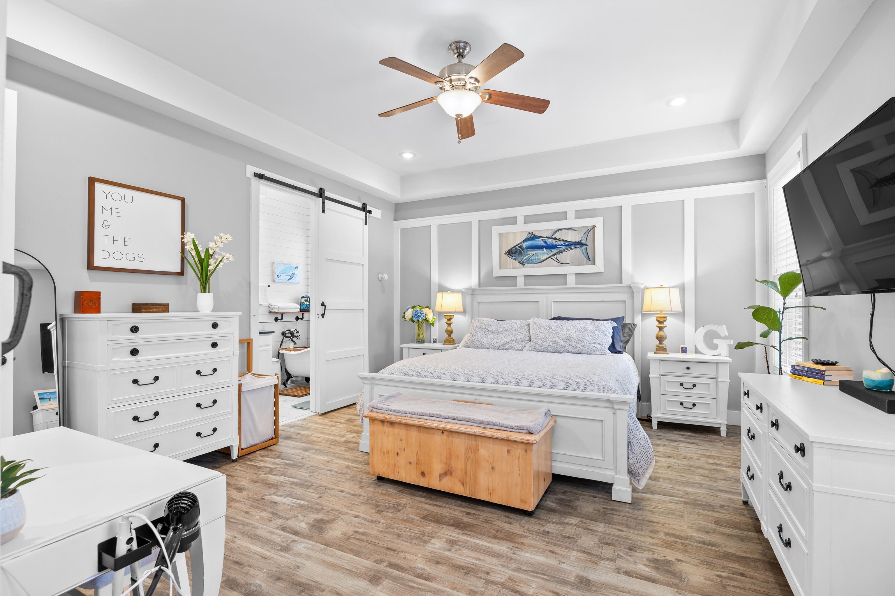 PrimaryBedroom: TrayCeilings, CeilingFans, MainLevelMaster, WalkInClosets