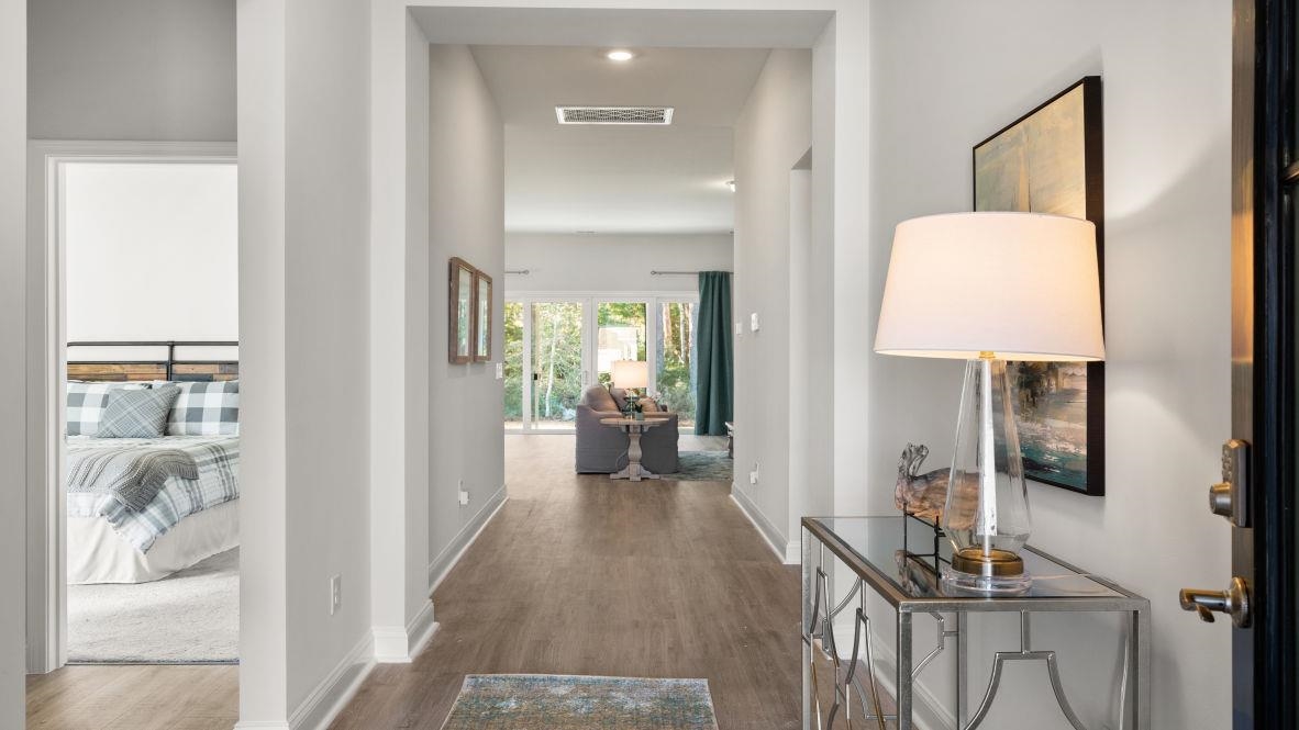The desirable Litchfield plan is a masterfully designed single level home with a great open concept kitchen, living room, and dining area with 11' ceilings and a 3 car garage. Access to the spacious rear covered porch through a 4 panel sliding door just off the dining area creates a wonderful outdoor space to relax and unwind. The 4 panel slider also allows natural light to fill the main living area. The kitchen features include a corner walk in pantry, stainless steel appliances, quartz countertops, and a large island with breakfast bar. Located at the back of the home, the private owner's suite offers a tray ceiling, dual walk-in closets, a separate linen closet, double vanity, and a 5' shower. At the front of the home are three secondary bedrooms creating separation from the primary suite. This is America's Smart Home! Each of our homes comes with an industry leading smart home technology package that will allow you to control the thermostat, front door light and lock, and video doorbell from your smartphone. *Photos are of a similar Litchfield home with 2 car garage. The 3 car garage option has not been built and the photo will be updated upon completion of this home. (Home and community information, including pricing, included features, terms, availability and amenities, are subject to change prior to sale at any time without notice or obligation. Square footages are approximate. Pictures, photographs, colors, features, and sizes are for illustration purposes only and will vary from the homes as built. Equal housing opportunity builder.)