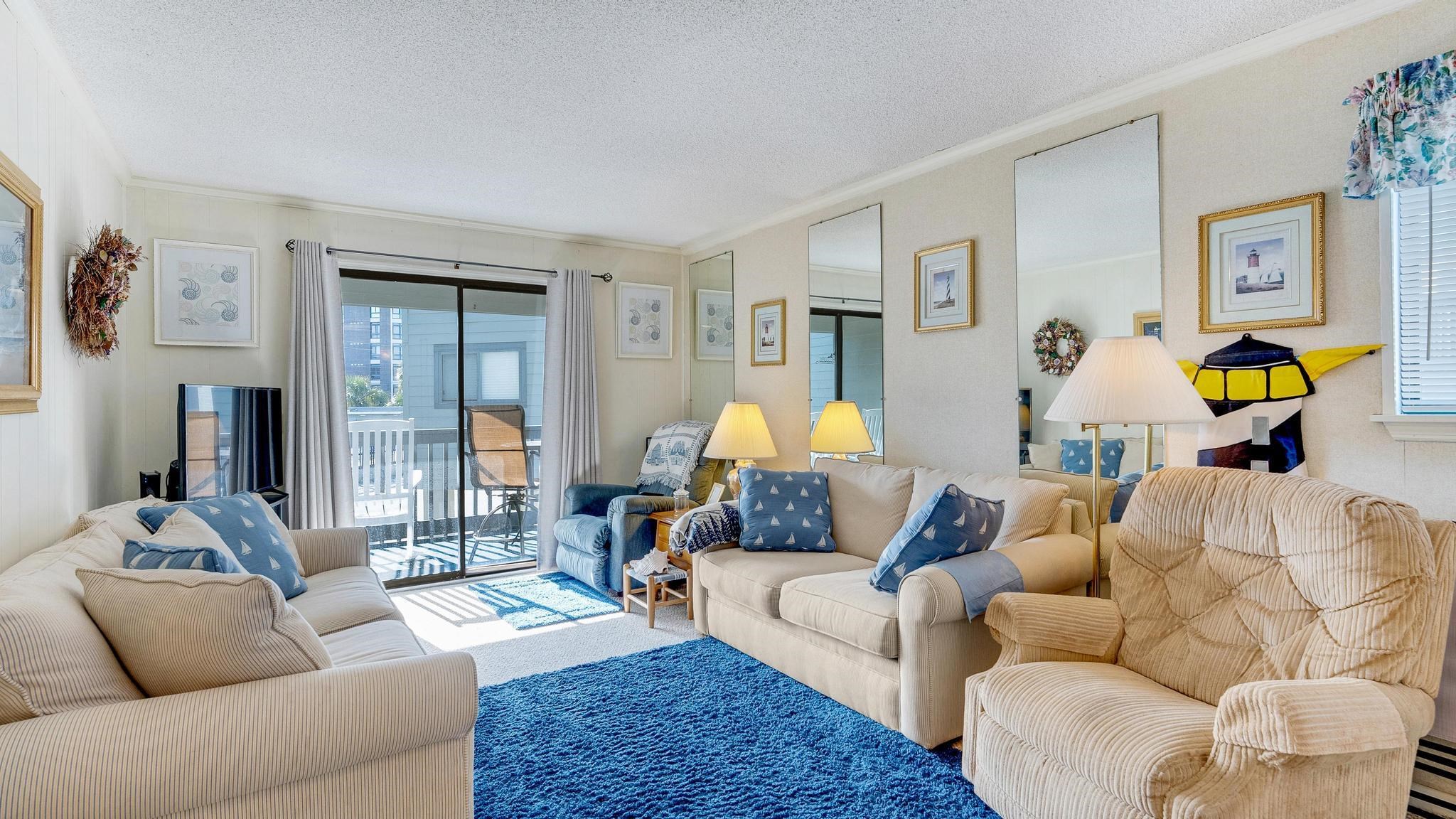 This Sea Cabin corner unit on the first floor has 2 beds and 2 full baths with a pool view from the balcony and is located right across the street from Cherry Grove beach! Unit is being sold with furnishings and appliances so you can move right in or start renting it immediately. Amenities include a community pool and picnic/grilling area.